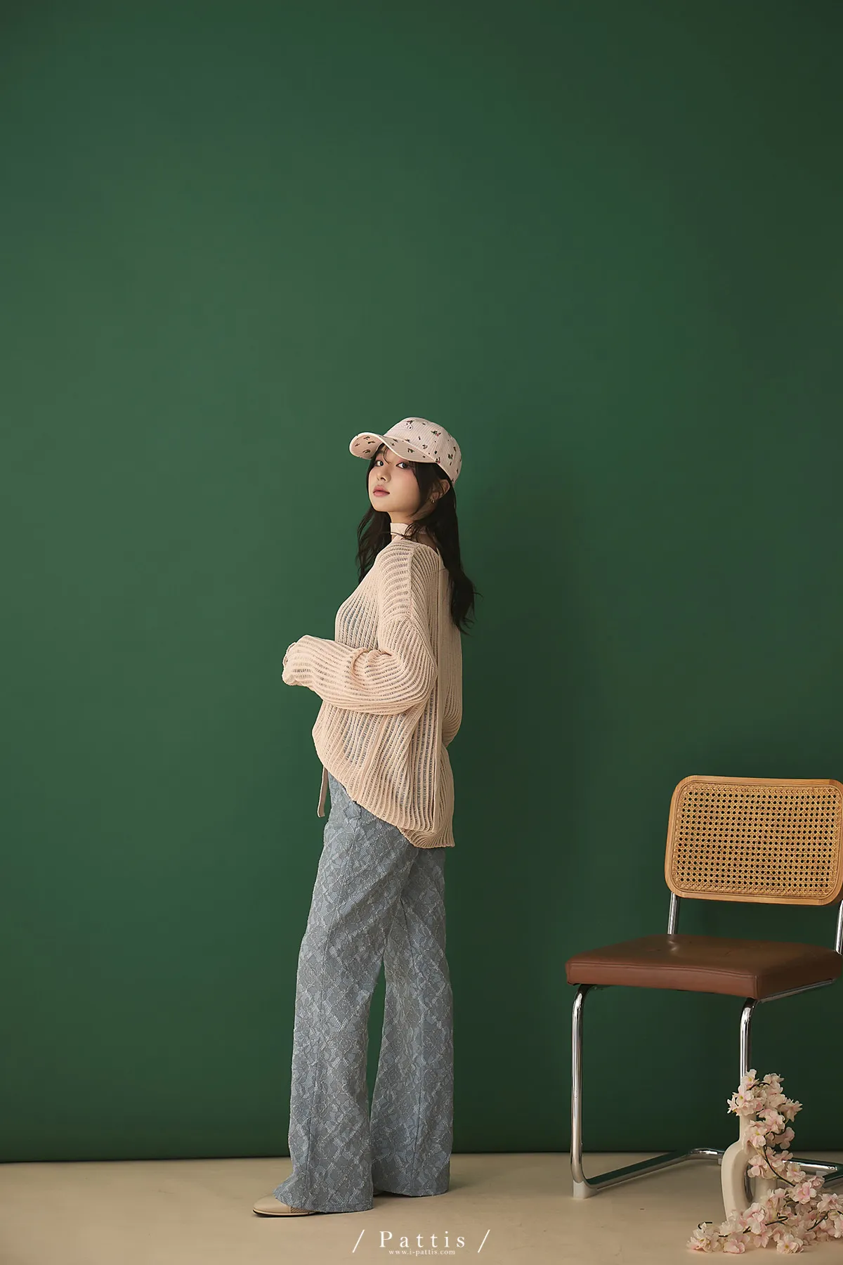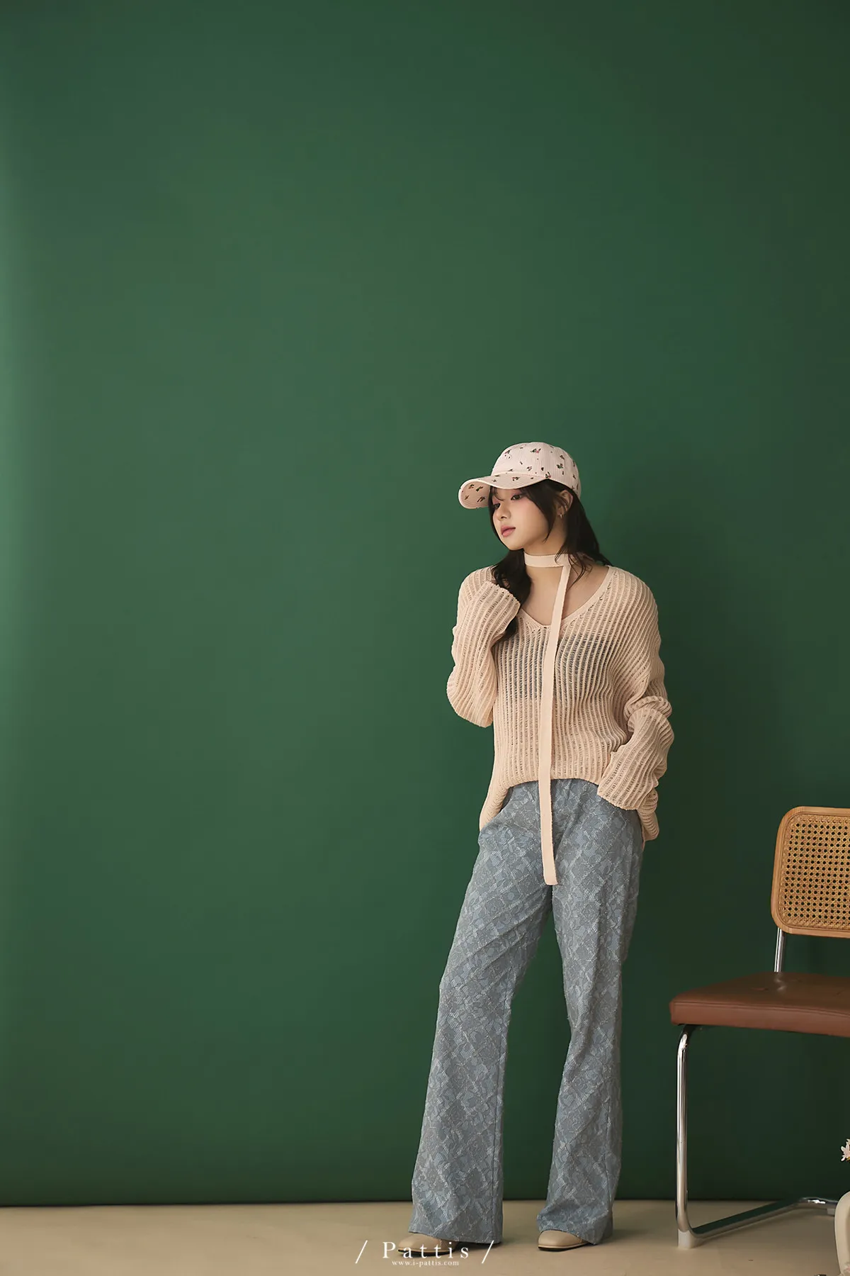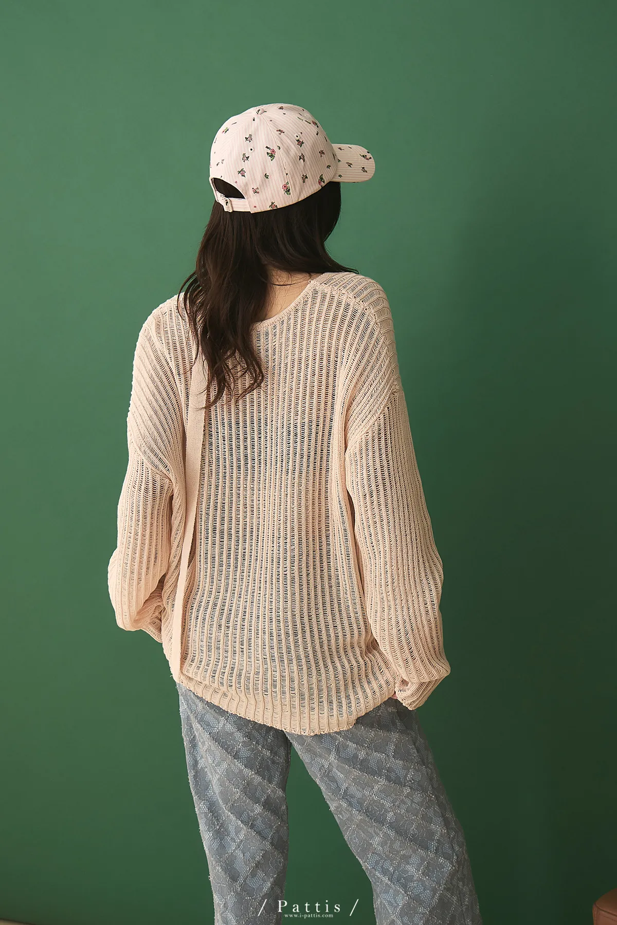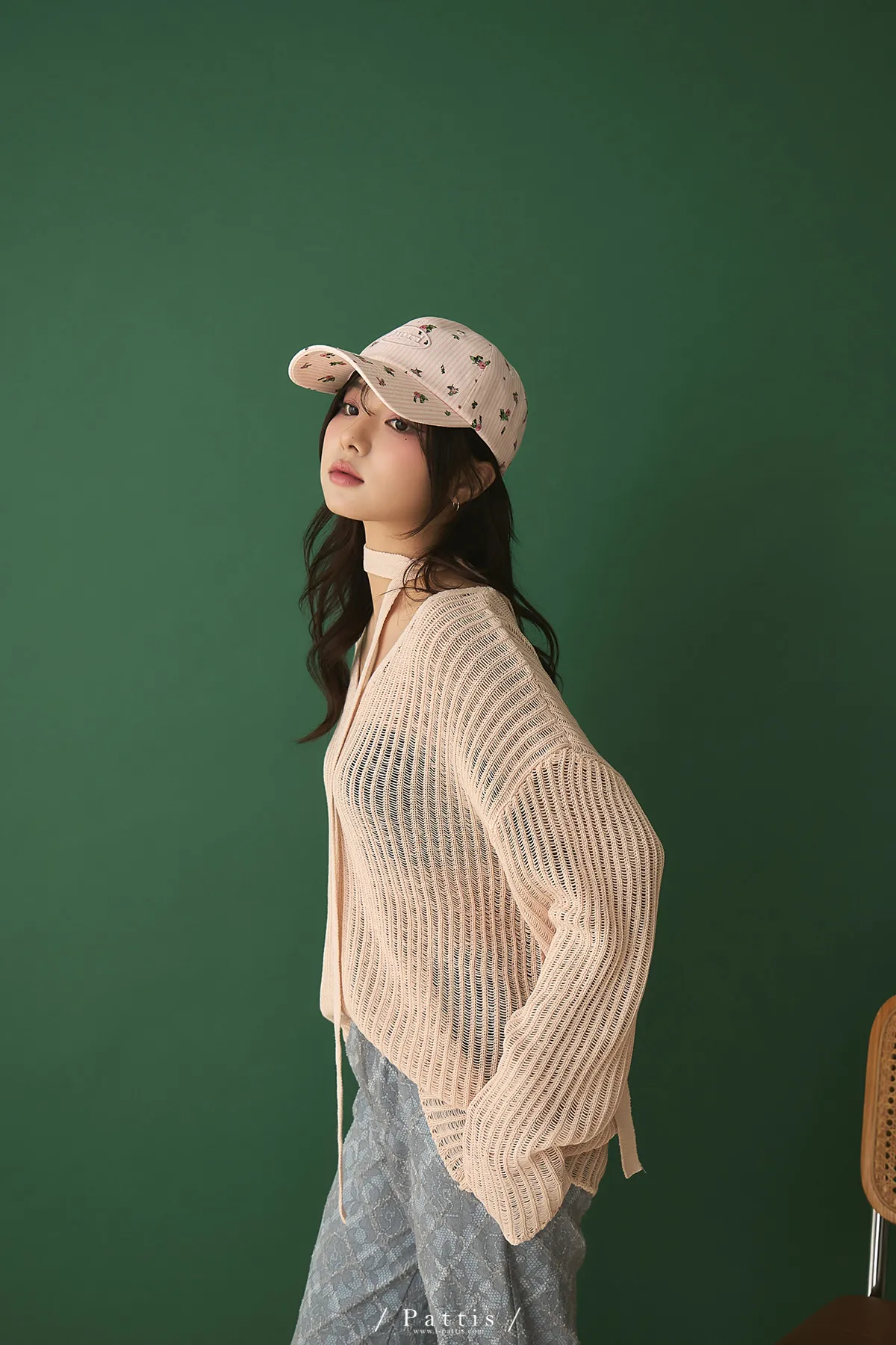清晨偶遇了粉茱萸 | 配綁帶V領針織格紋上衣(淺粉)