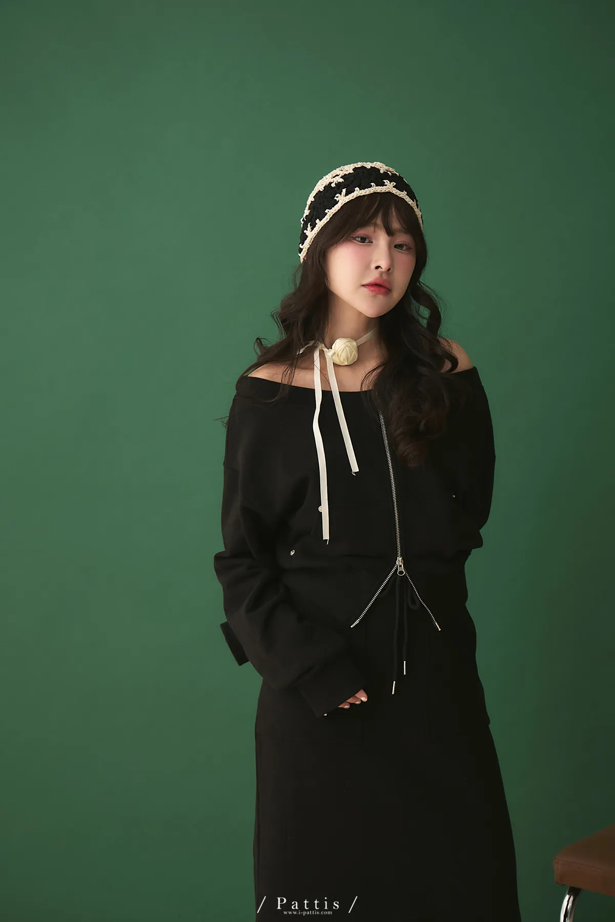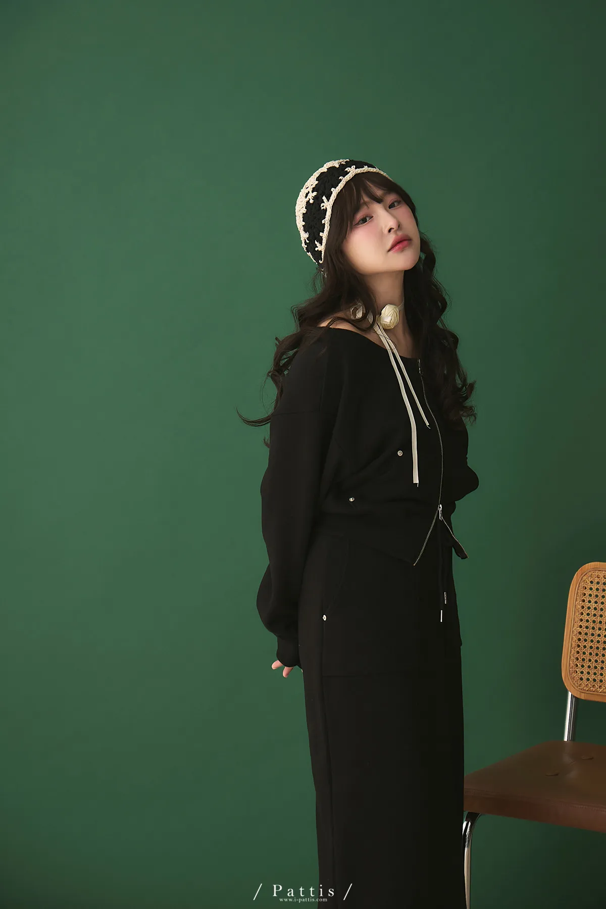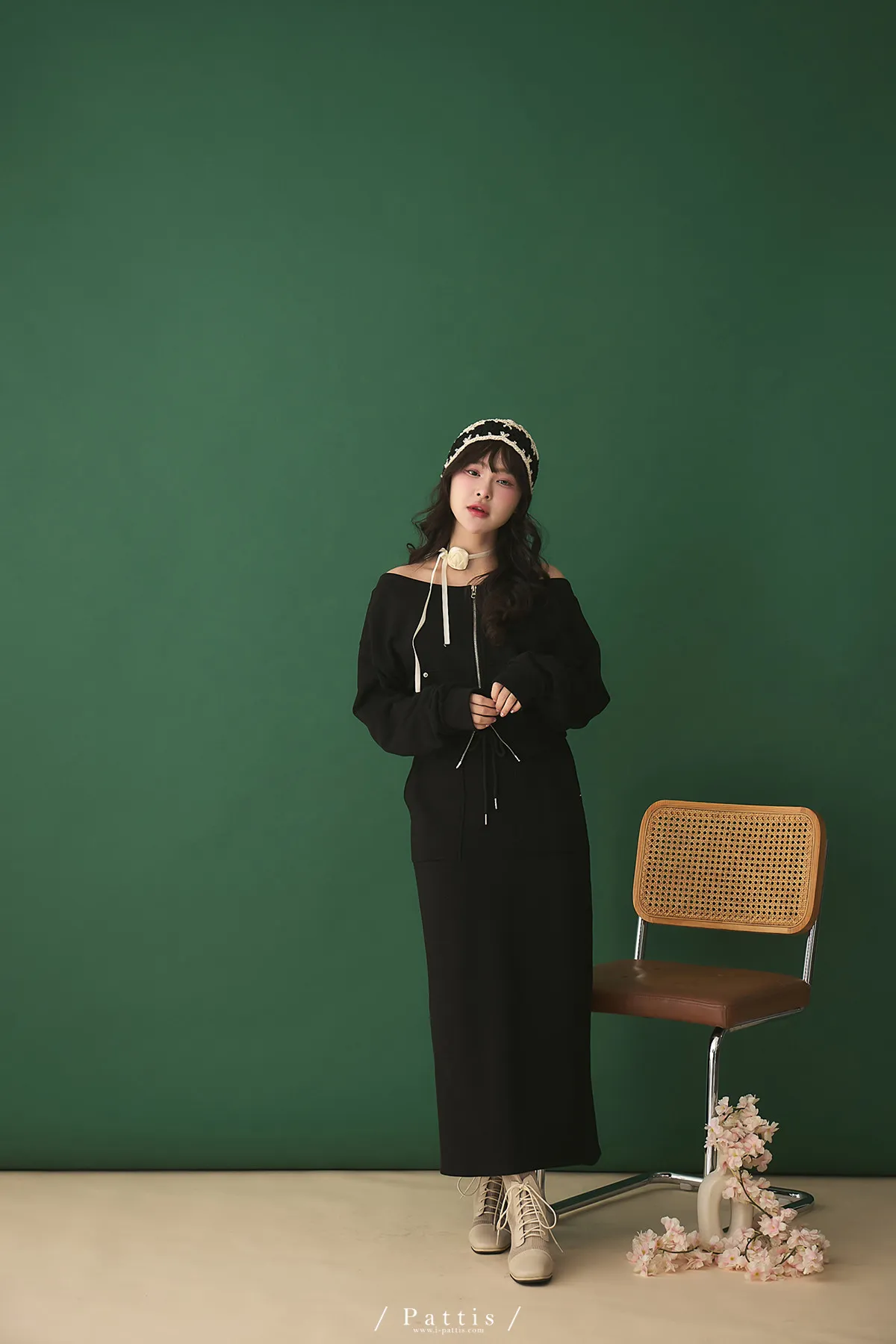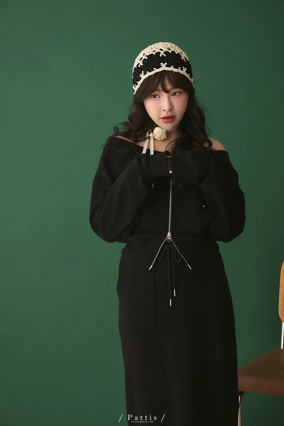 類似隱喻 | 2way雙頭拉鍊一字領外套+開叉長裙set(黑)