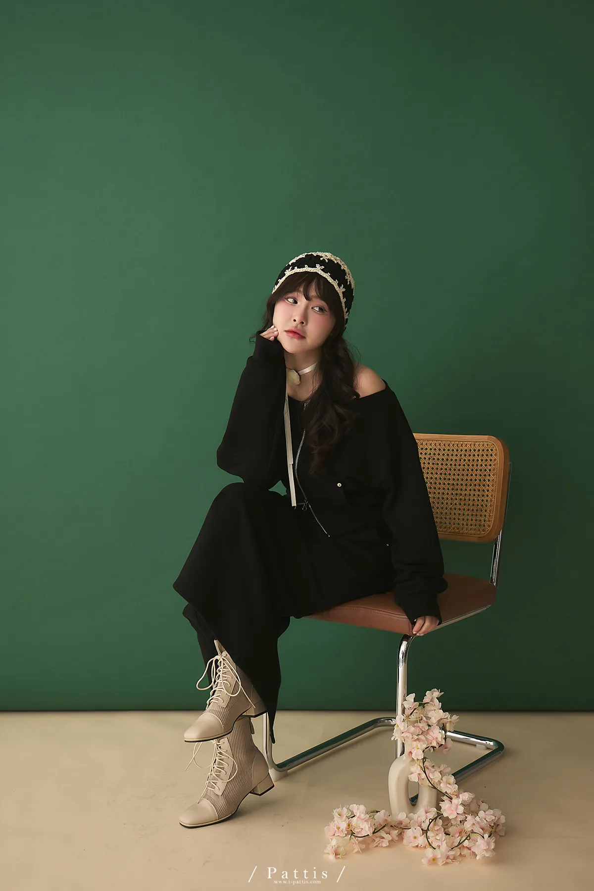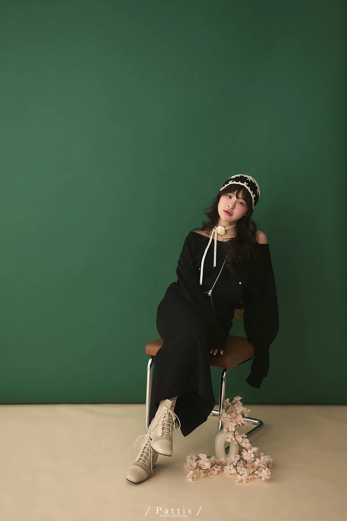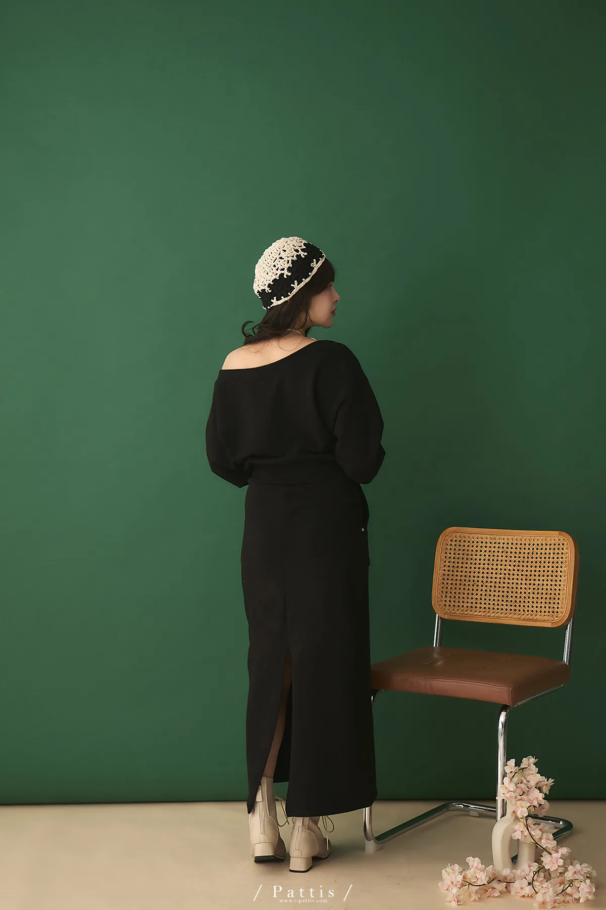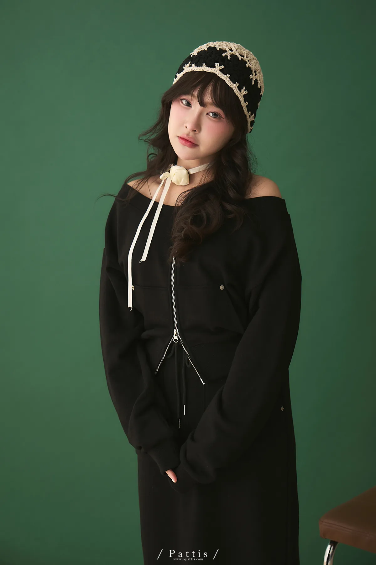 類似隱喻 | 2way雙頭拉鍊一字領外套+開叉長裙set(黑)