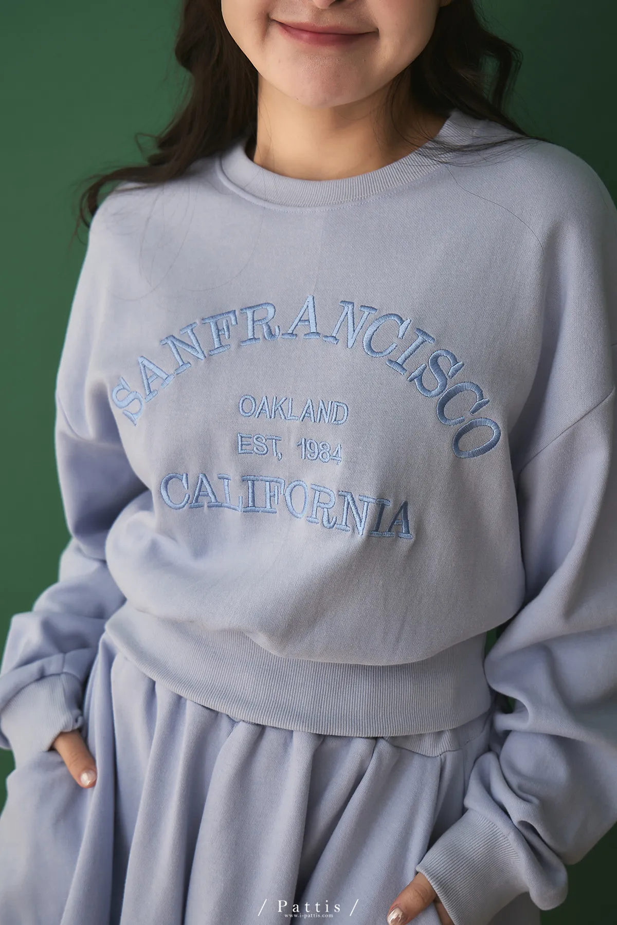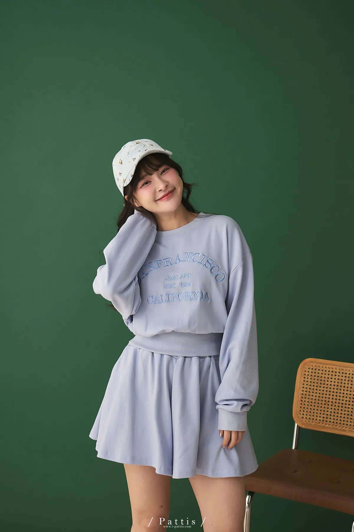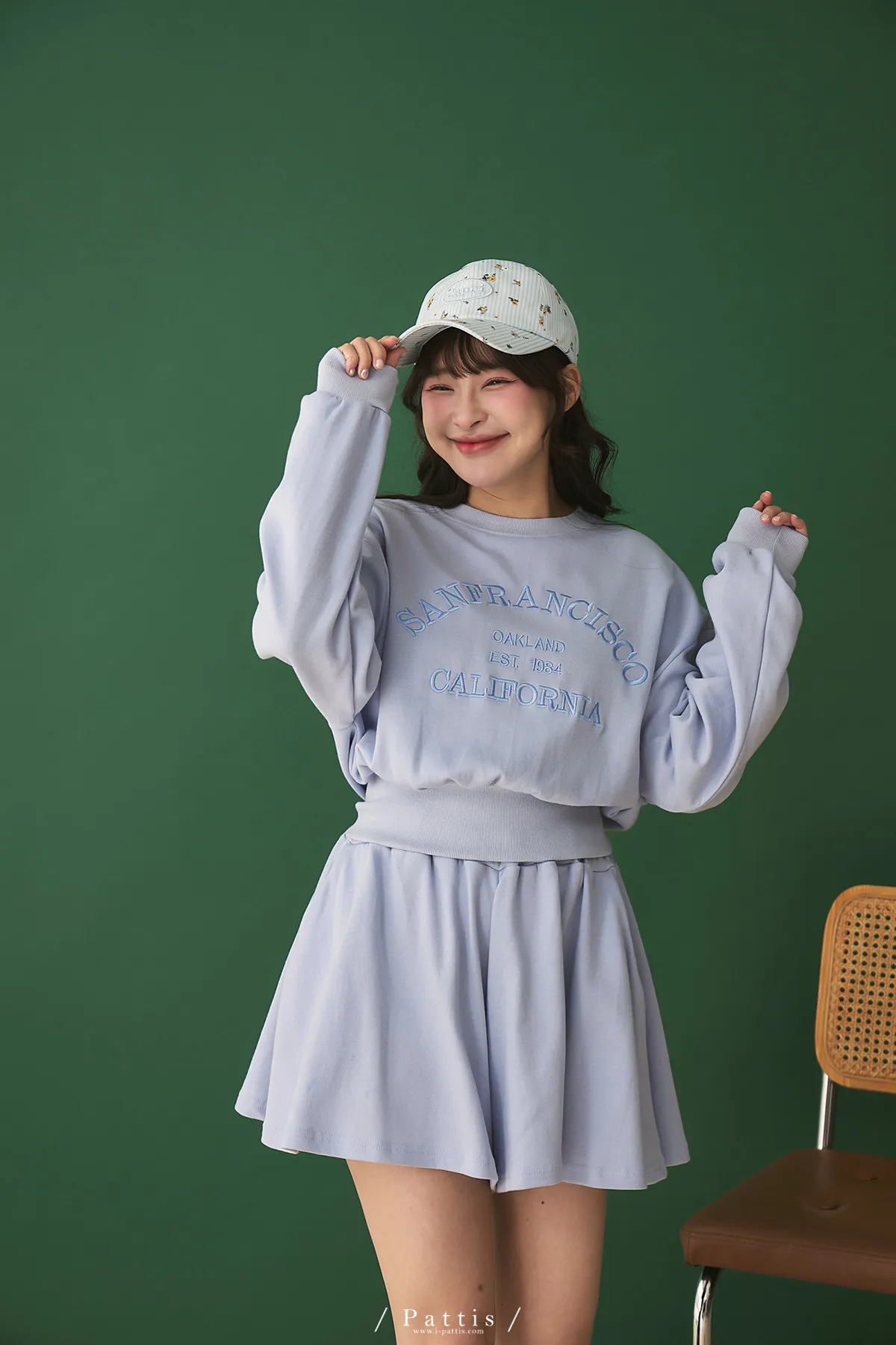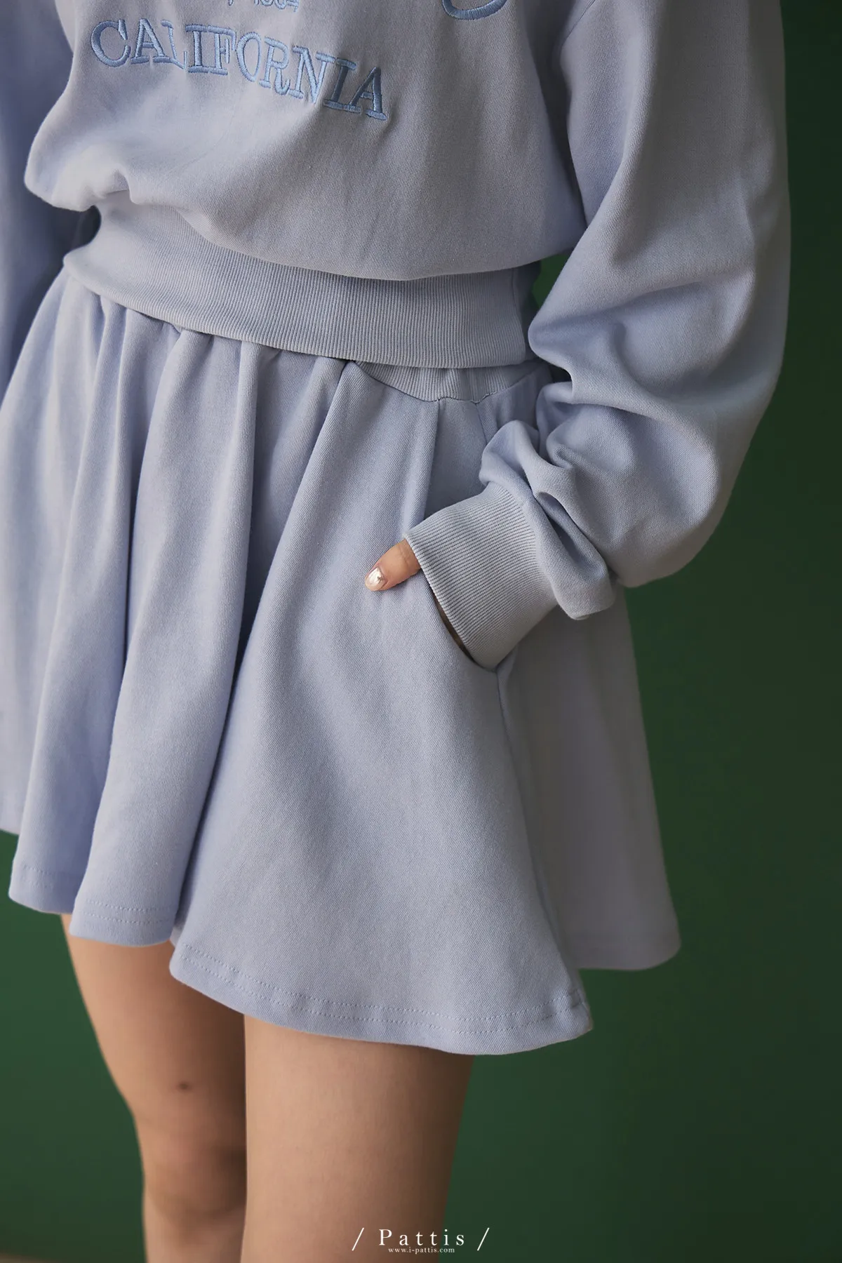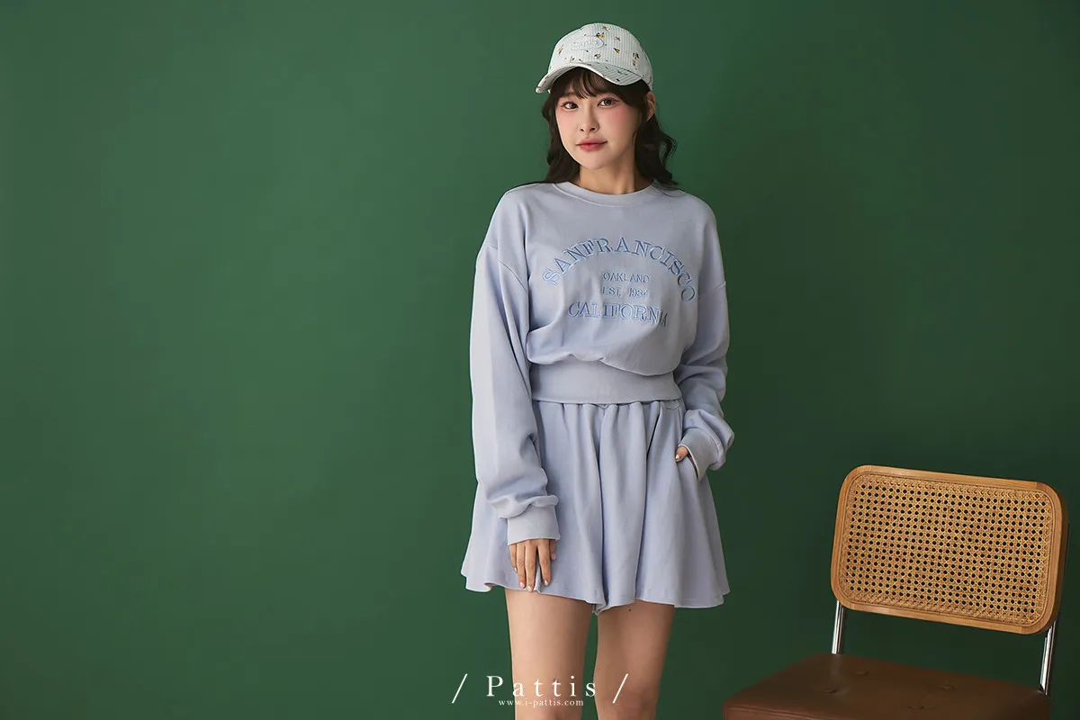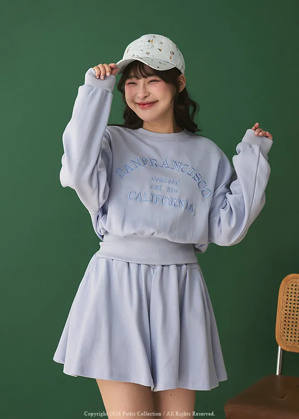 *特*刺繡字母圓領上衣+短褲裙set組(藍紫色)