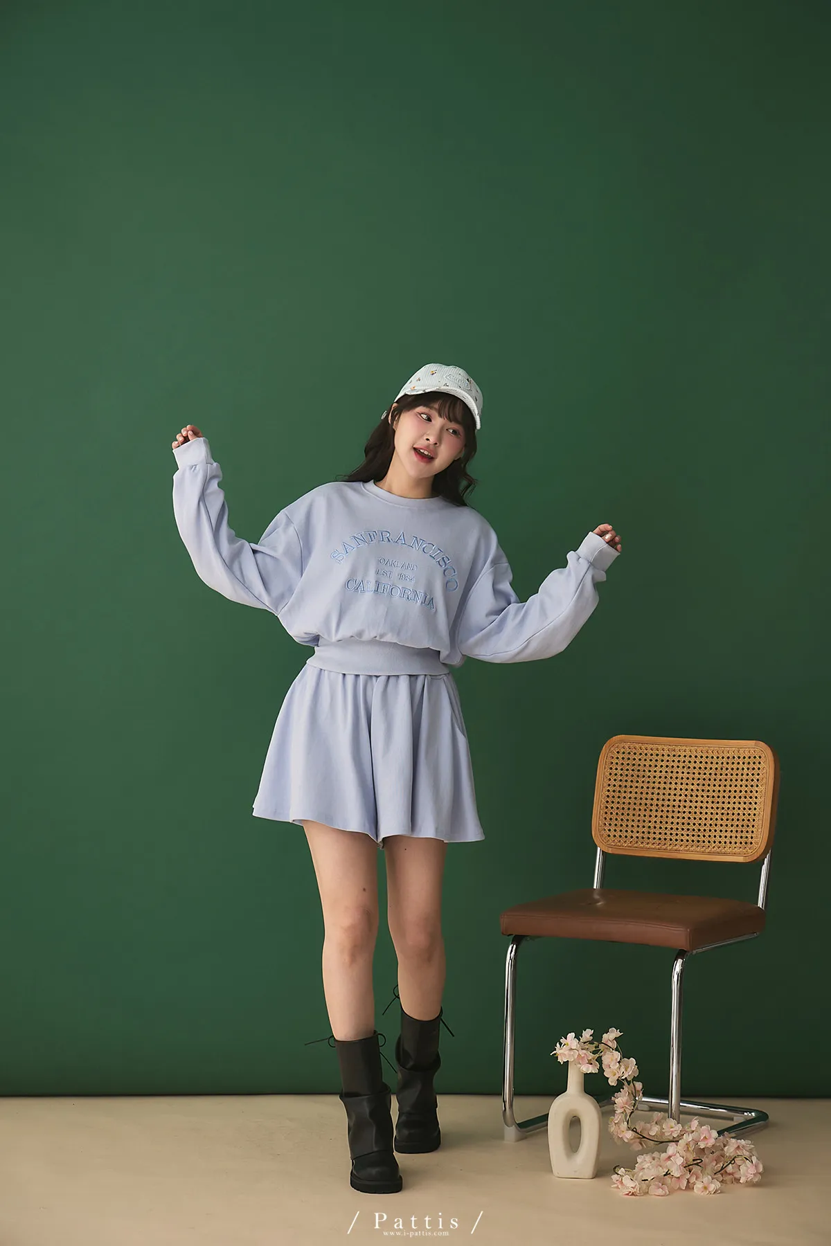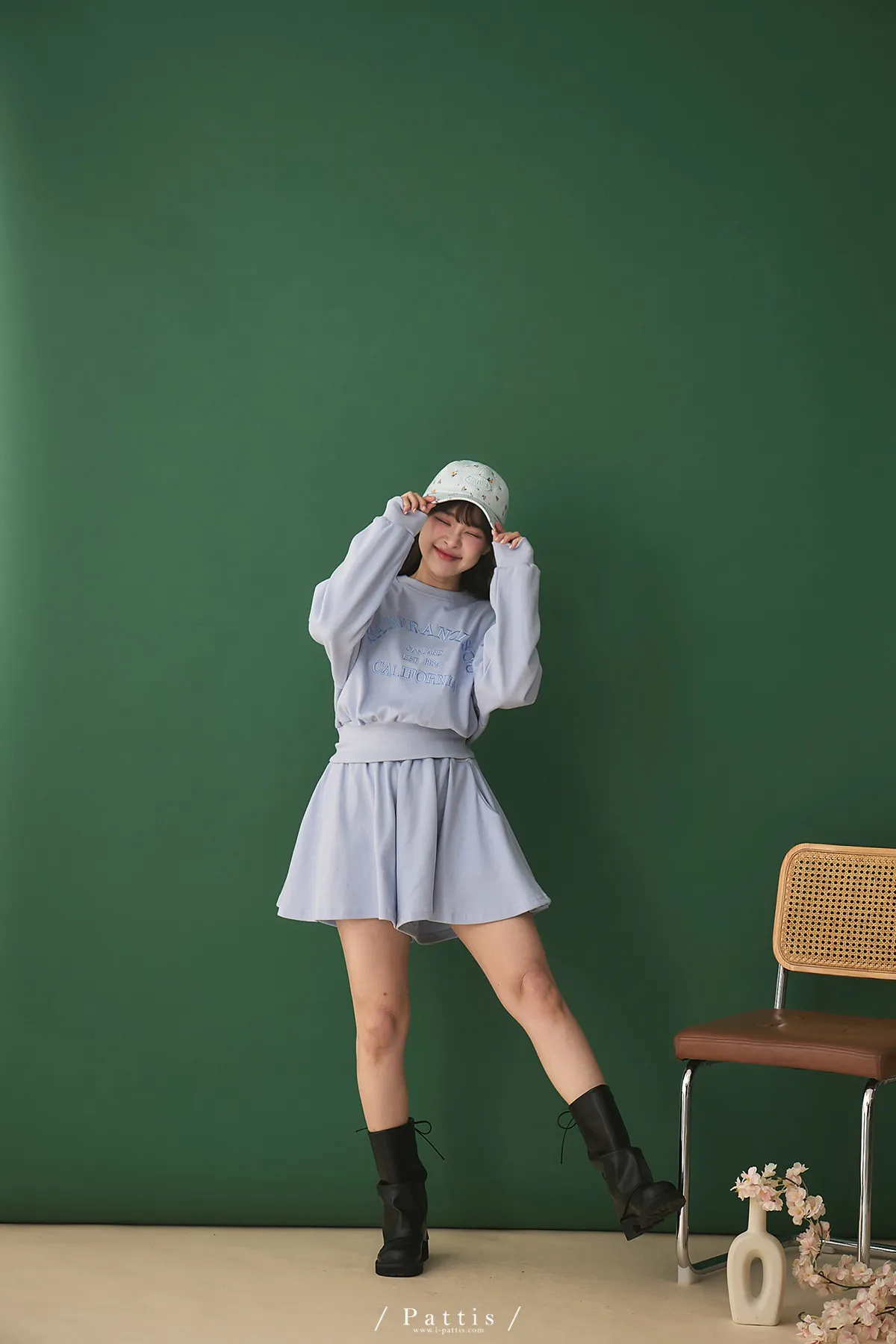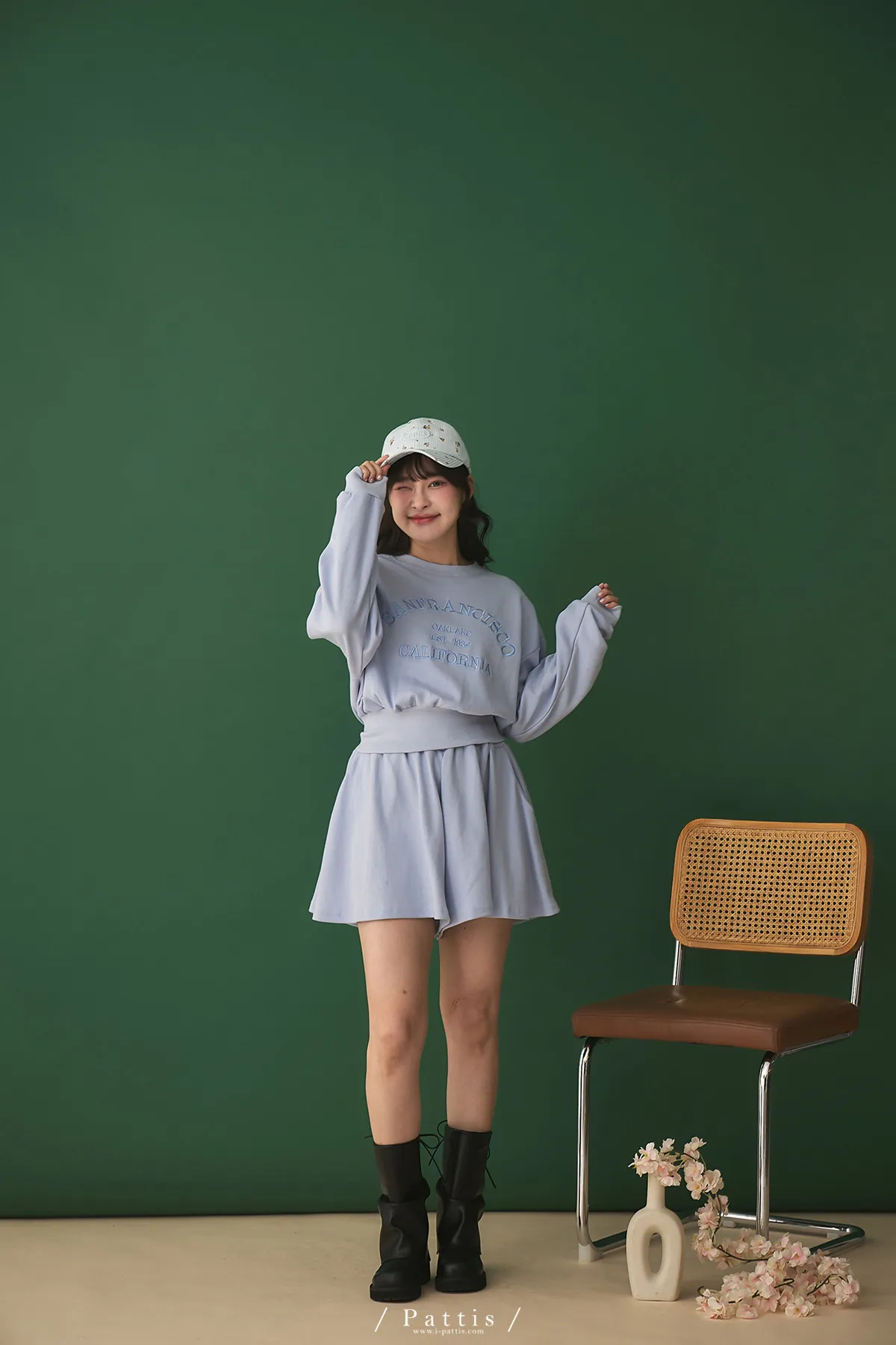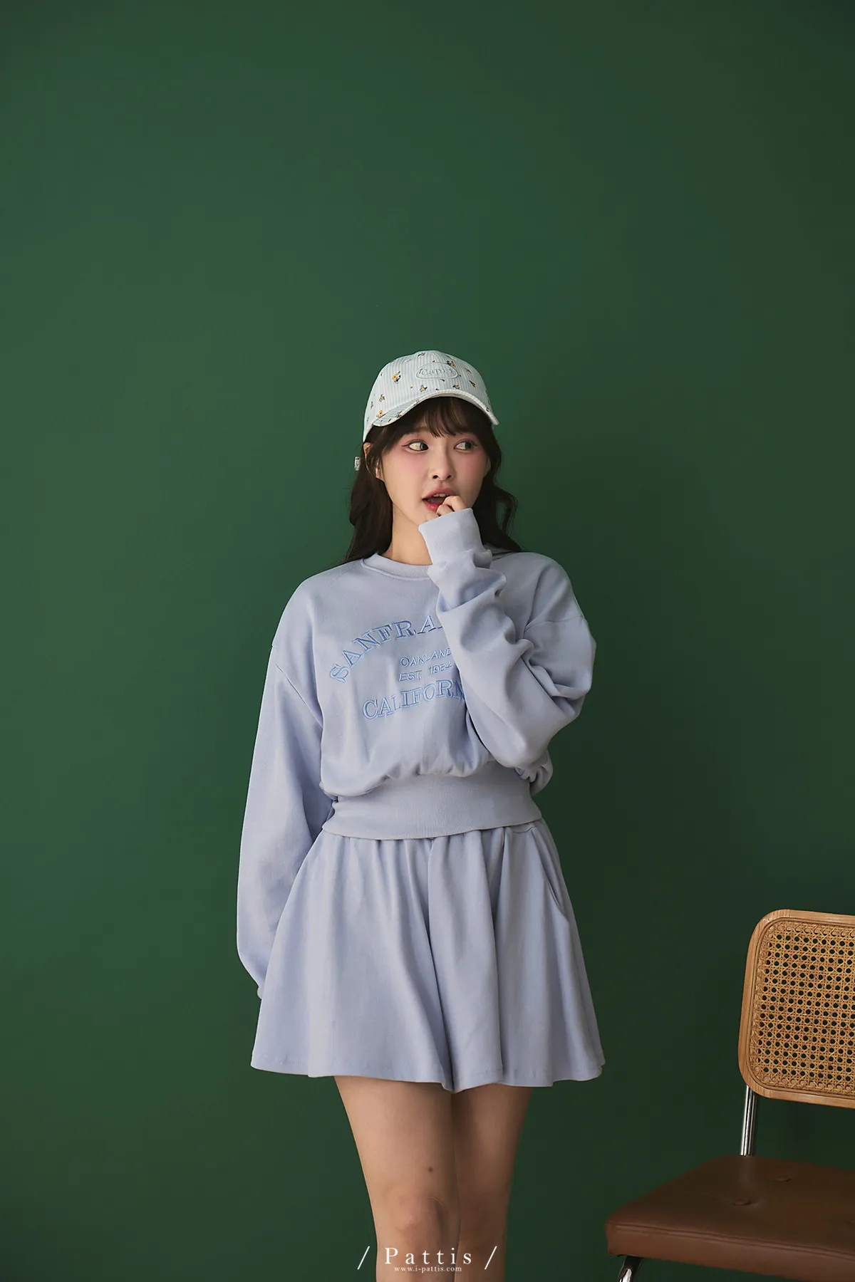 *特*刺繡字母圓領上衣+短褲裙set組(藍紫色)