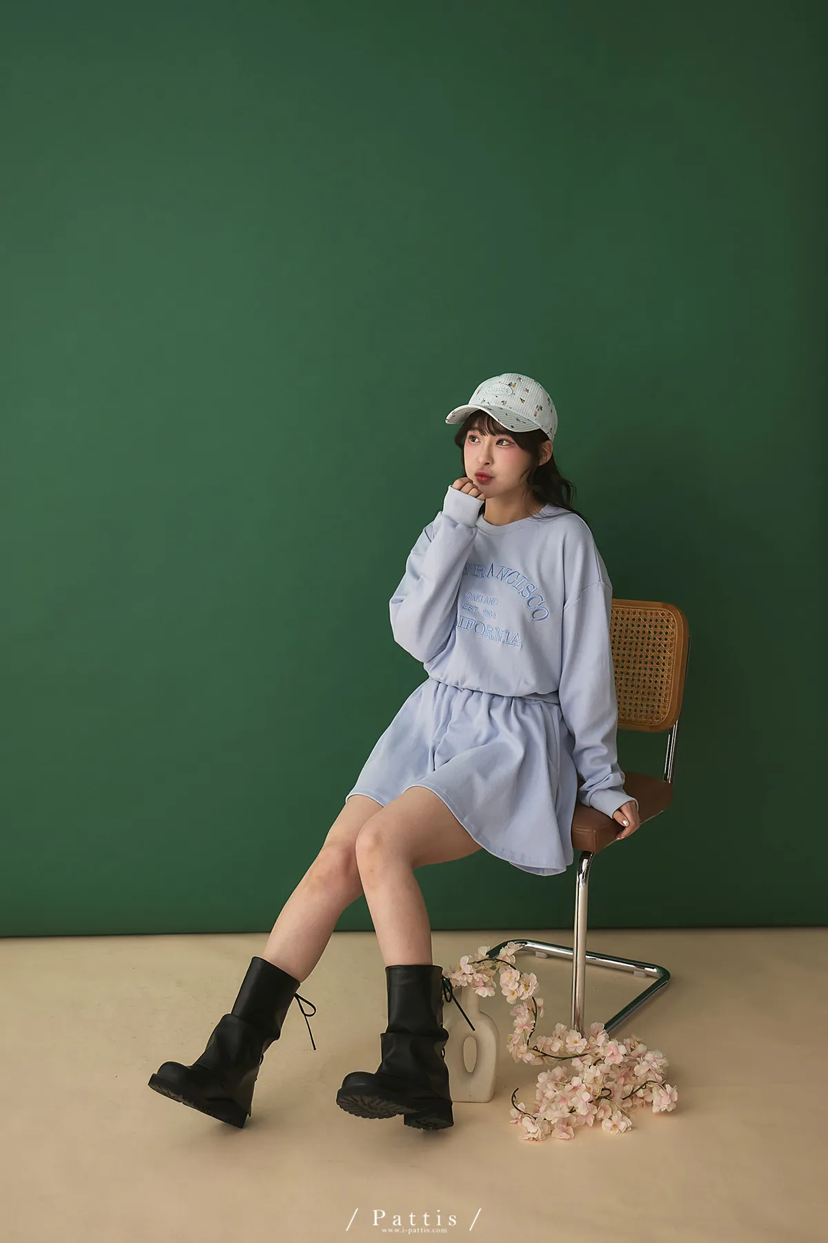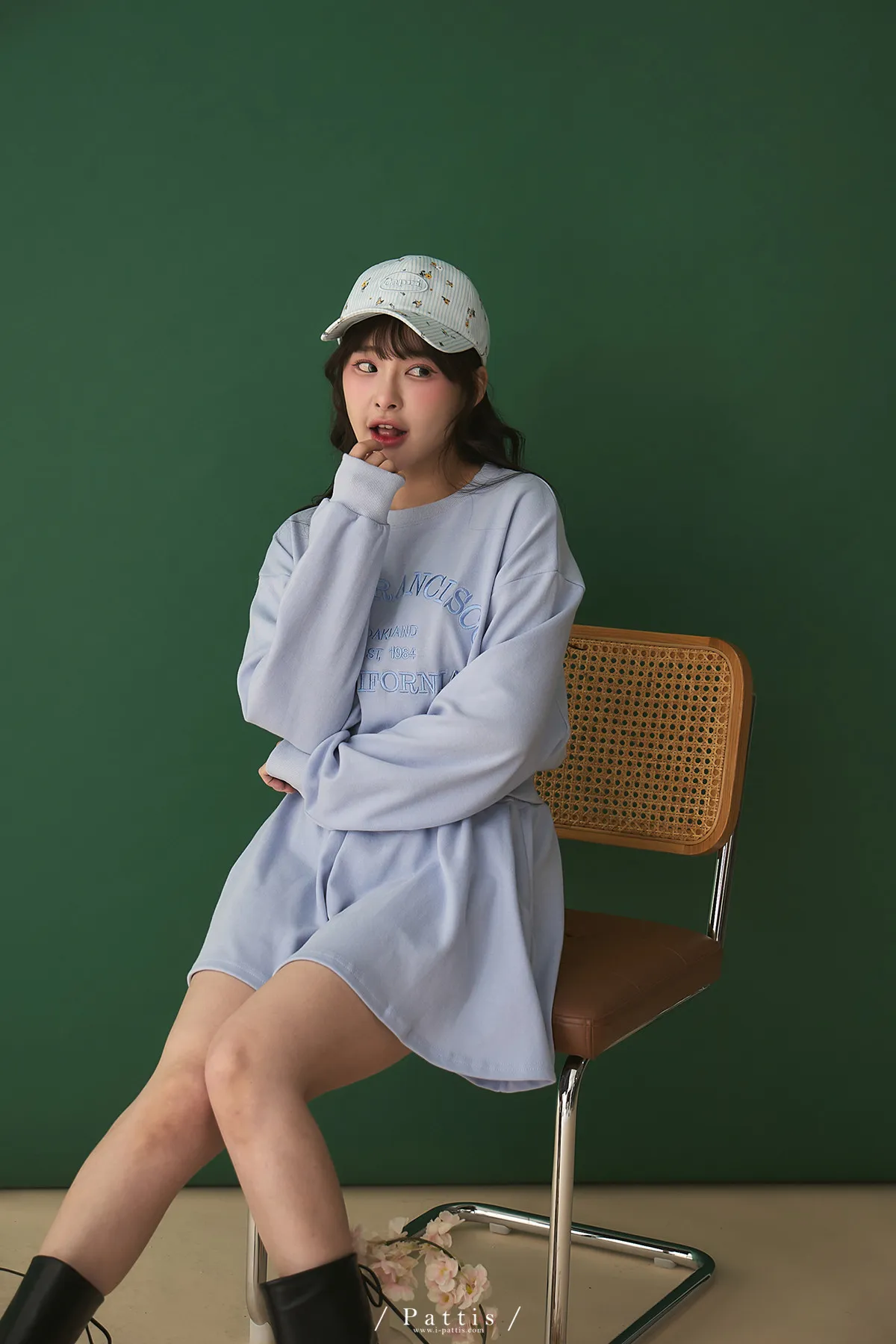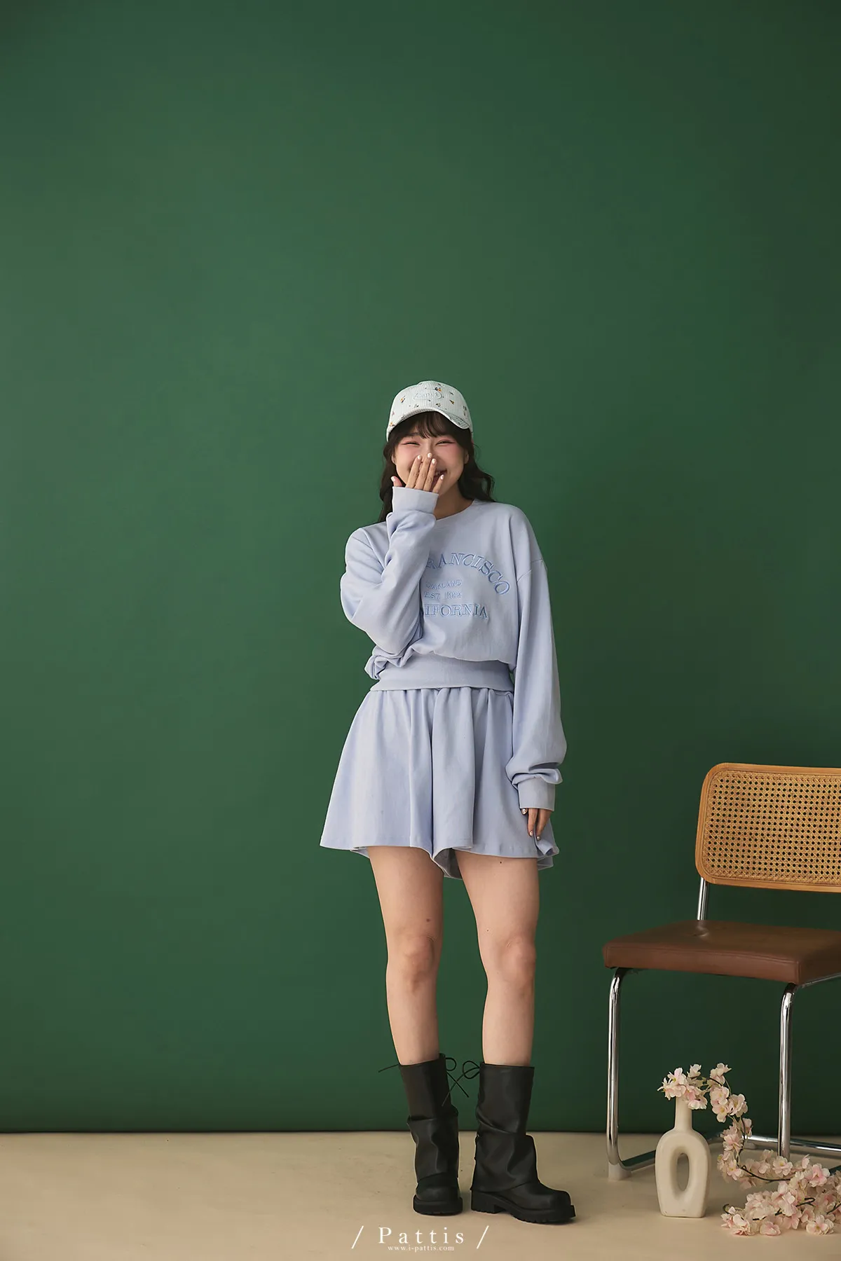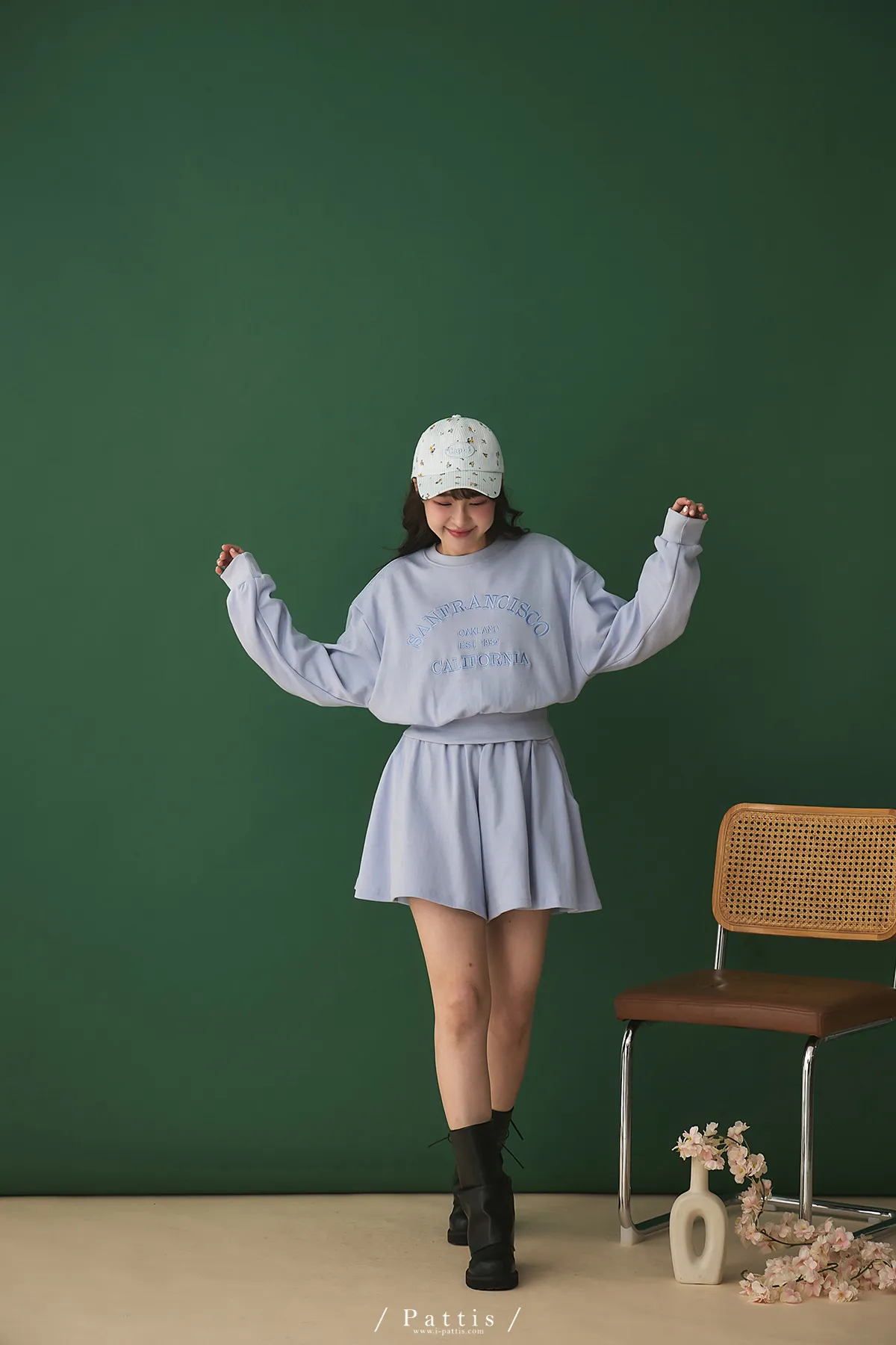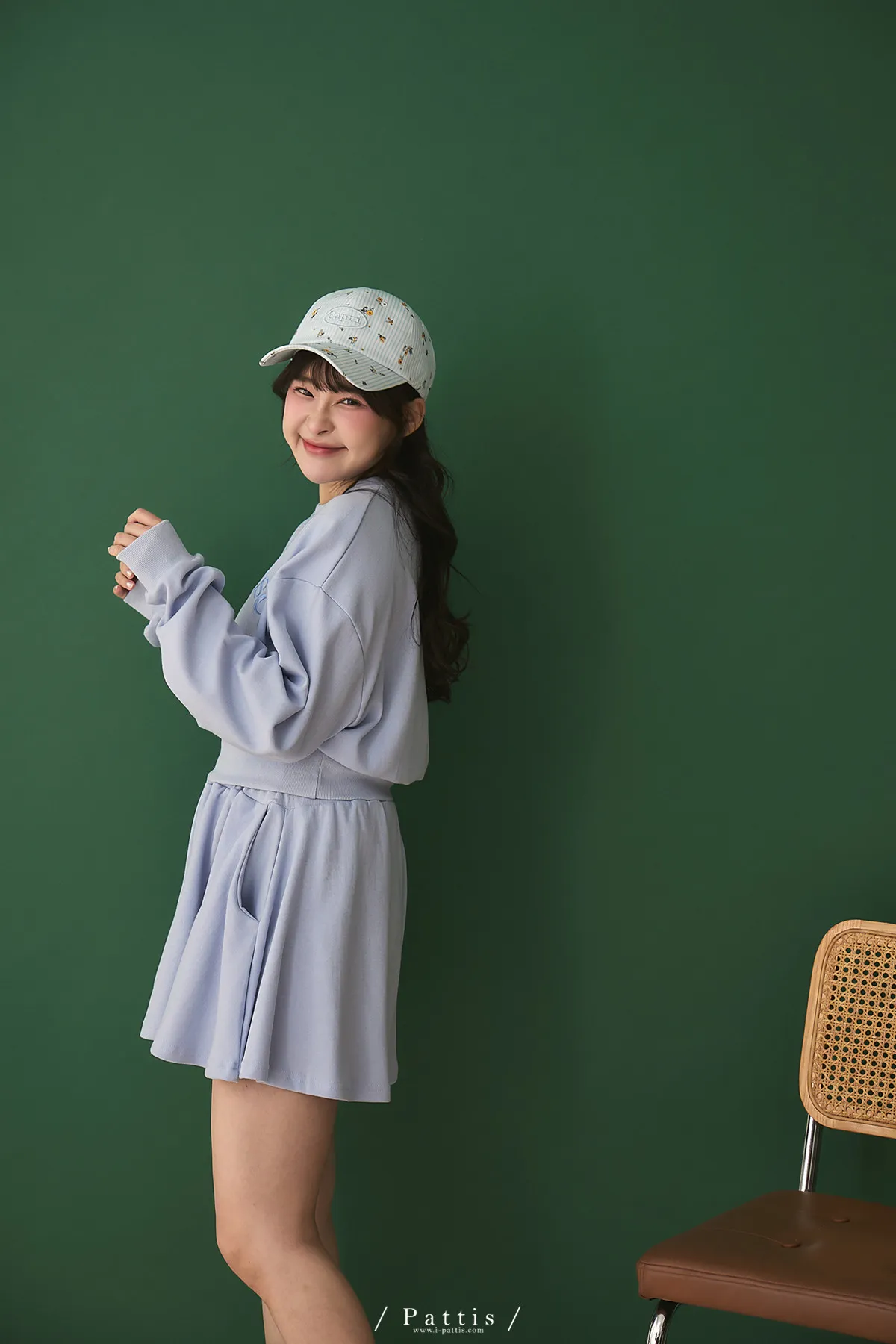 *特*刺繡字母圓領上衣+短褲裙set組(藍紫色)