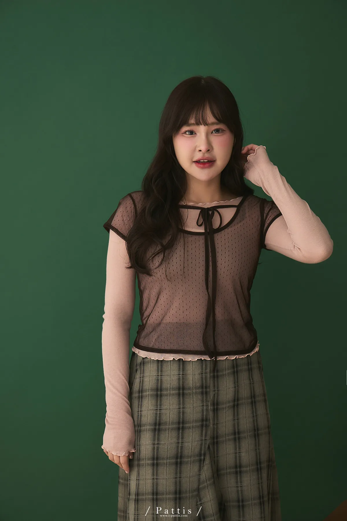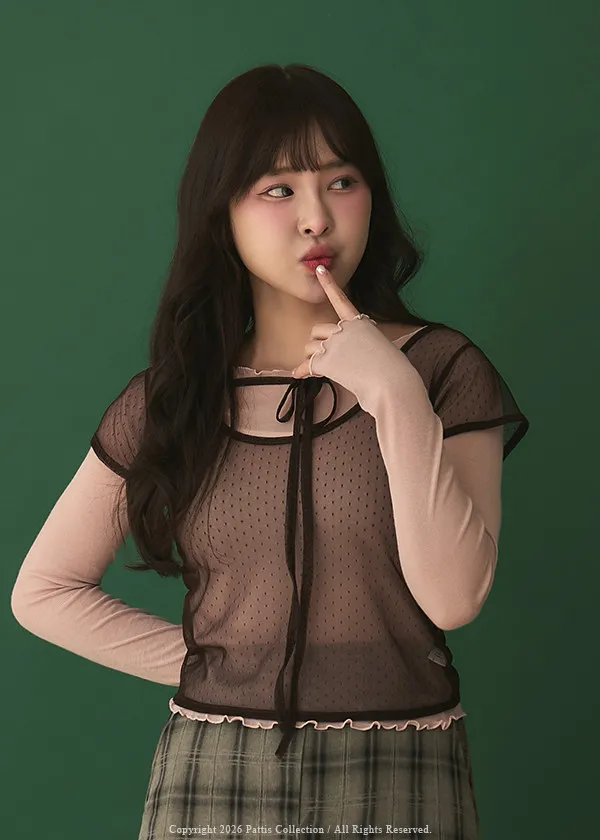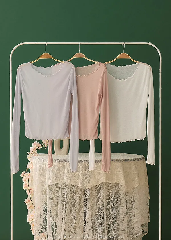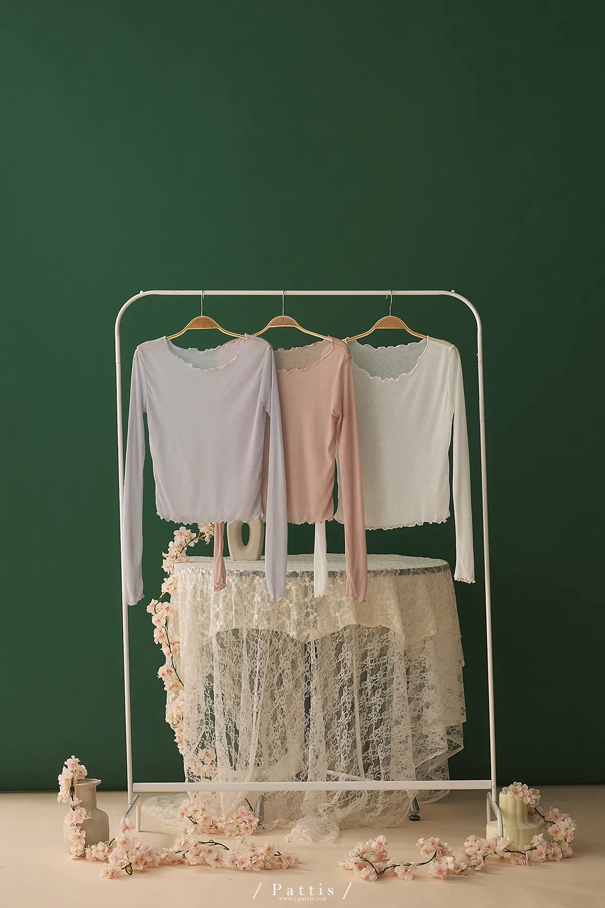 *特*親膚微透肌感木耳滾邊上衣(粉)