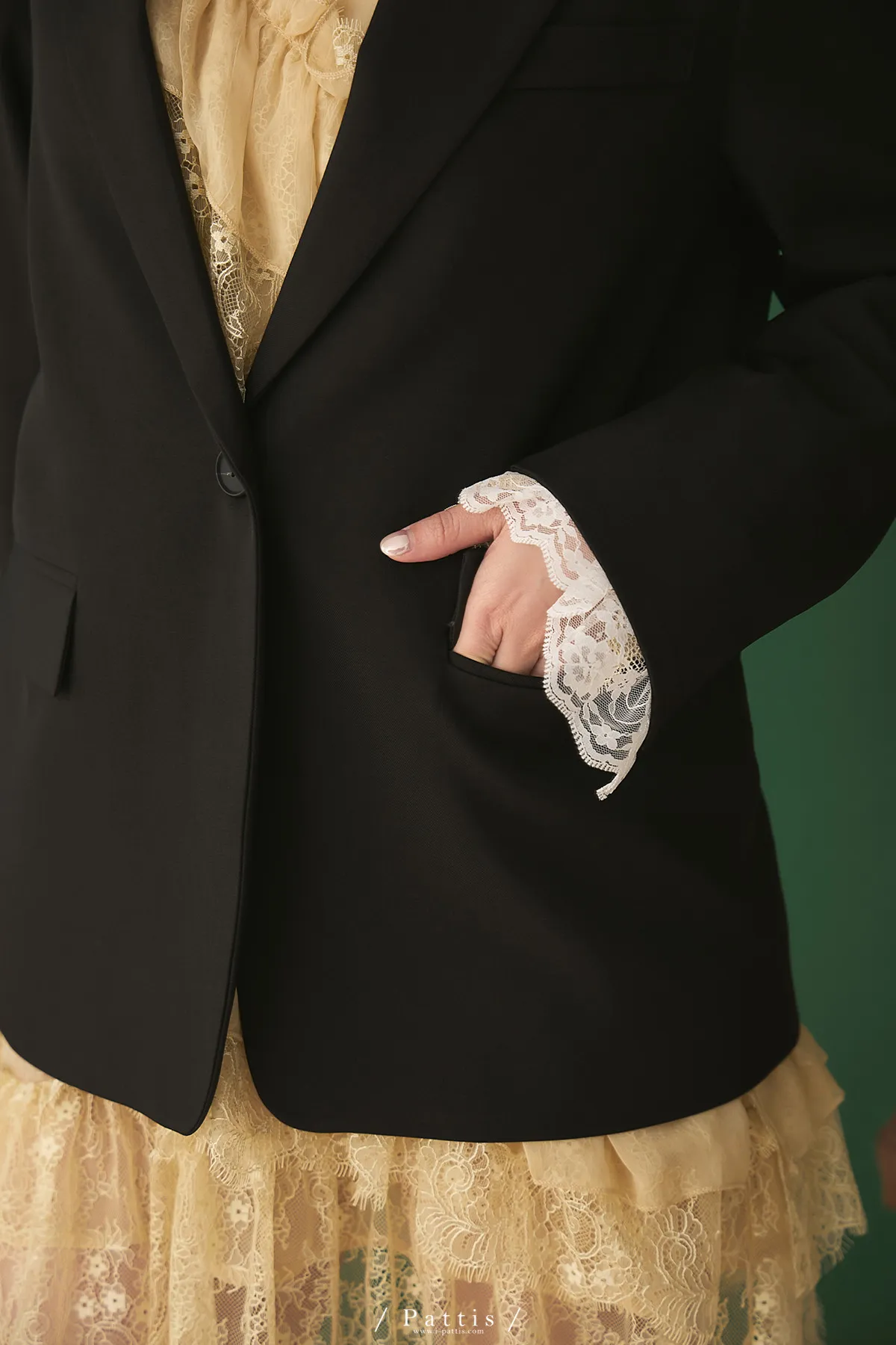 寫了一句今天喜歡的句子 | 綴蕾絲可拆袖口西裝外套(黑)