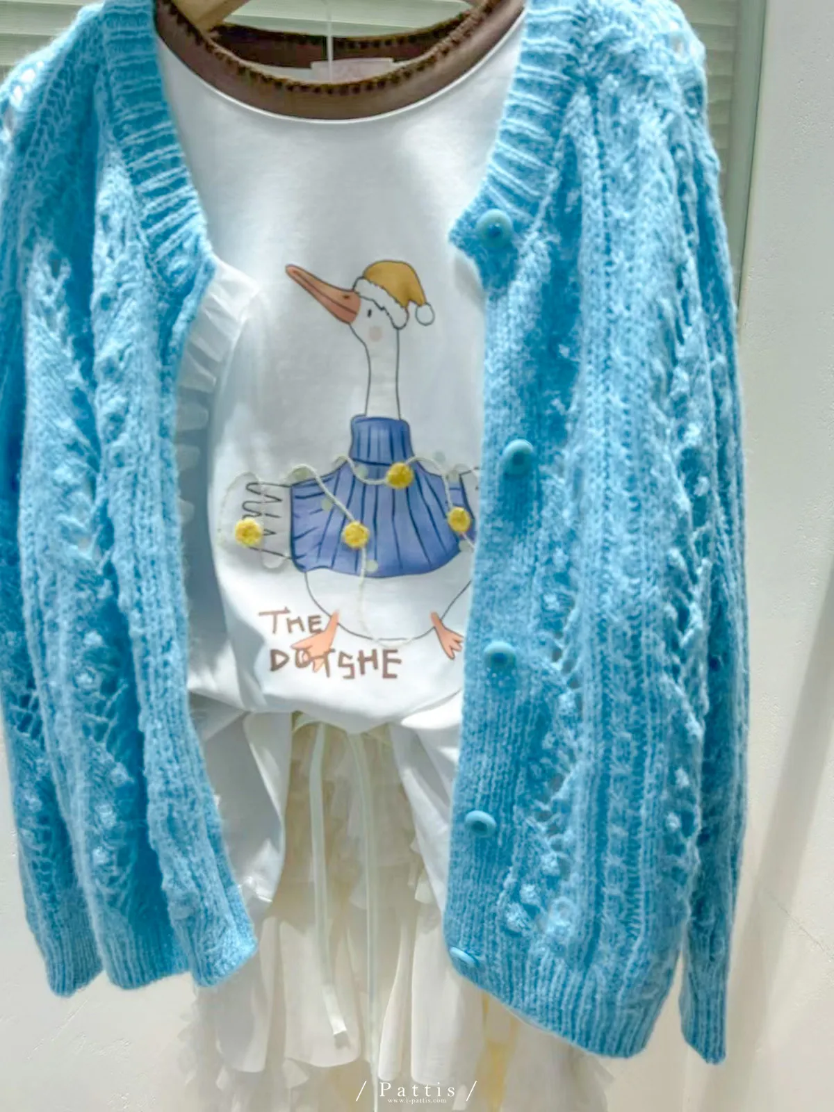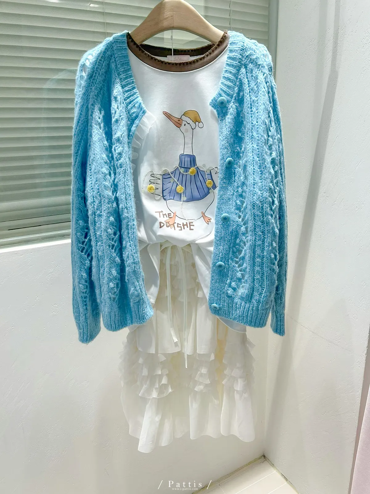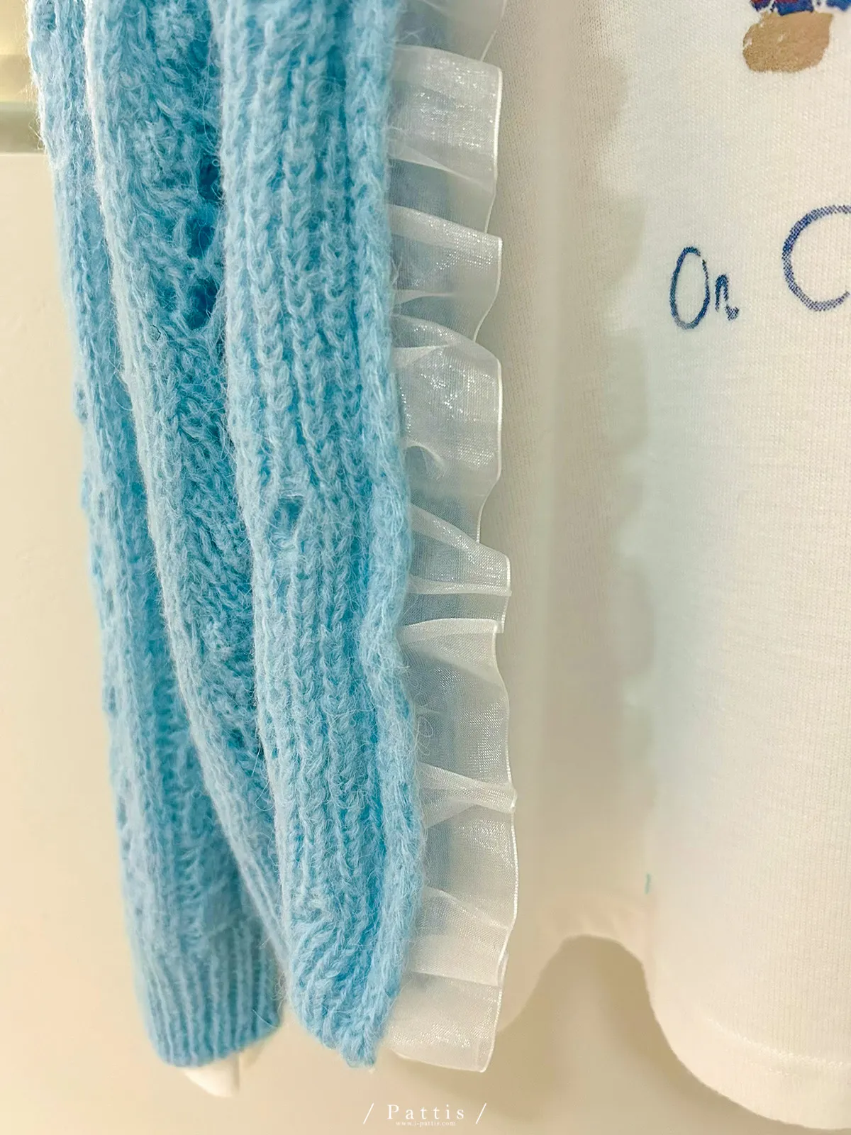 柔軟的理想之地 | 縷空勾針綴荷葉紗滾邊外套(藍)