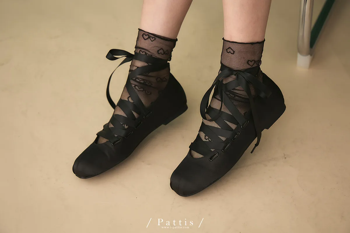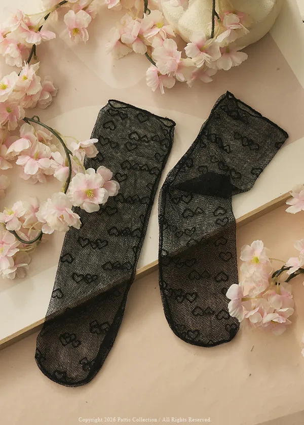 (現貨)雙愛心黑色網狀短襪(單一色)