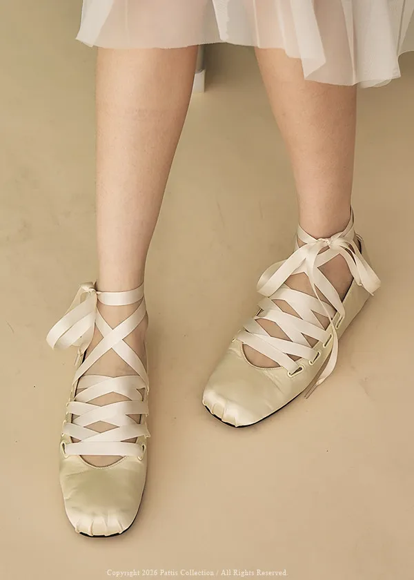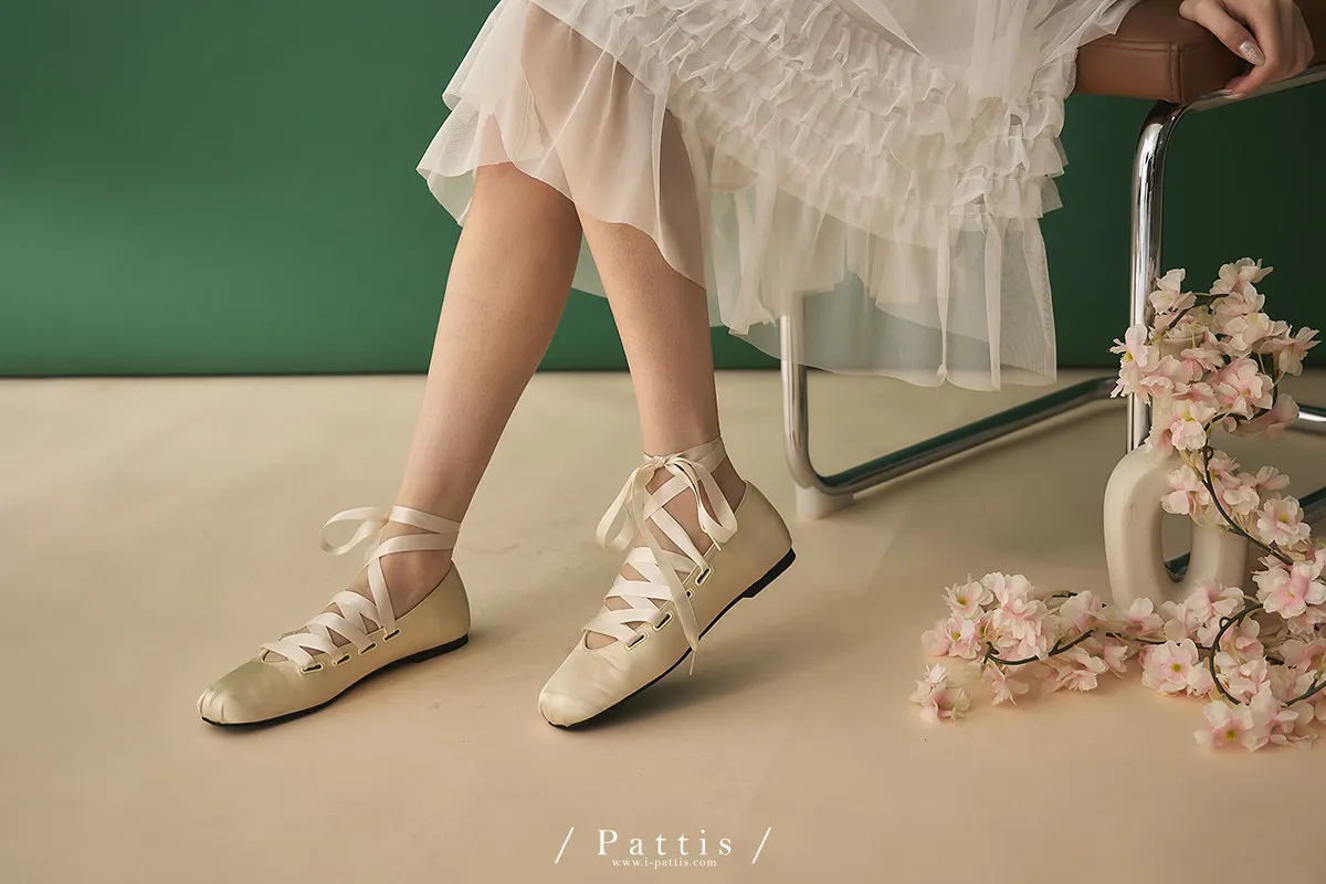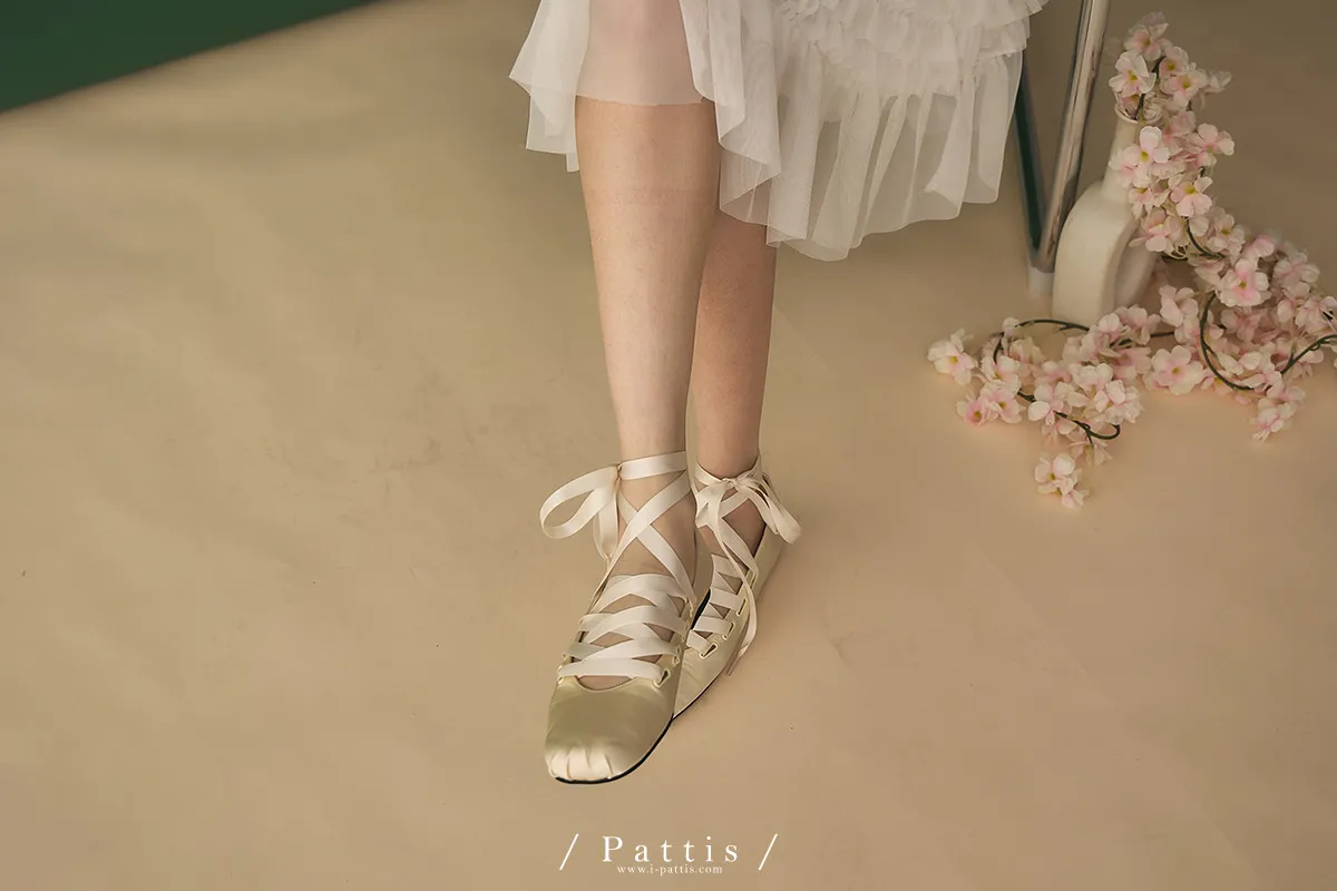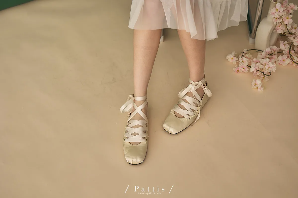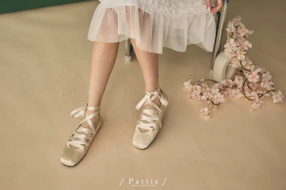 芭蕾少女歌單 | 絲光緞帶交叉芭蕾舞綁帶鞋(米白/黑)