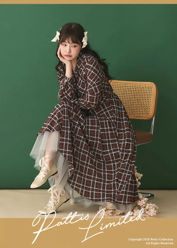 採用帶有垂墜感的格紋布料,輕薄不易起皺,行走間裙襬拼接的網紗層次飄逸感滿滿