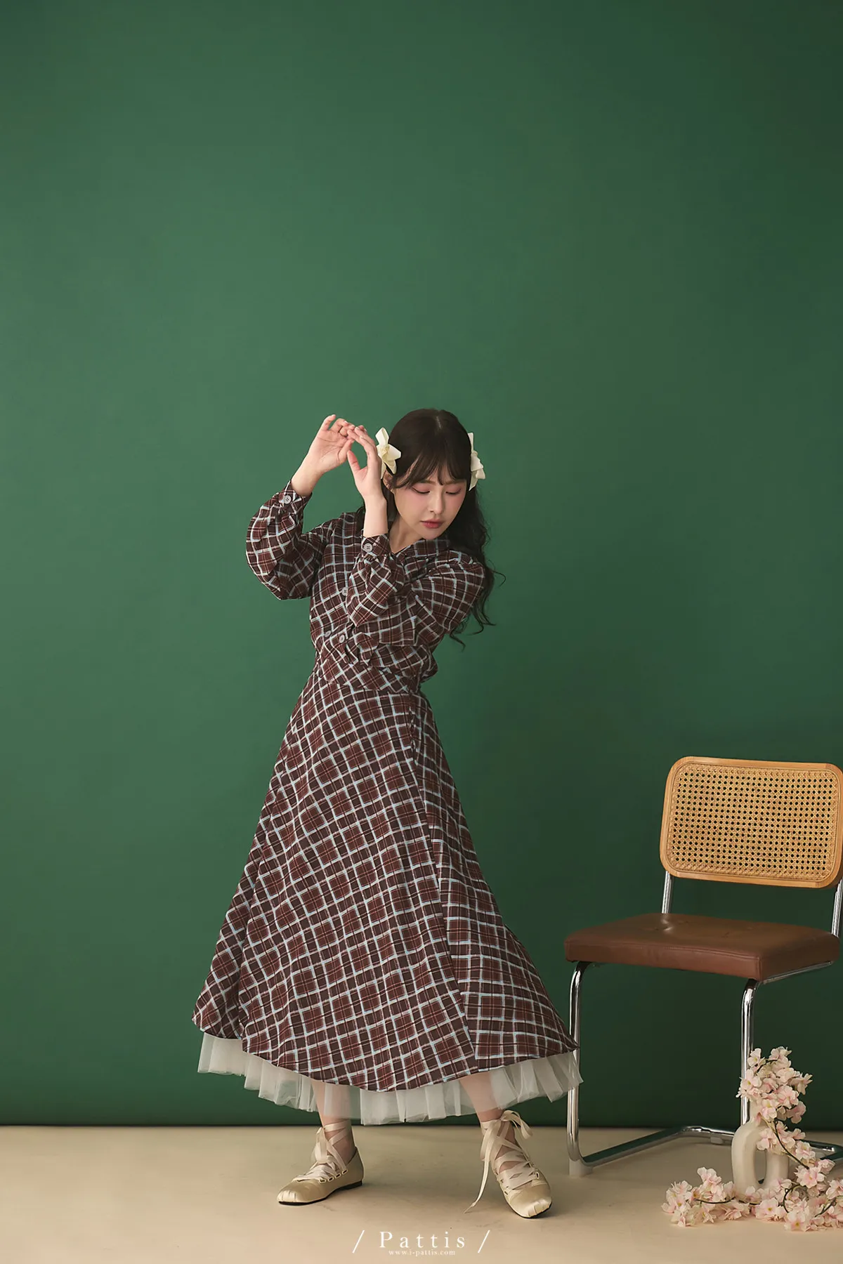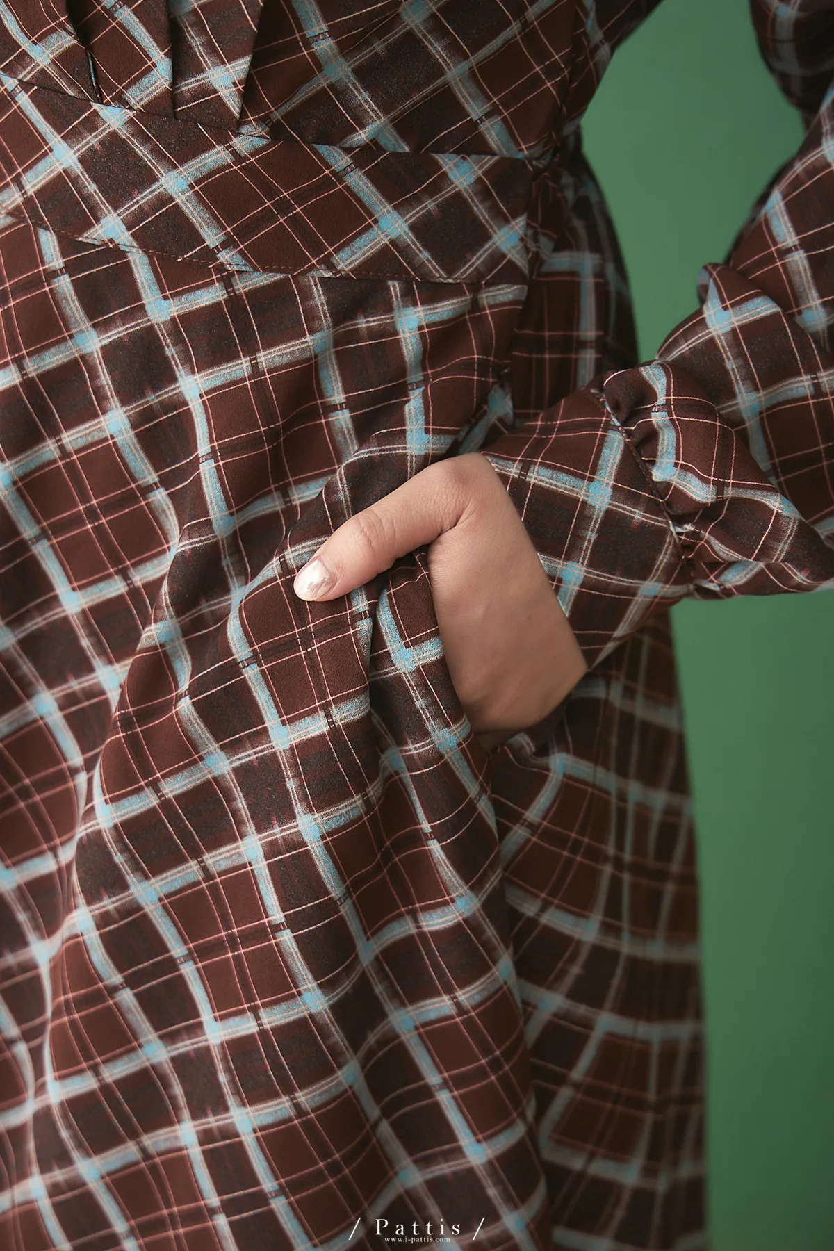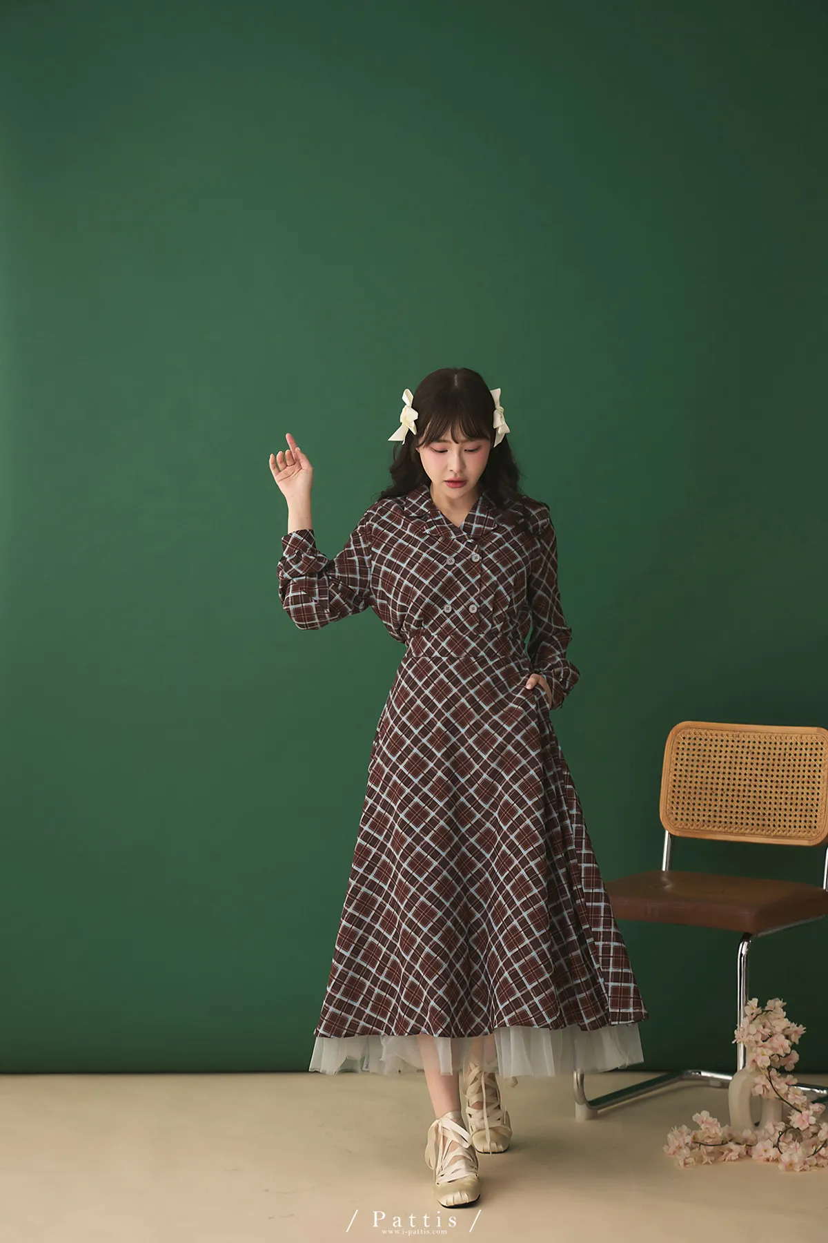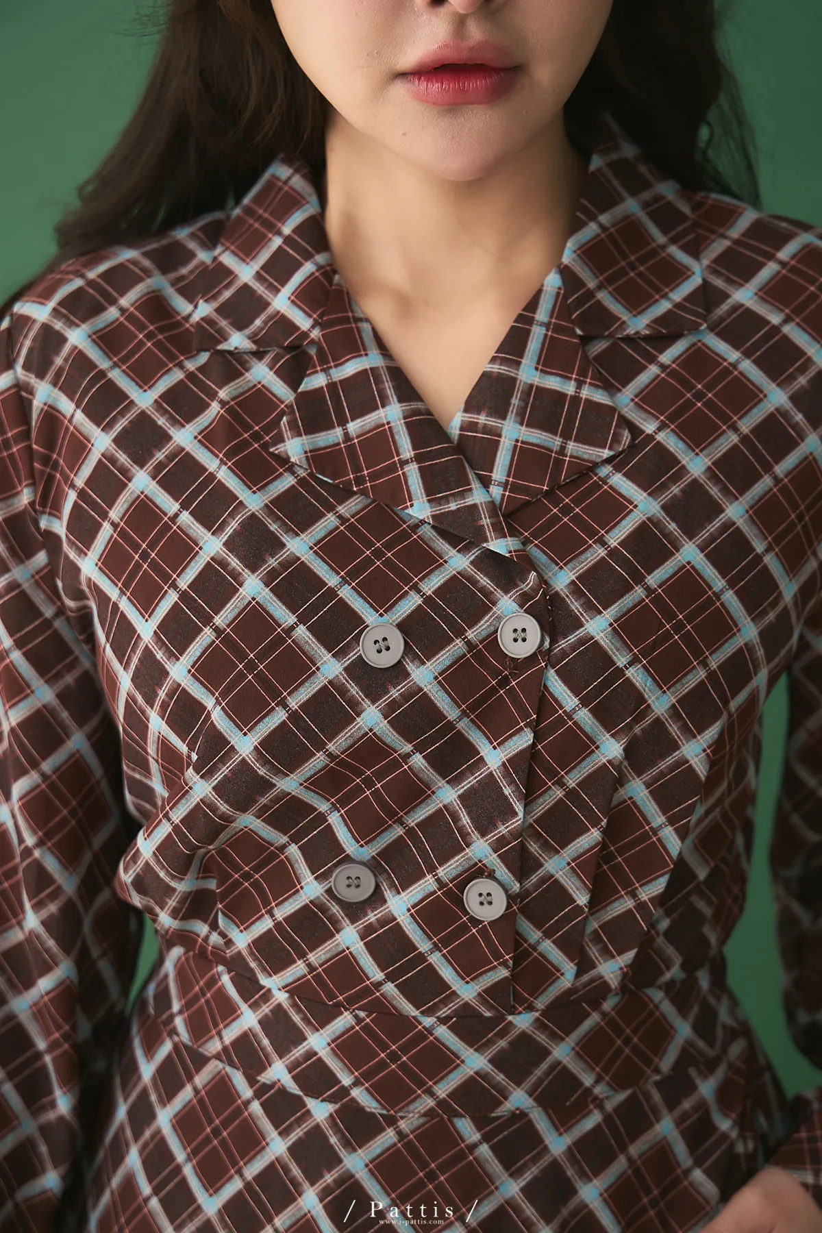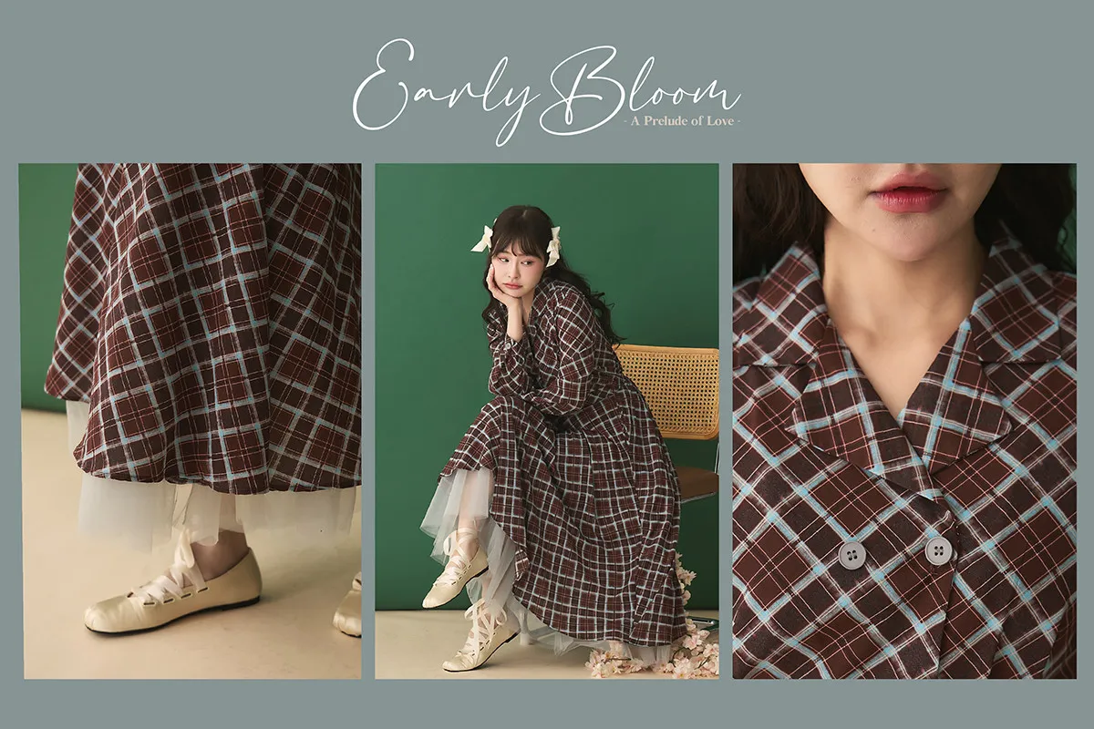 襯衫領設計讓整體輪廓更俐落,微微中和格紋的甜感,穿起來多了一份知性與成熟氛圍。