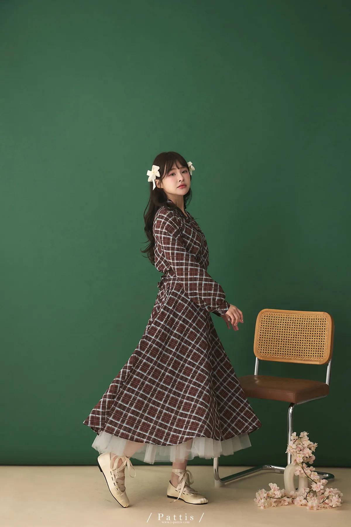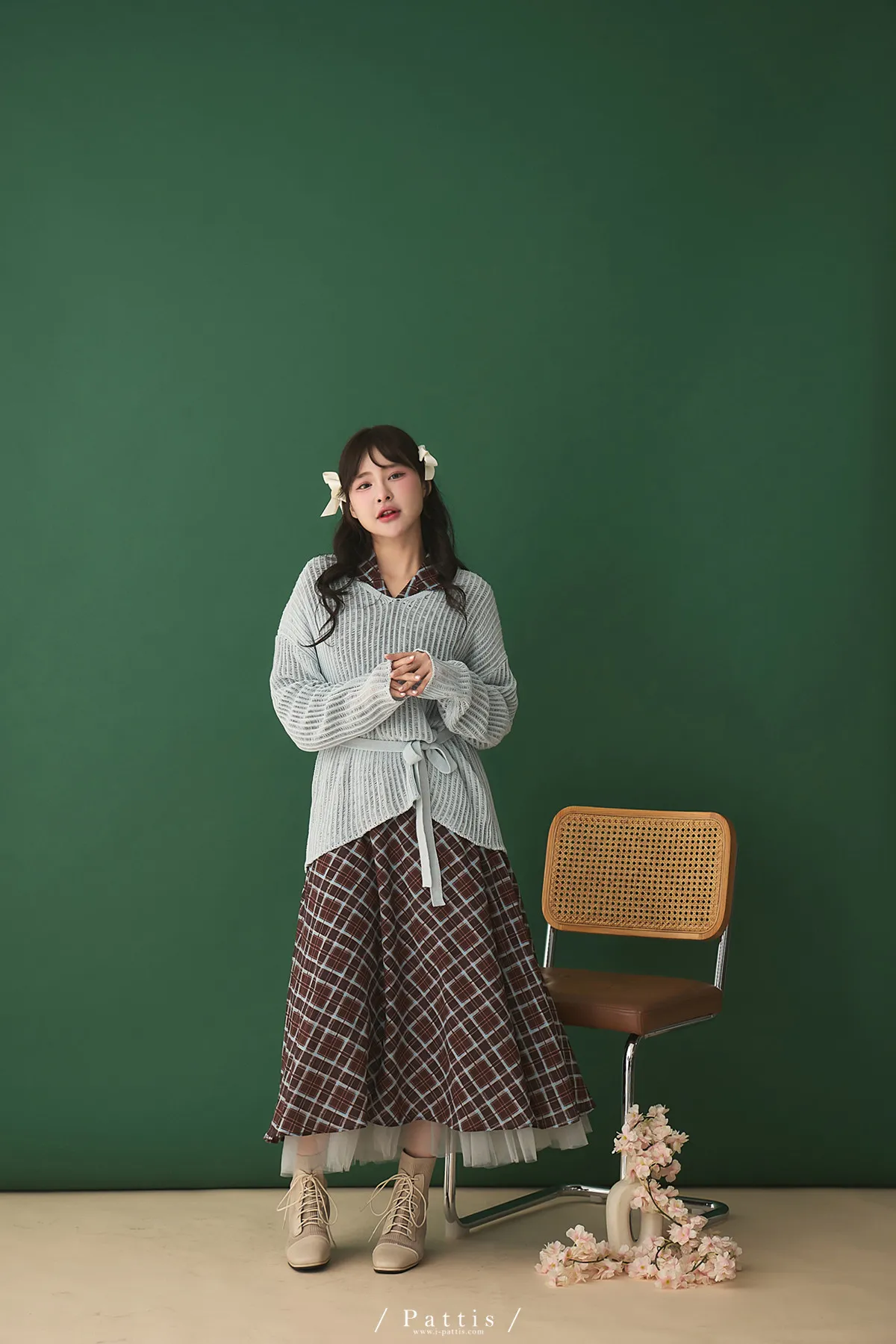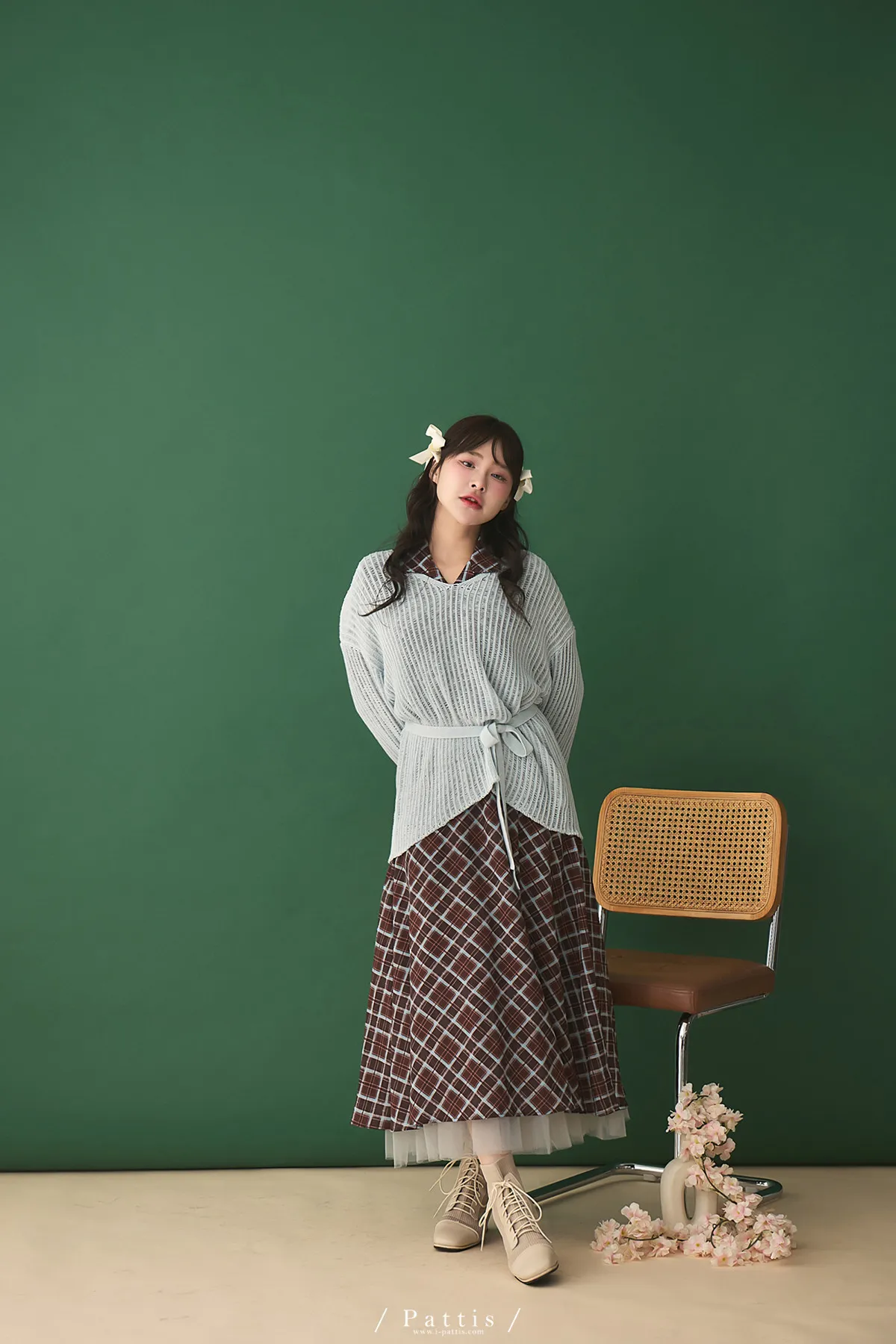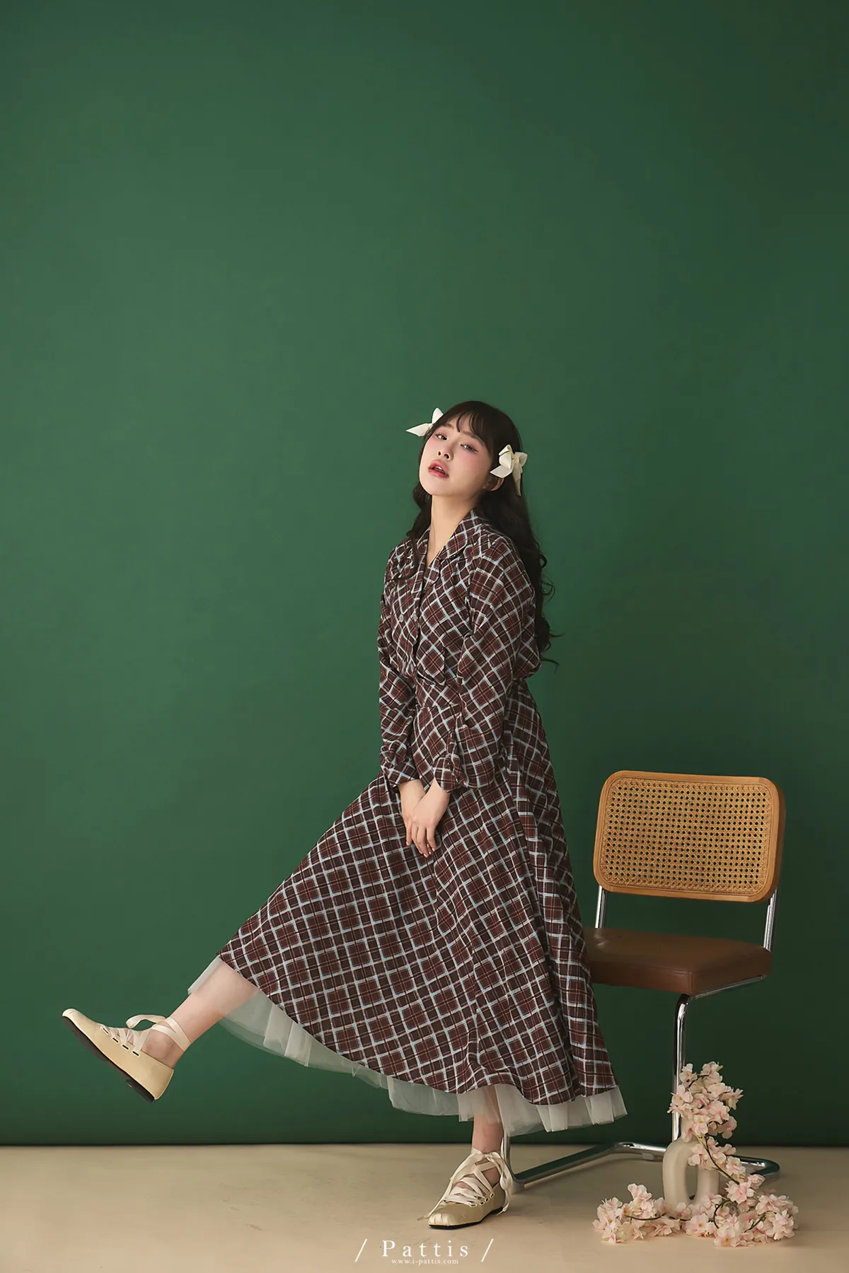 襯衫領設計讓整體輪廓更俐落,微微中和格紋的甜感,穿起來多了一份知性與成熟氛圍。
