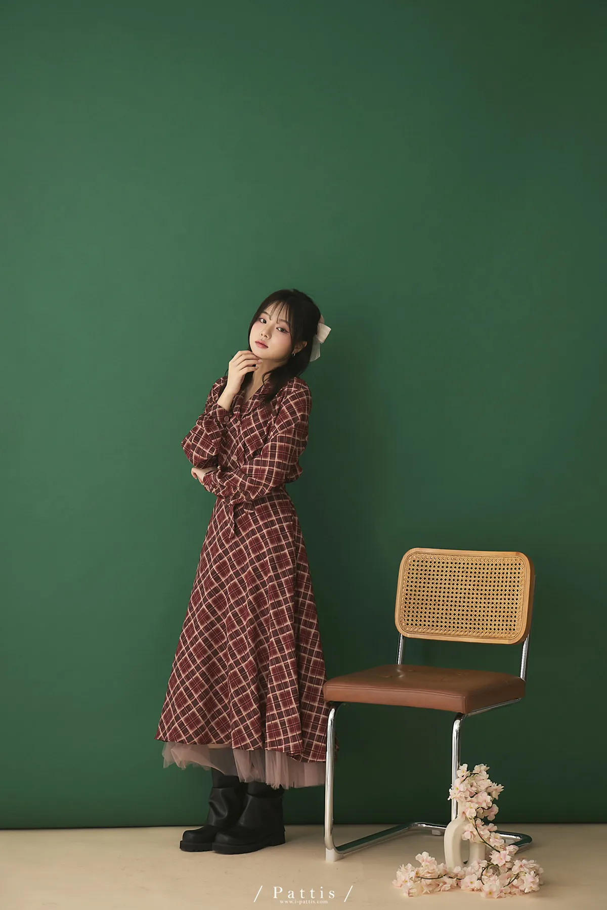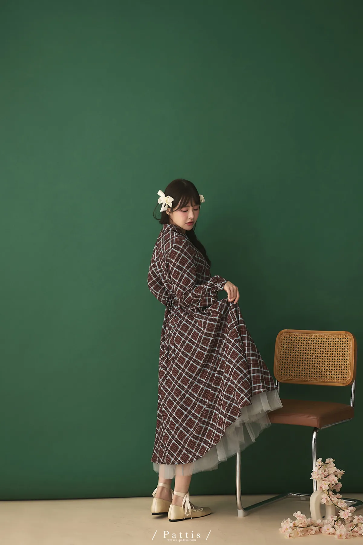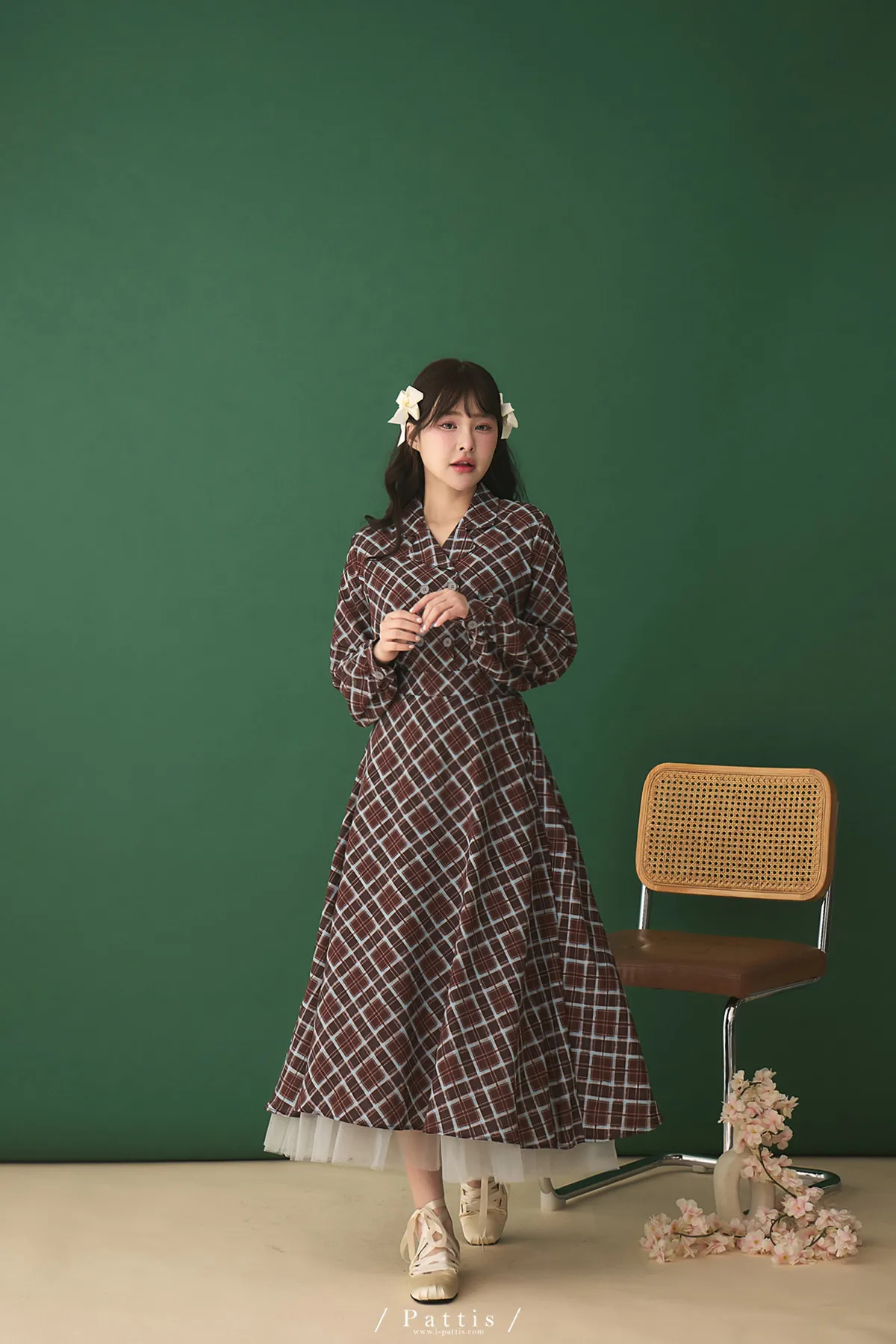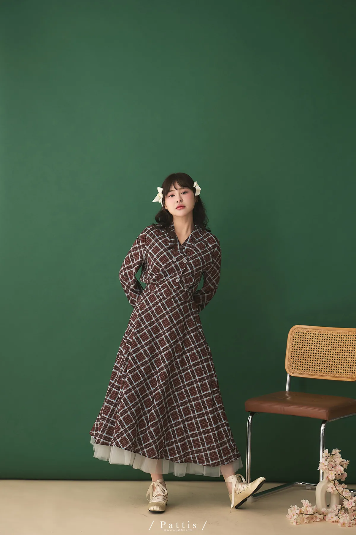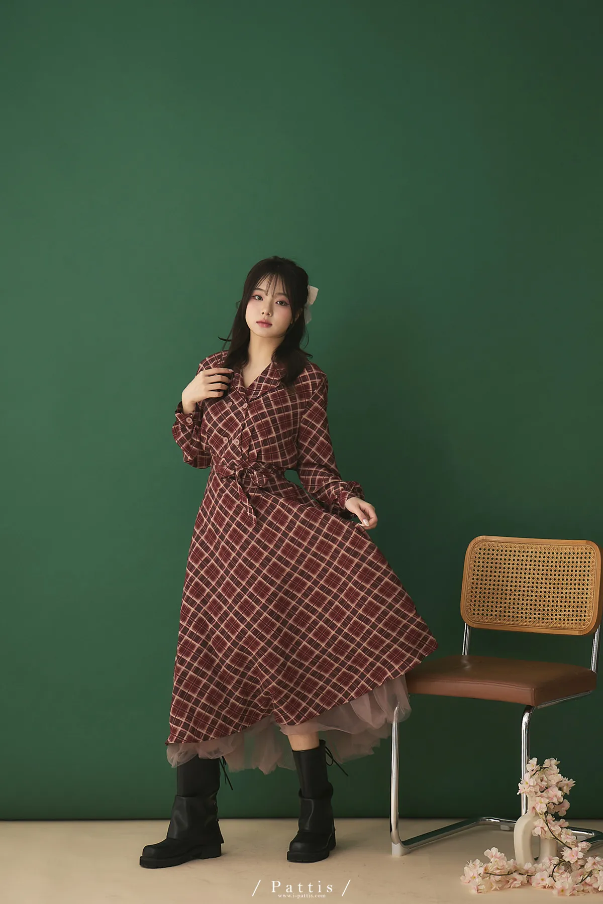 襯衫領設計讓整體輪廓更俐落,微微中和格紋的甜感,穿起來多了一份知性與成熟氛圍。