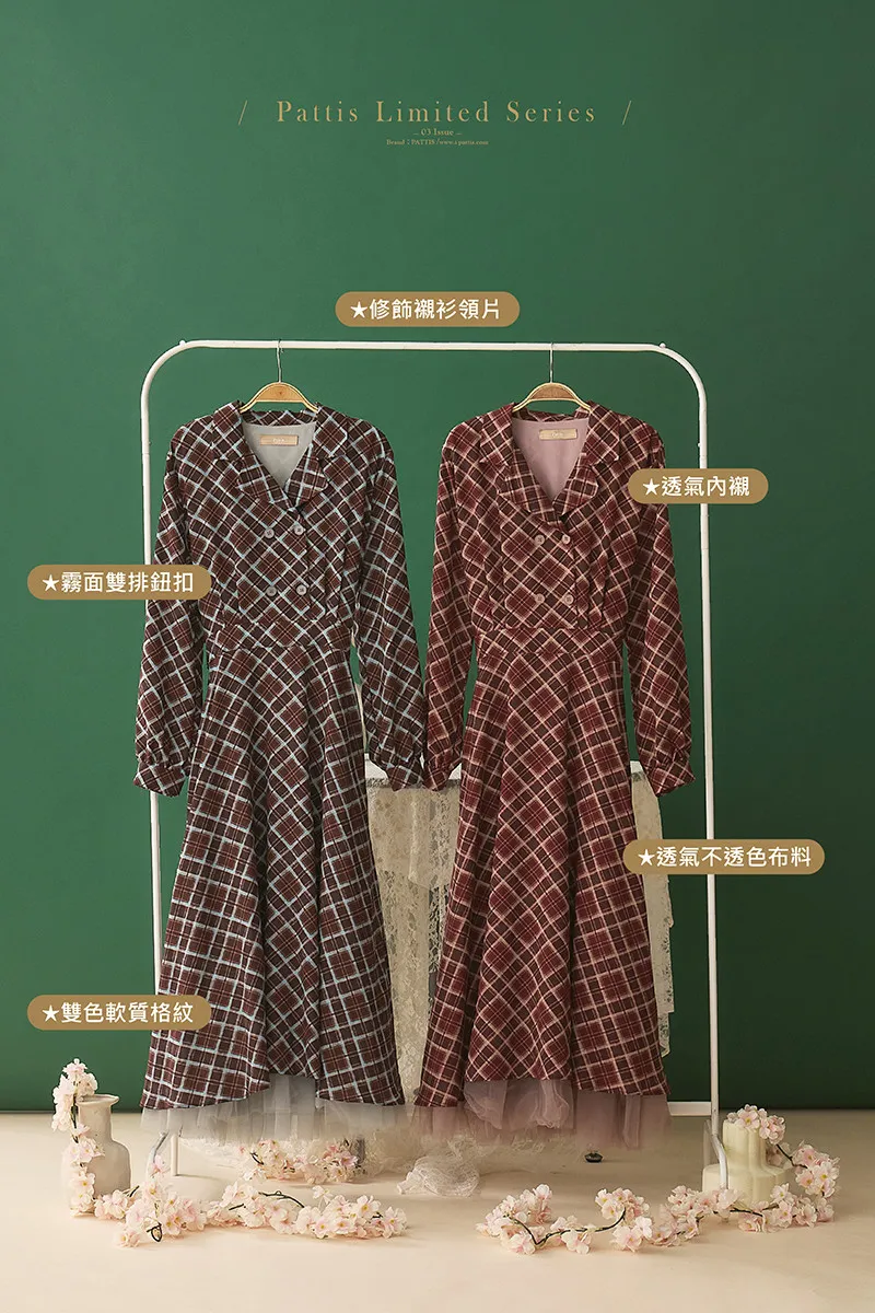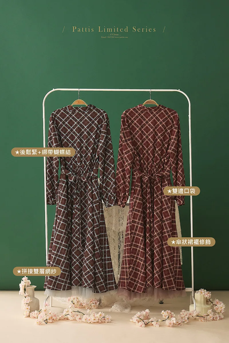 採用帶有垂墜感的格紋布料,輕薄不易起皺,行走間裙襬拼接的網紗層次飄逸感滿滿
