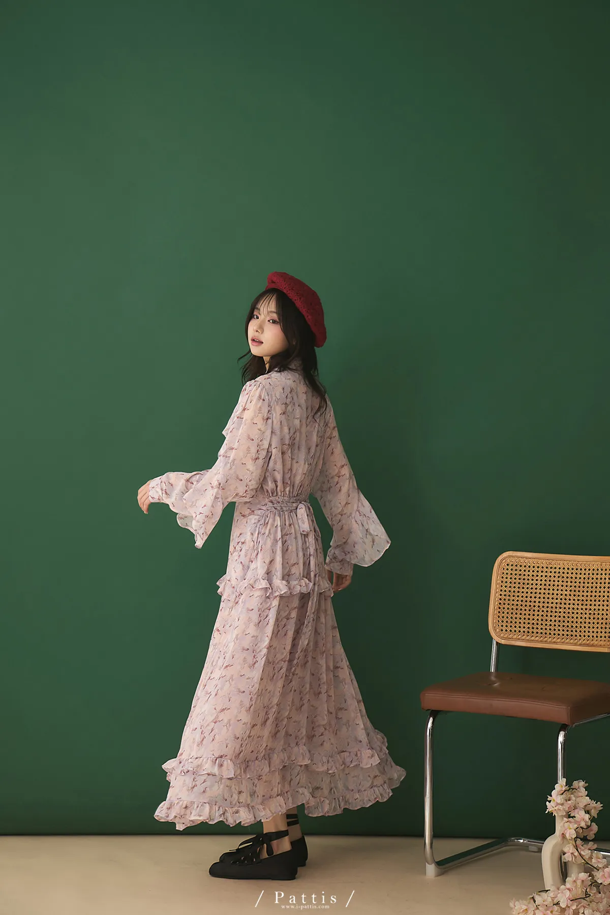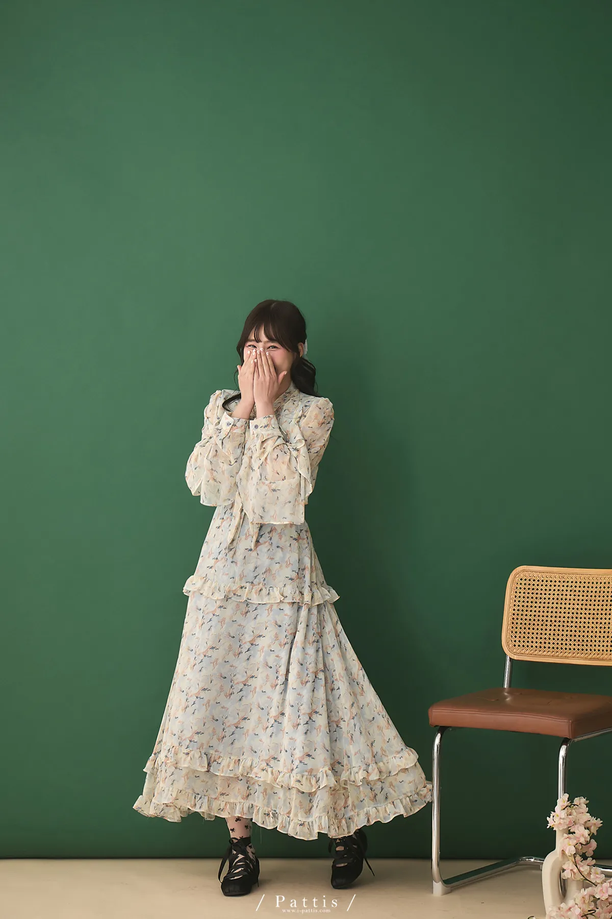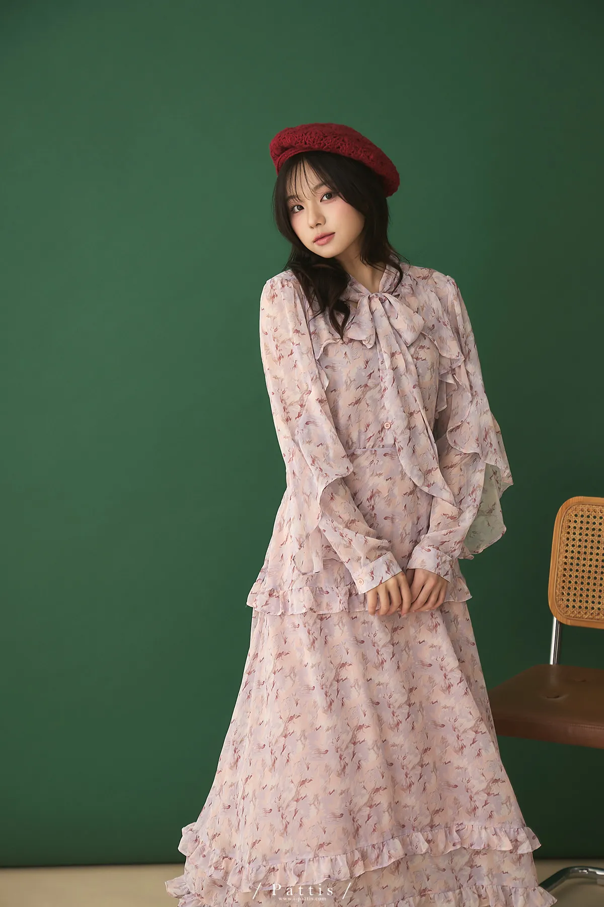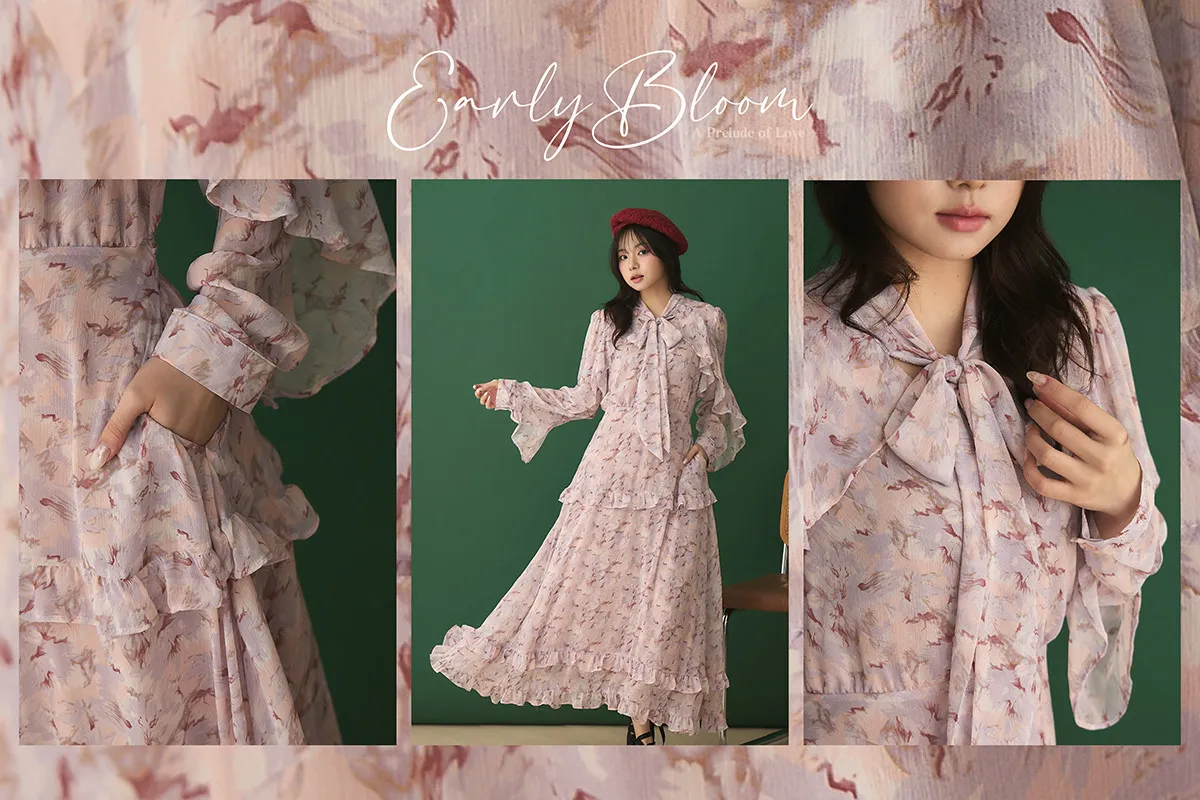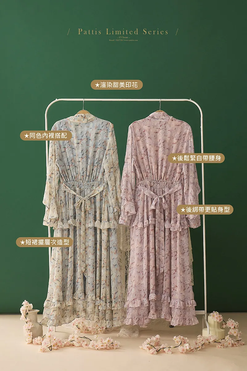 把春天最夢幻的色調帶上,添上迷濛的渲染印花,斗篷配上荷葉增加浪漫元素