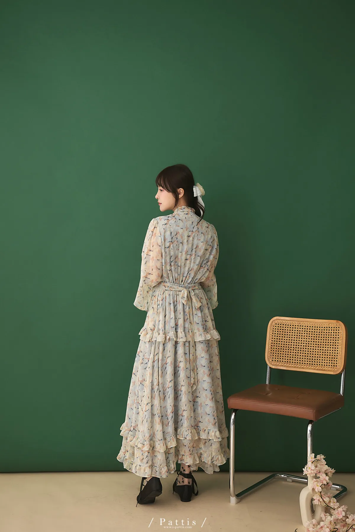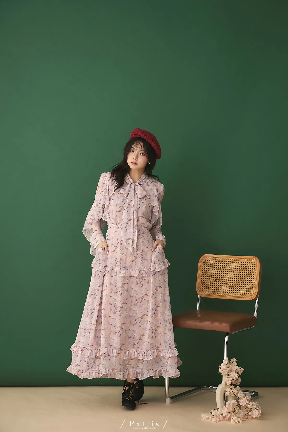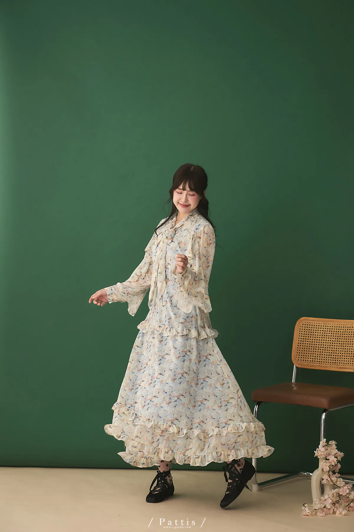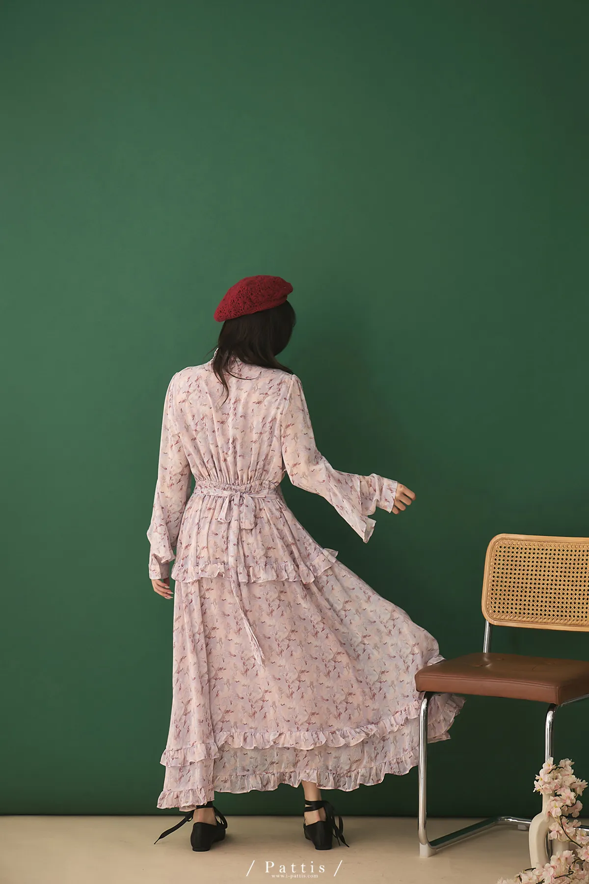 把春天最夢幻的色調帶上,添上迷濛的渲染印花,斗篷配上荷葉增加浪漫元素