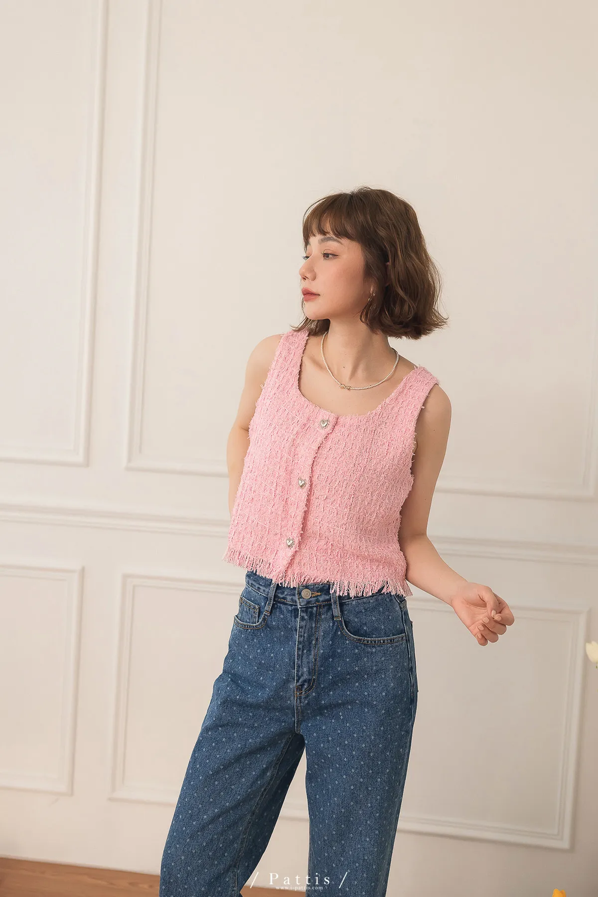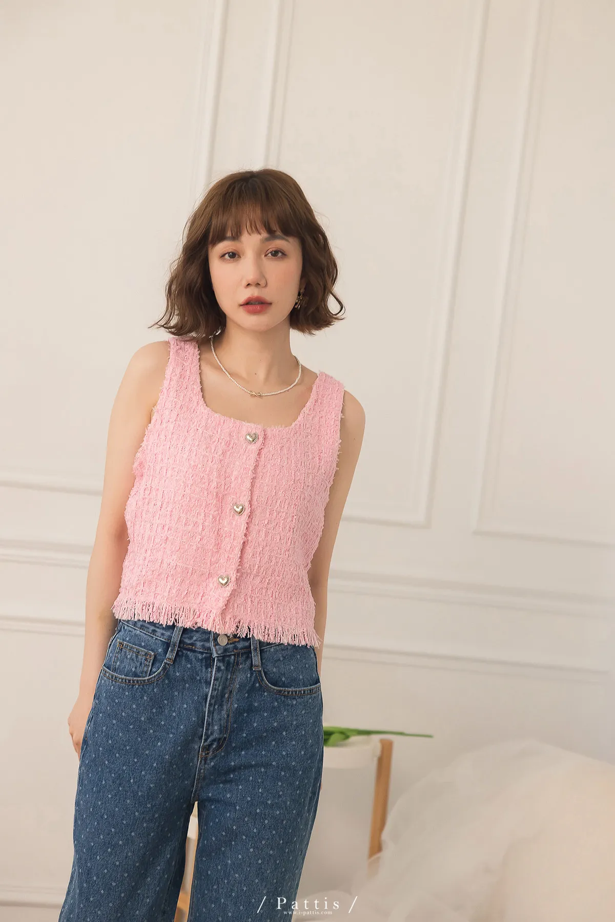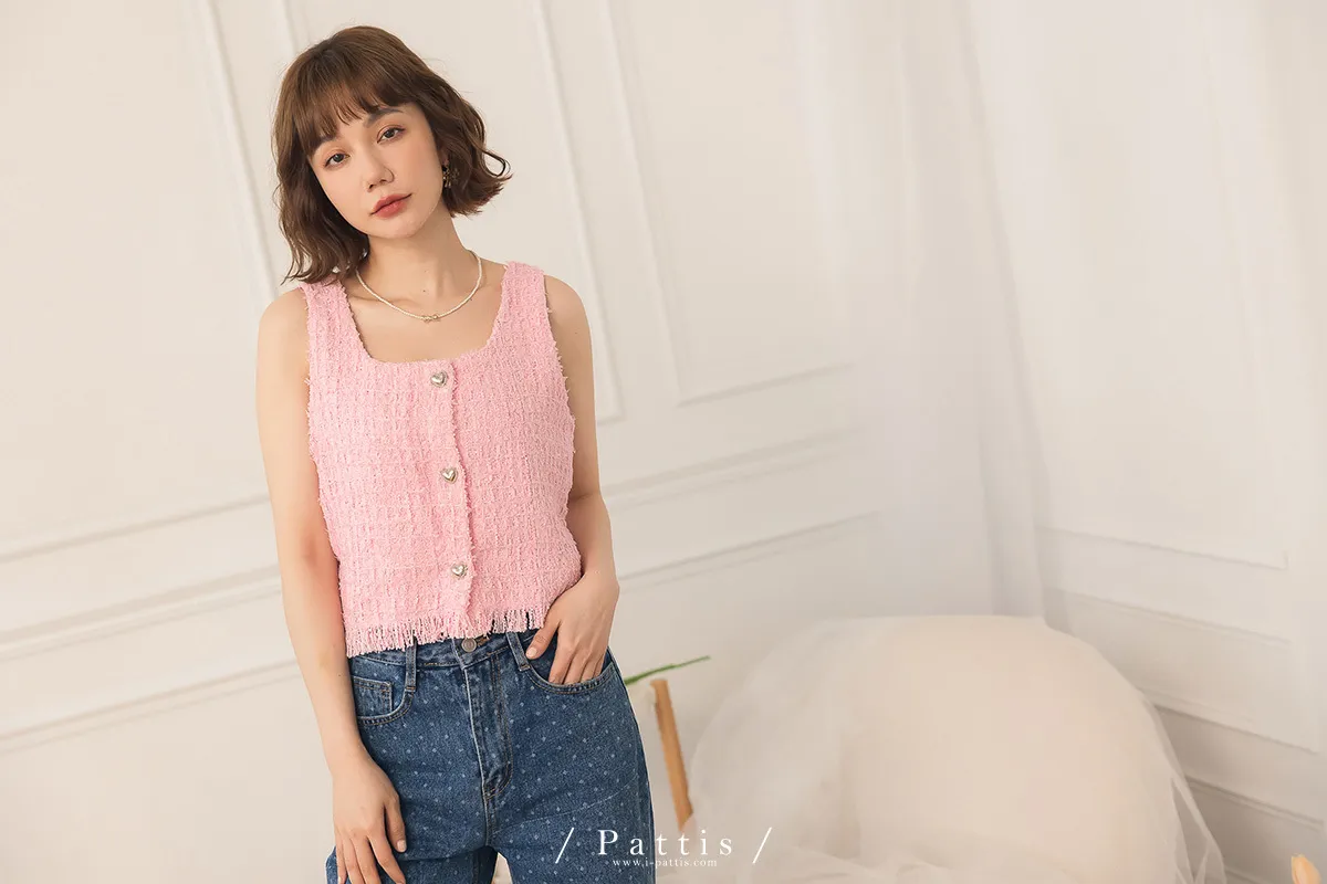 銀心戀人之吻 | 流蘇愛心釦小香風背心(粉)