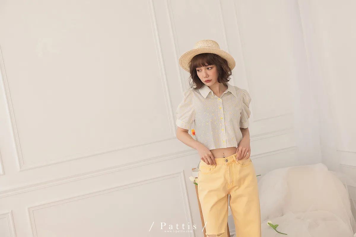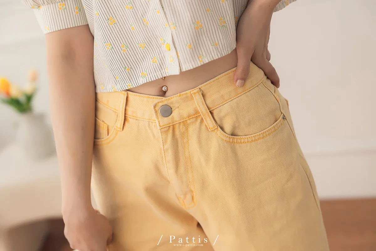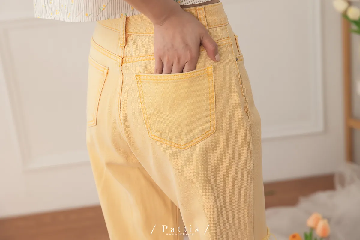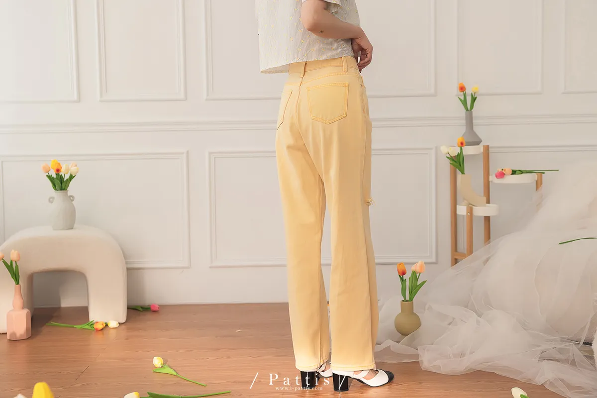 (現貨-S)午時的蠟筆色 | 割線破洞彩色直筒褲(黃)