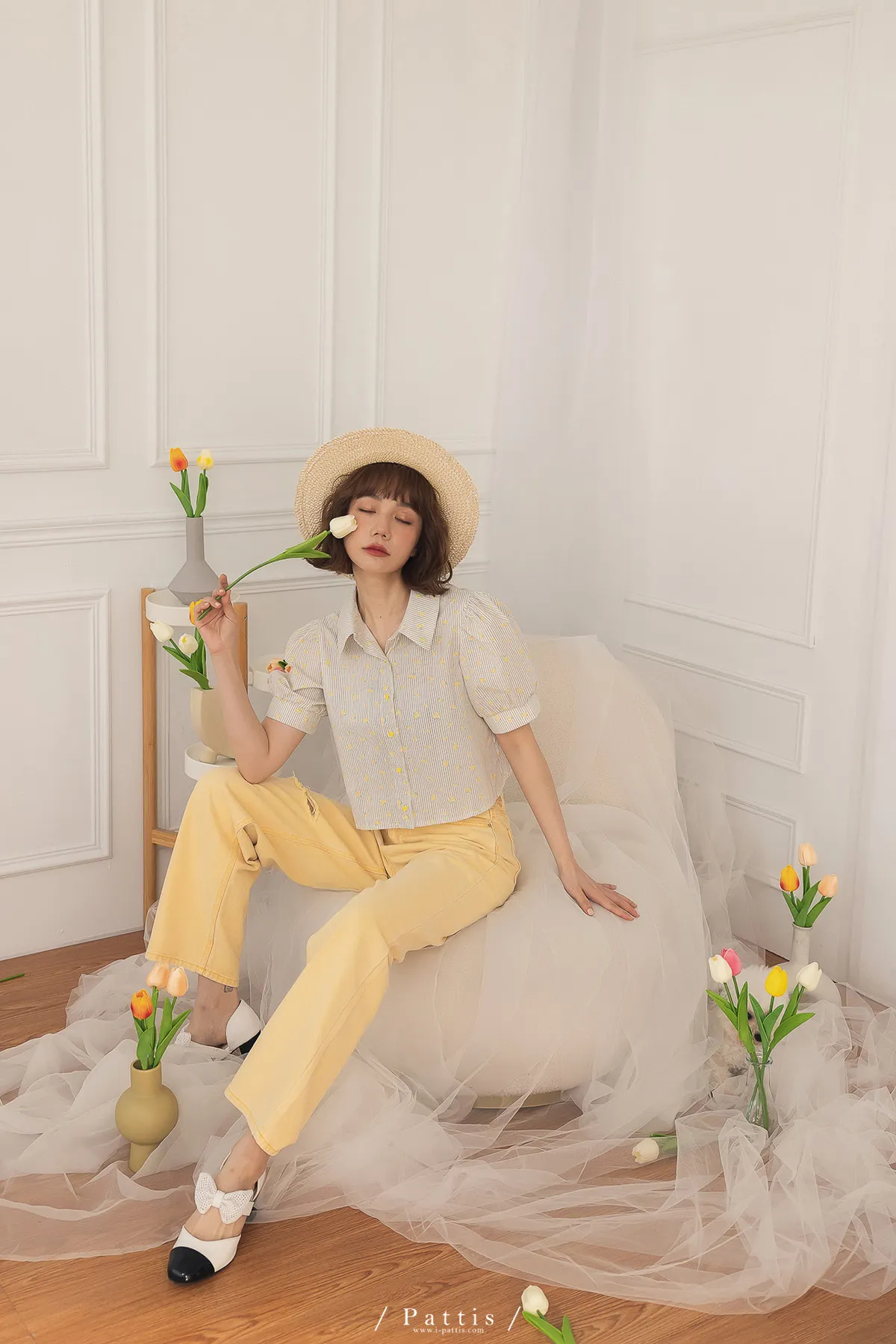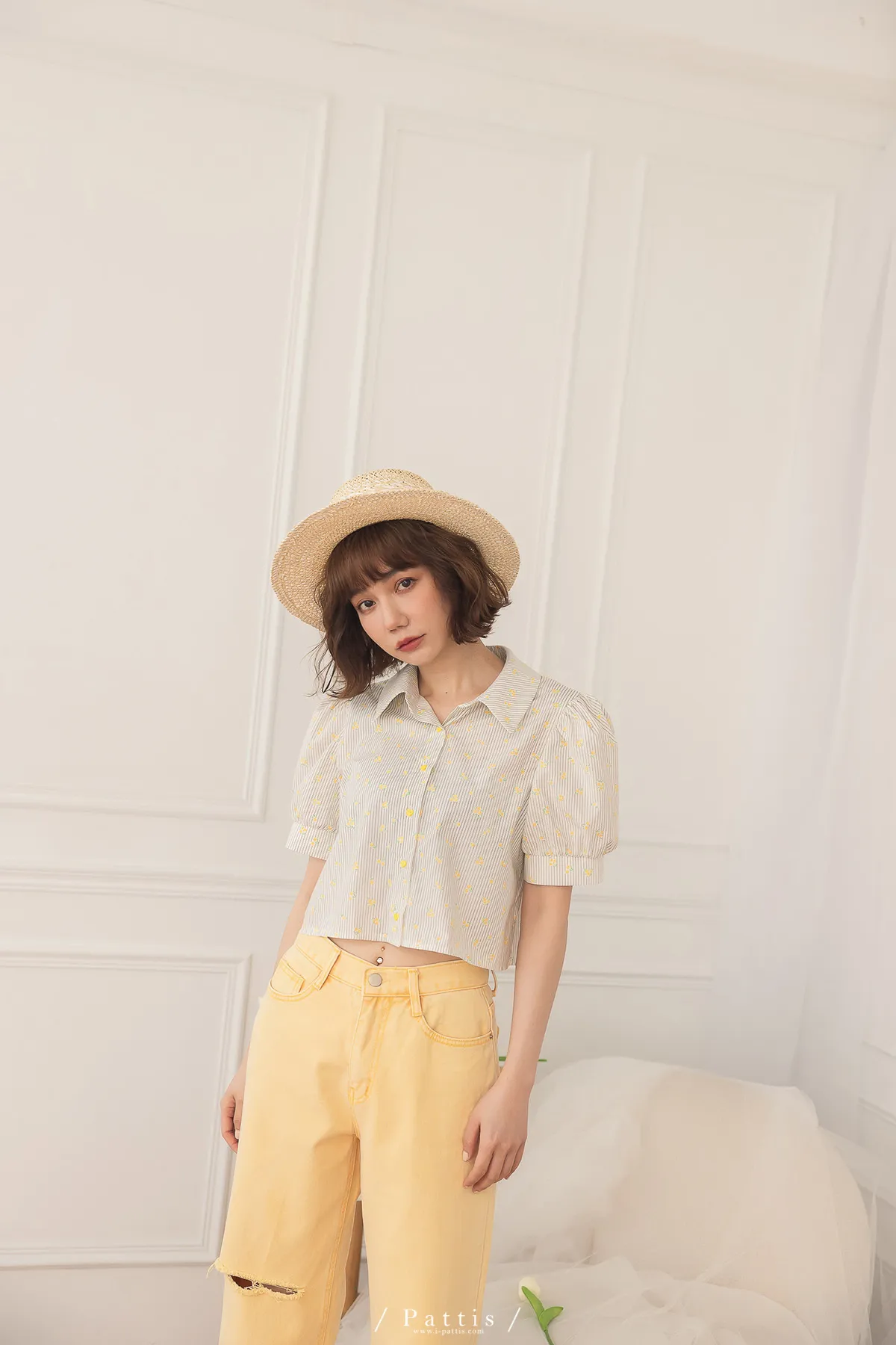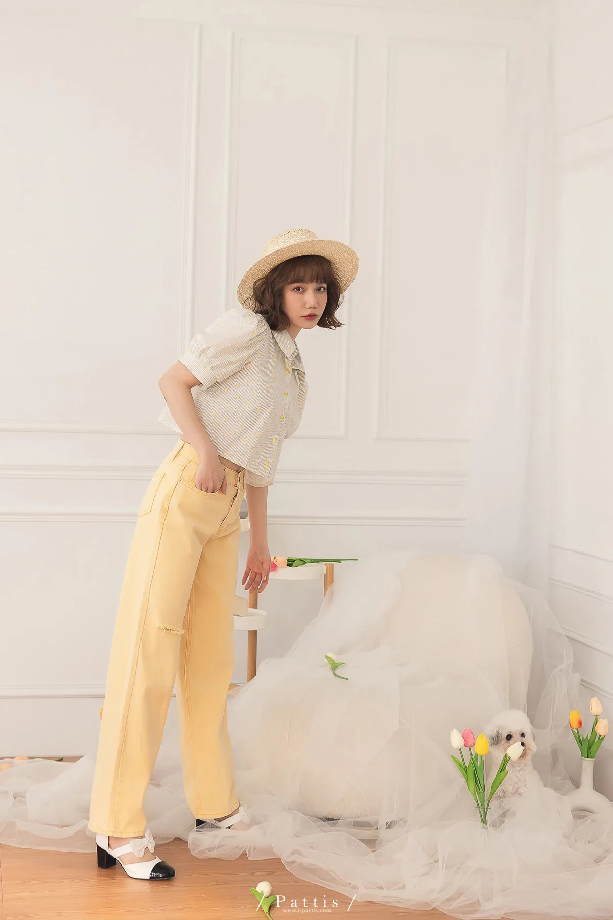 (現貨-S)午時的蠟筆色 | 割線破洞彩色直筒褲(黃)