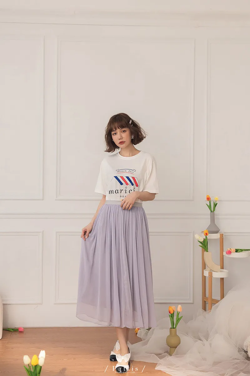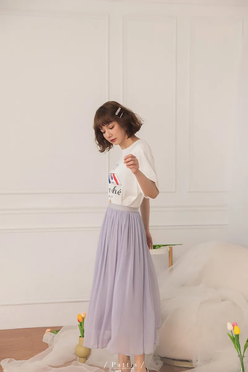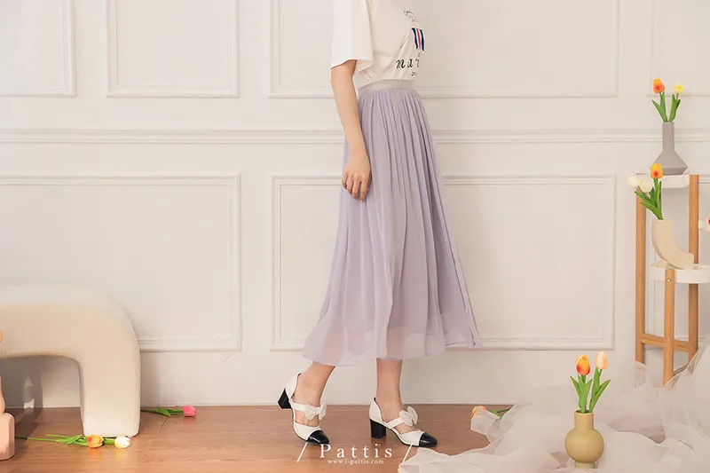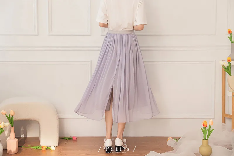/ NG品 原價$890 / 曖昧煙霧彈 | 後開叉紋路感雪紡長裙(淺紫)