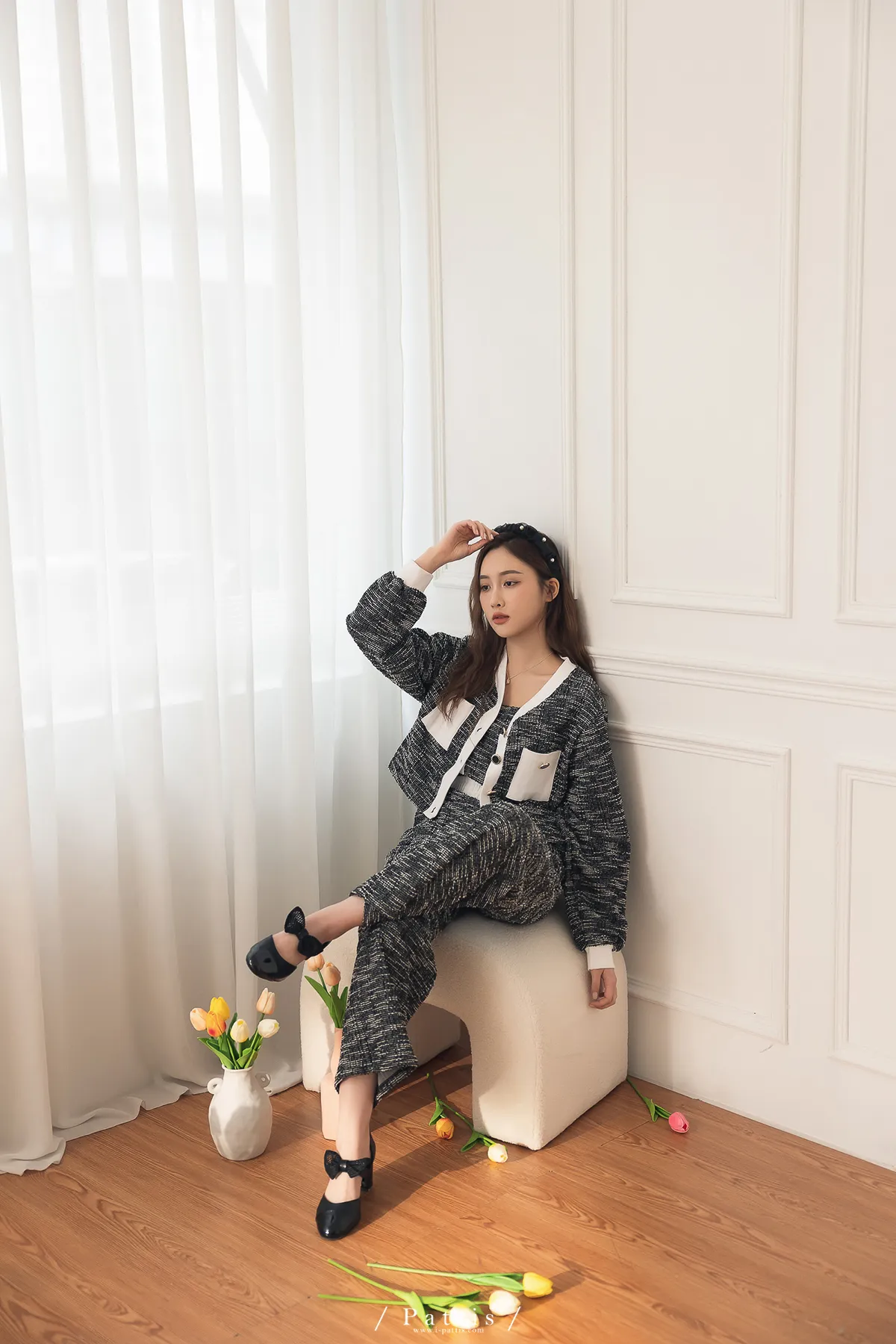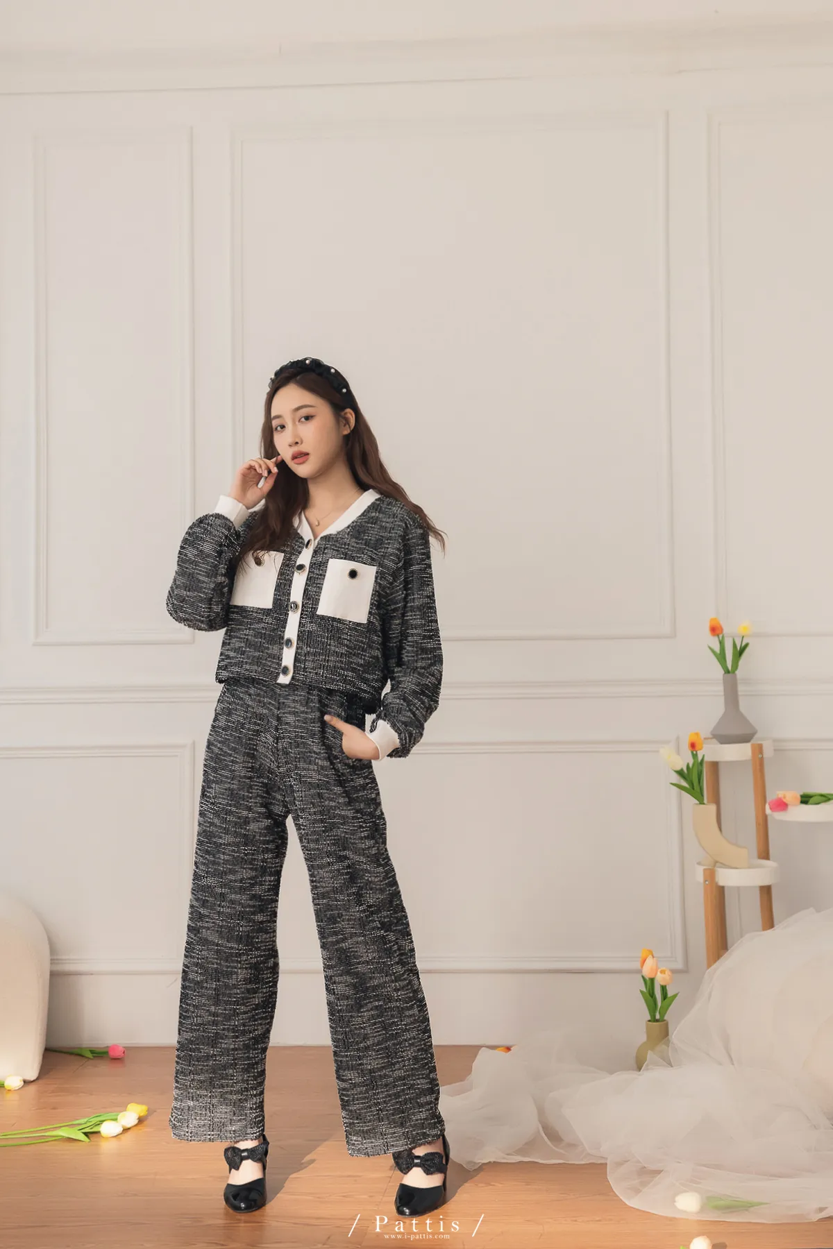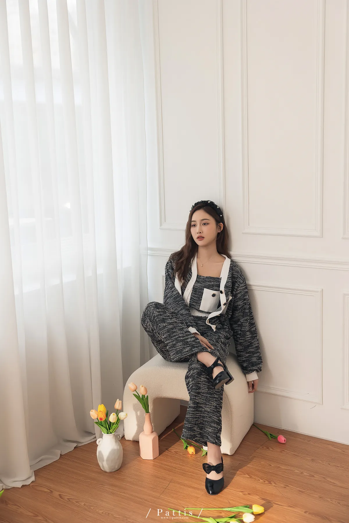 31號的告白信 | 小香風口袋背心+外套+寬褲set(黑)