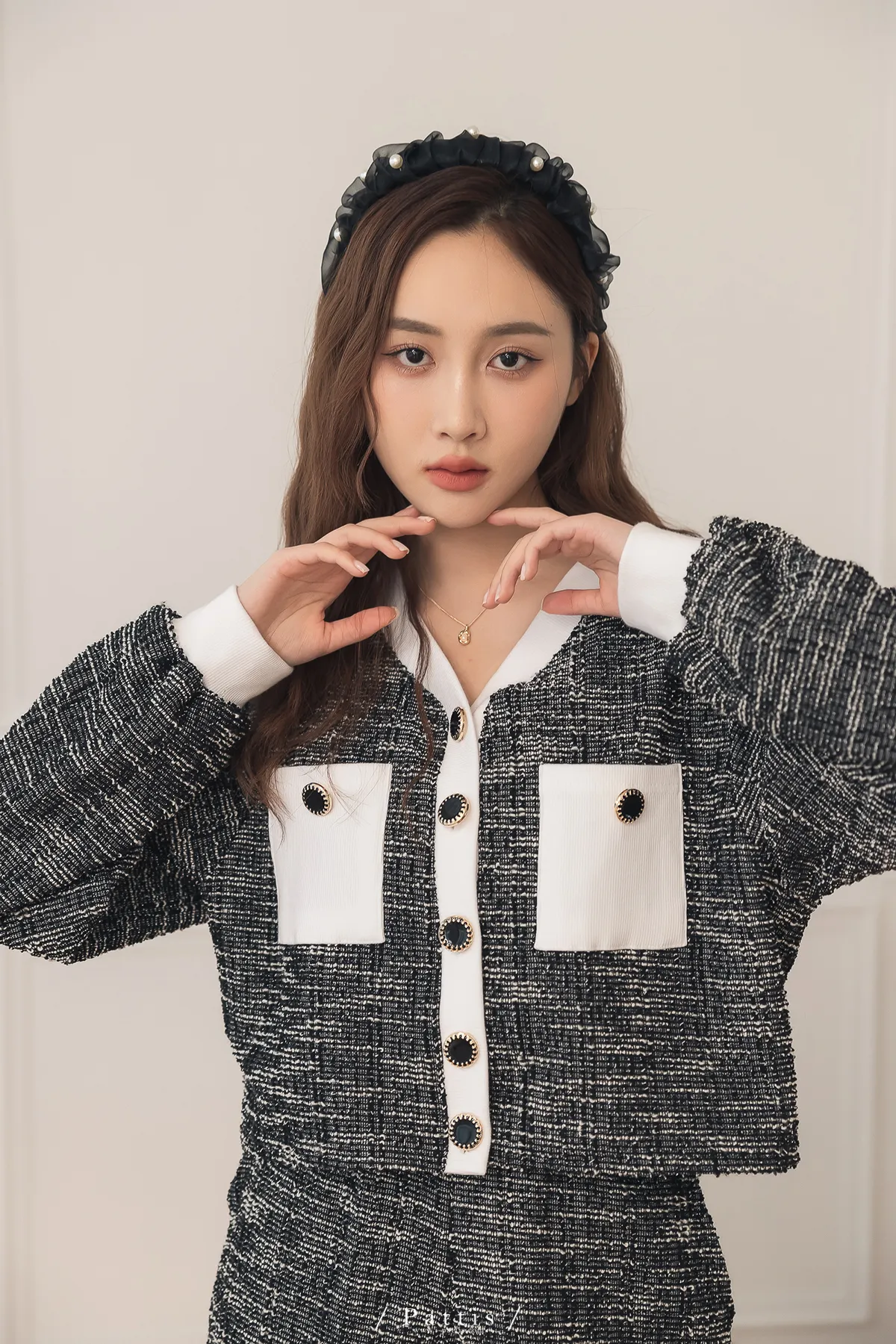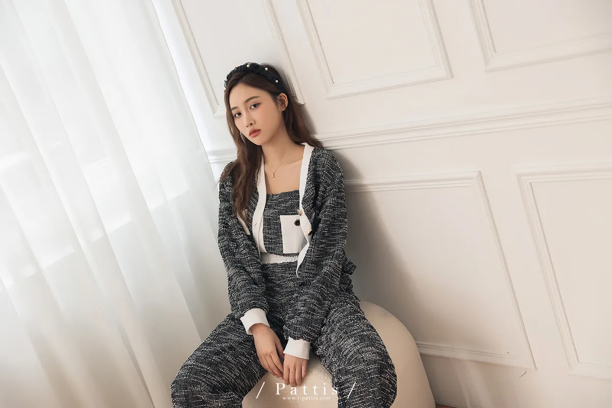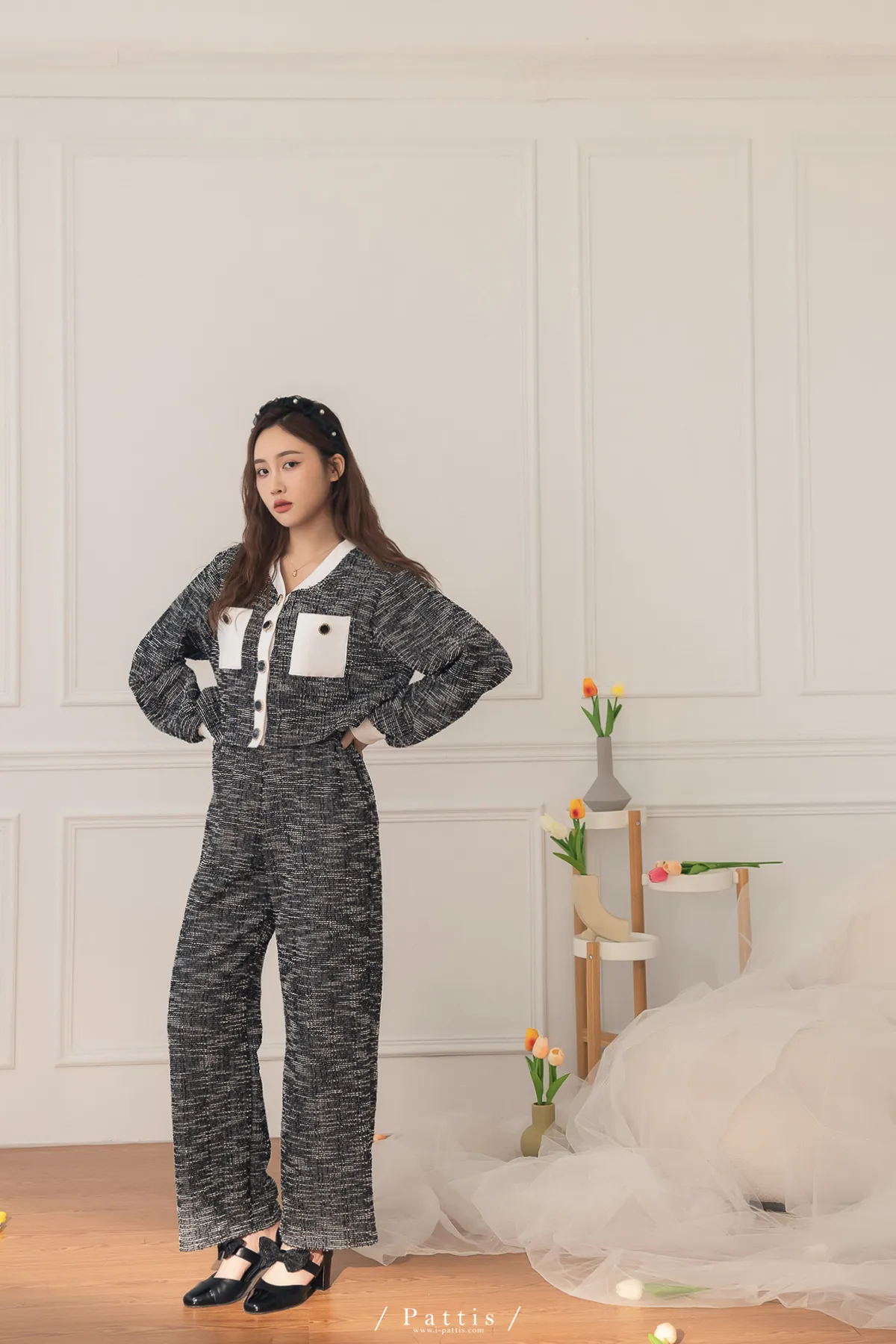 31號的告白信 | 小香風口袋背心+外套+寬褲set(黑)