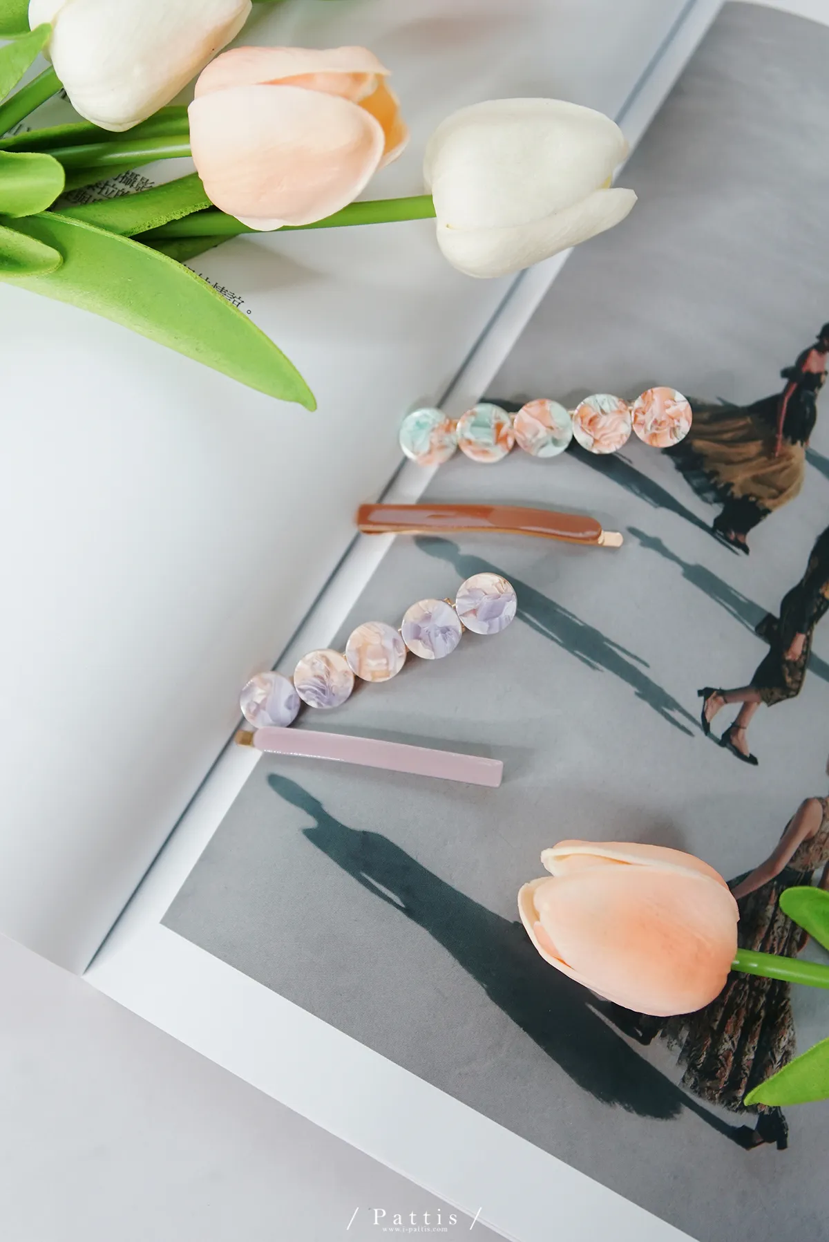 大理石圈圈髮夾set組(橘棕/粉紫)