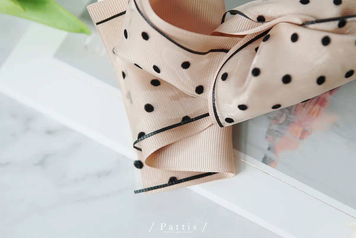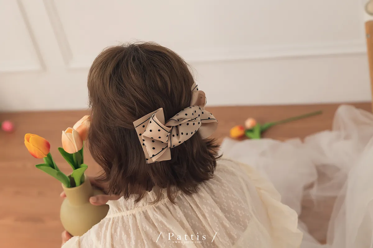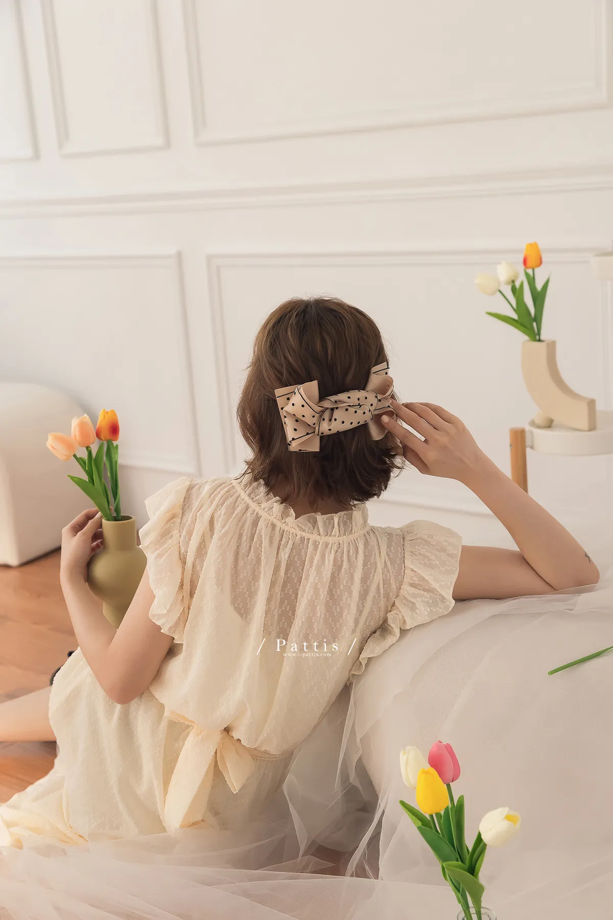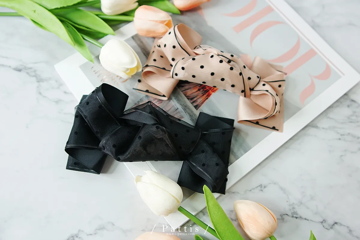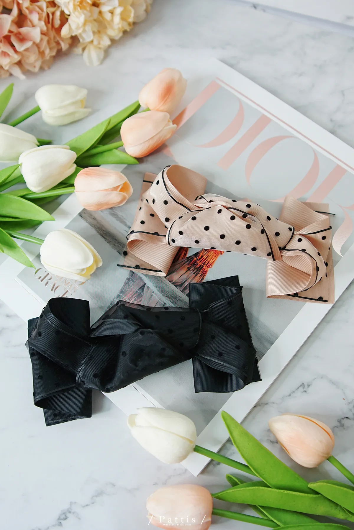 點點立體翻摺大蝴蝶結髮夾(米杏/黑)
