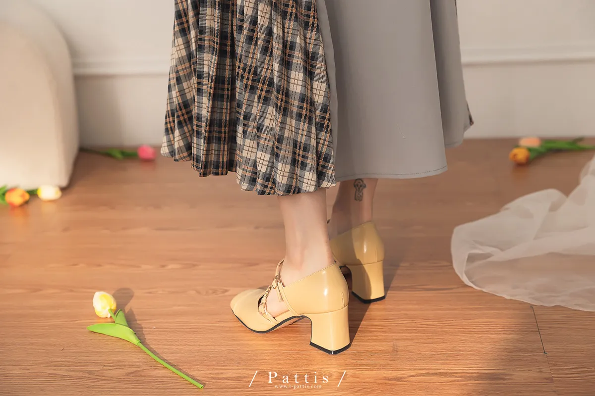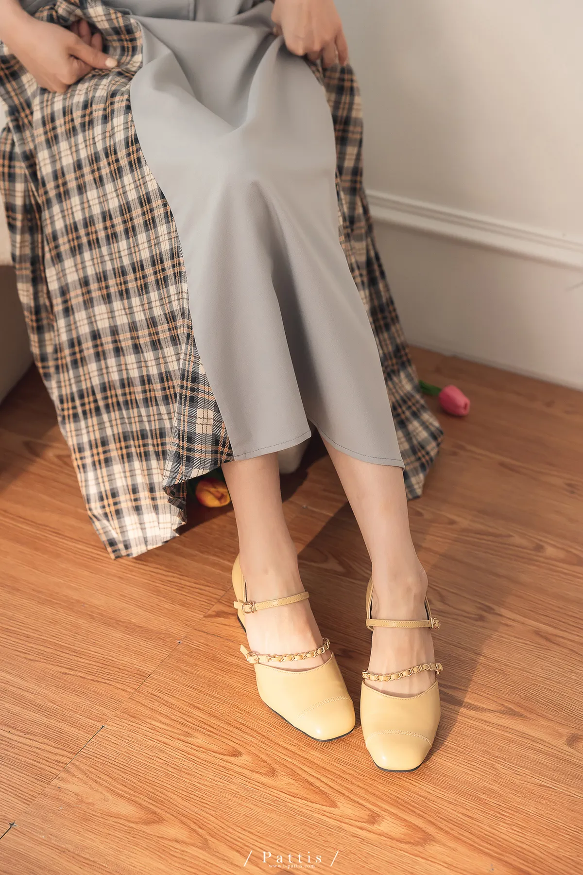 (現貨-栗黃23.5)完美淑女守則 | 皮穿鍊繫帶圓頭跟鞋(米白/栗黃/黑)