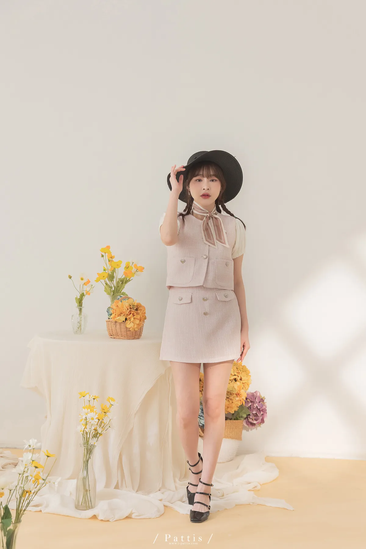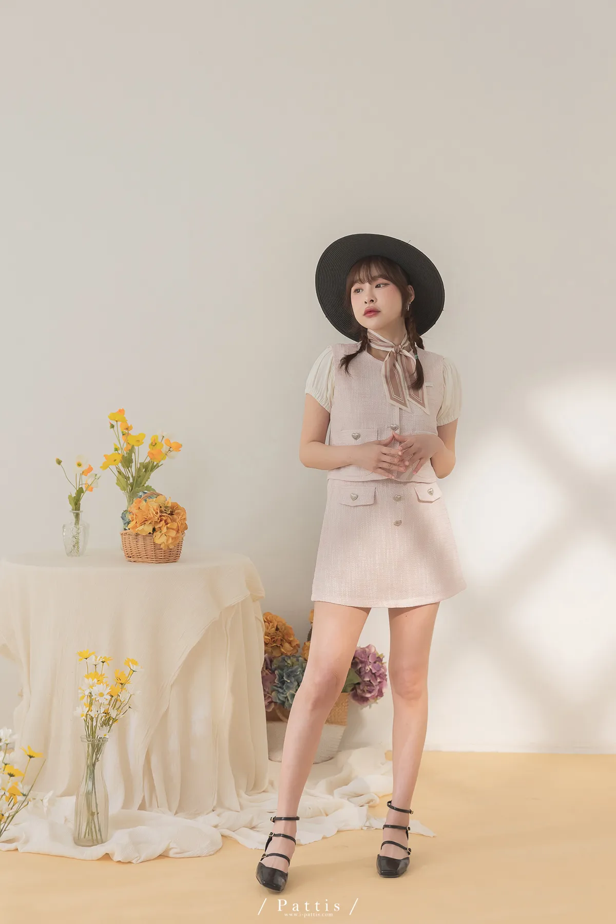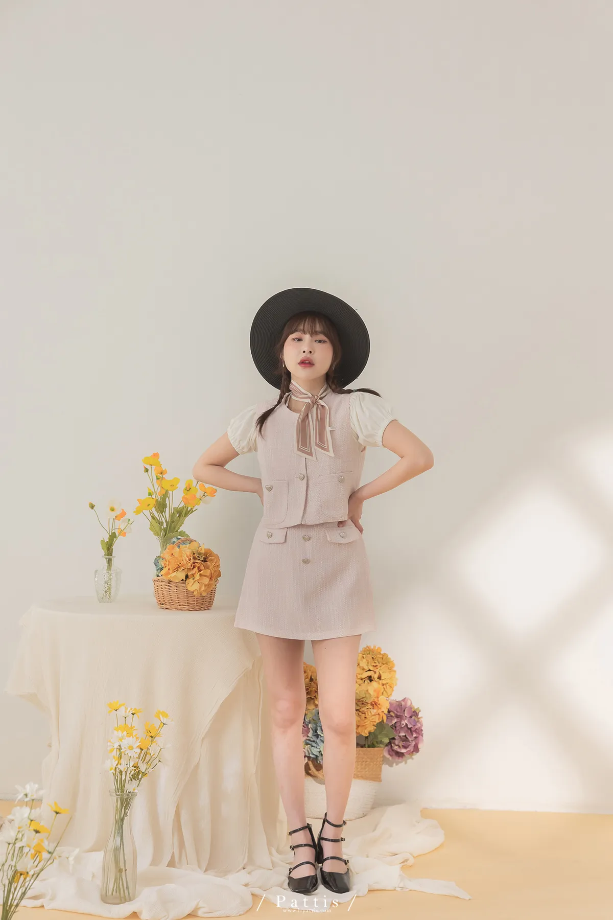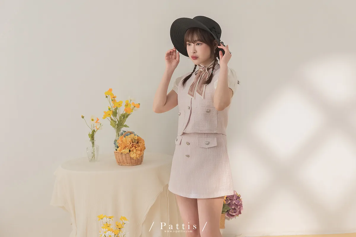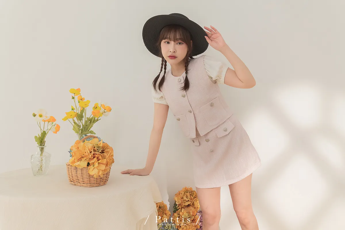 大人味糖果盒 | 銀色愛心釦小香風口袋背心+短褲裙set(粉)