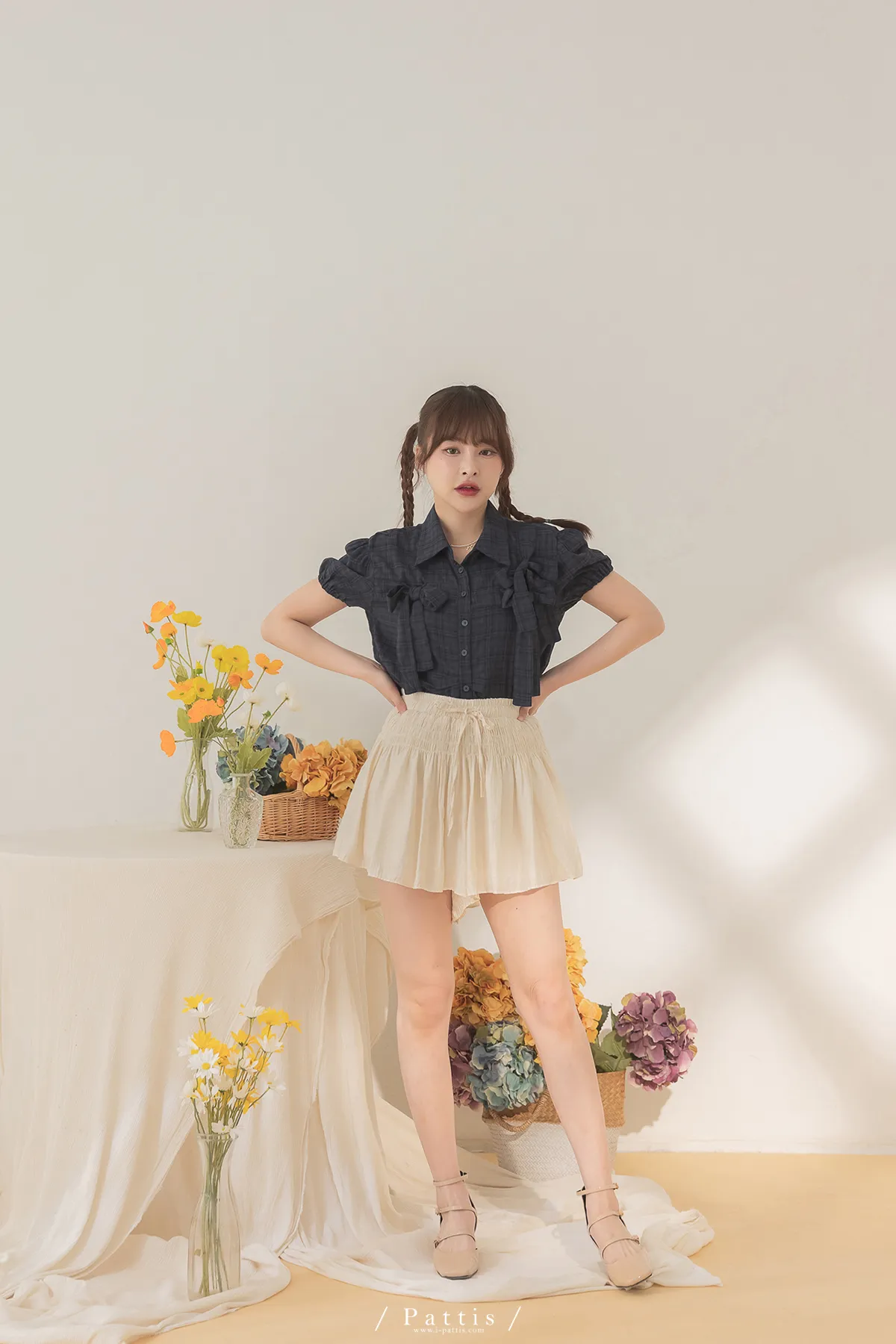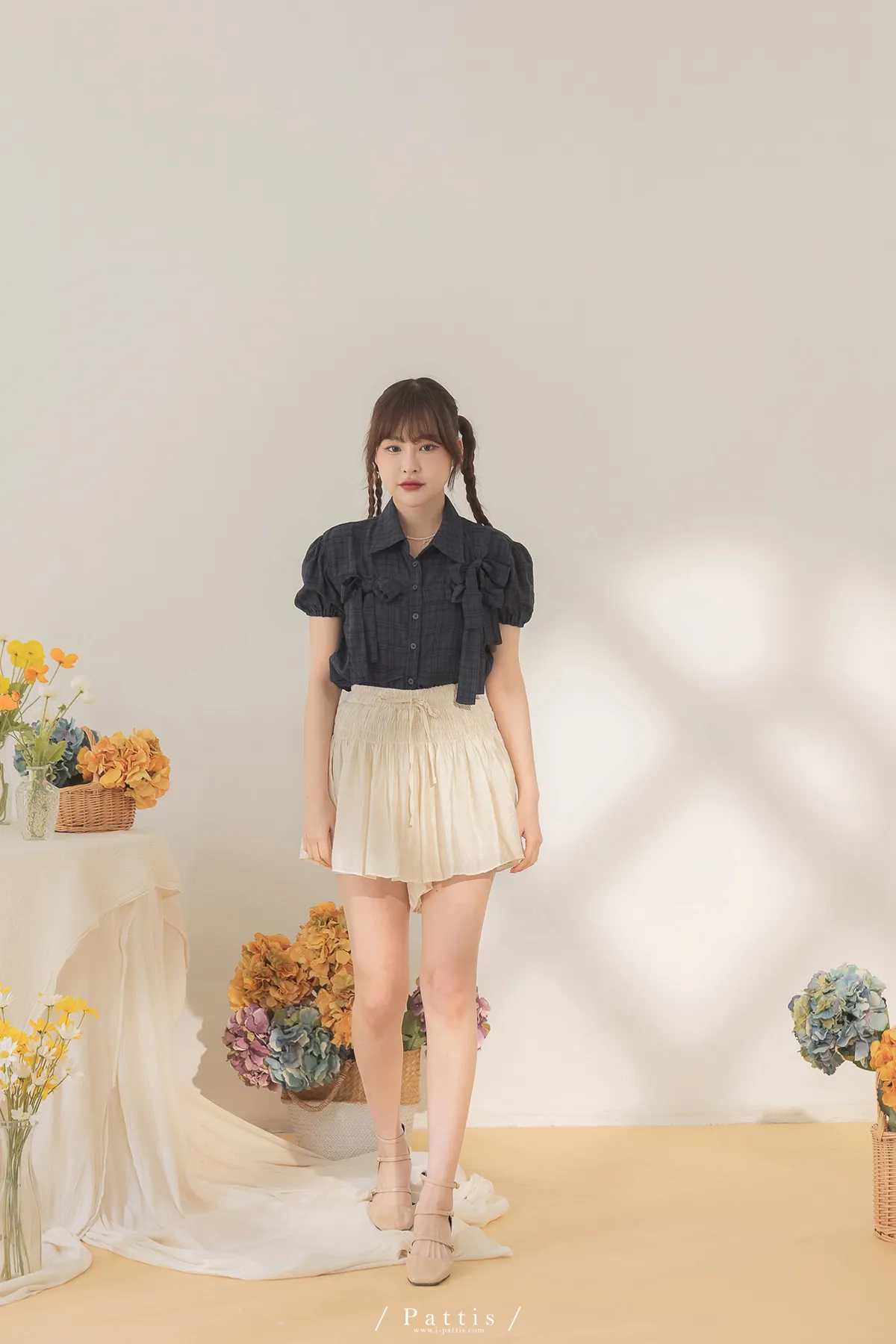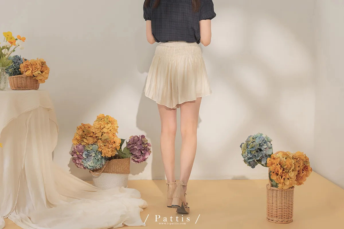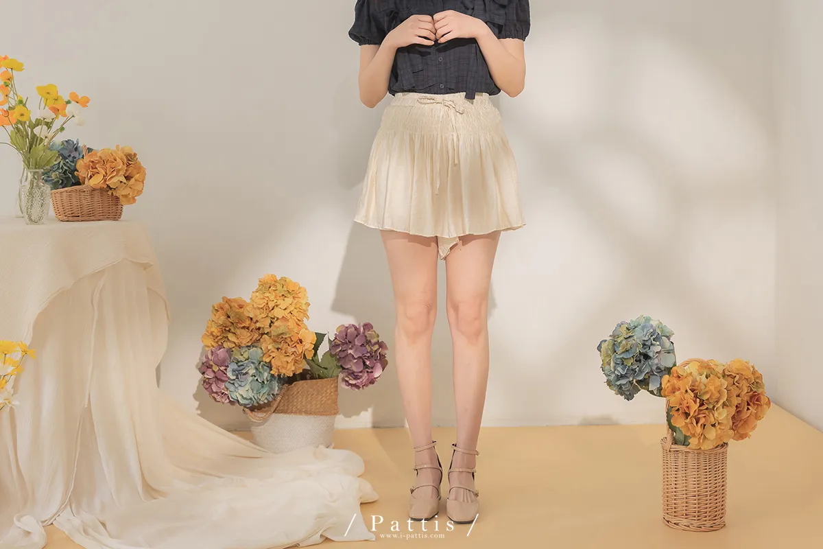 喬治亞的小鄰居 | 皺褶綁帶寬口短褲裙(米杏)
