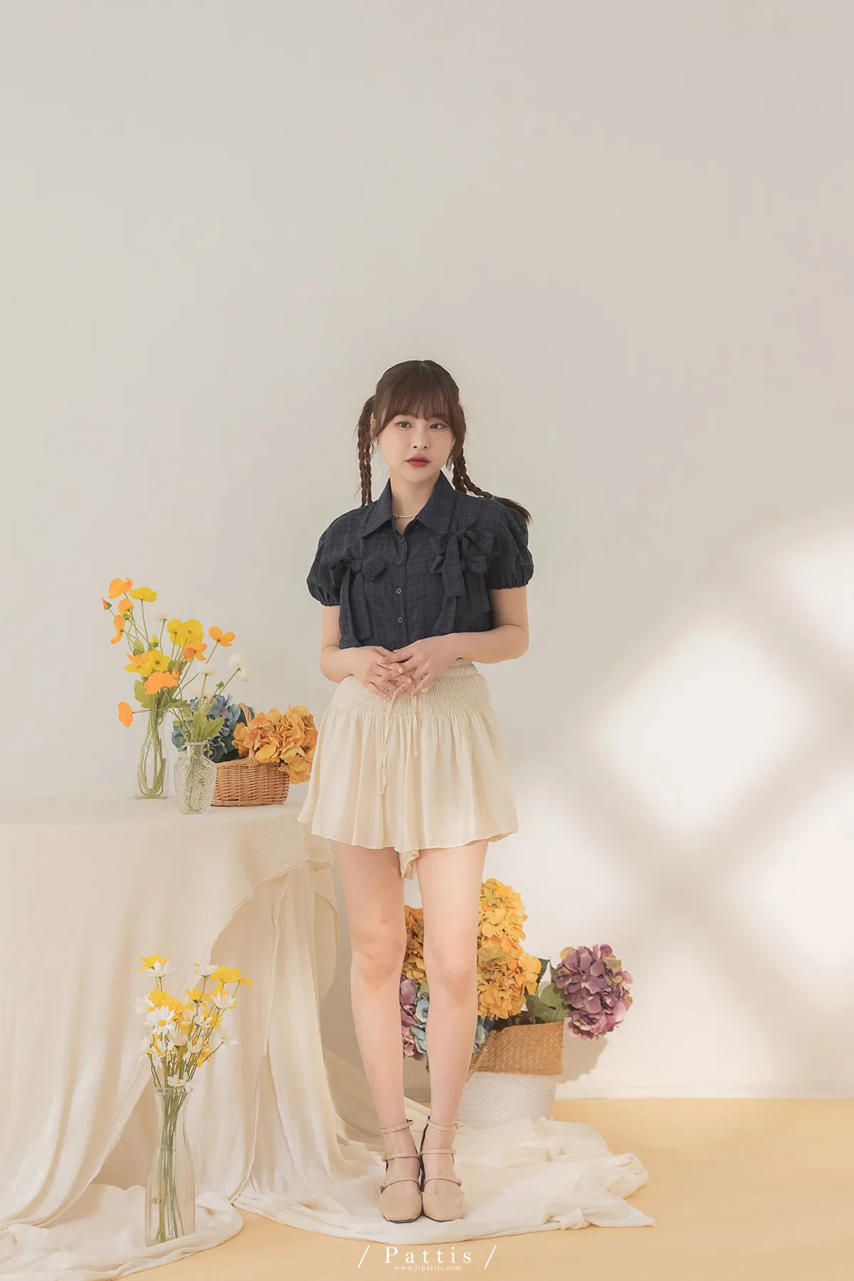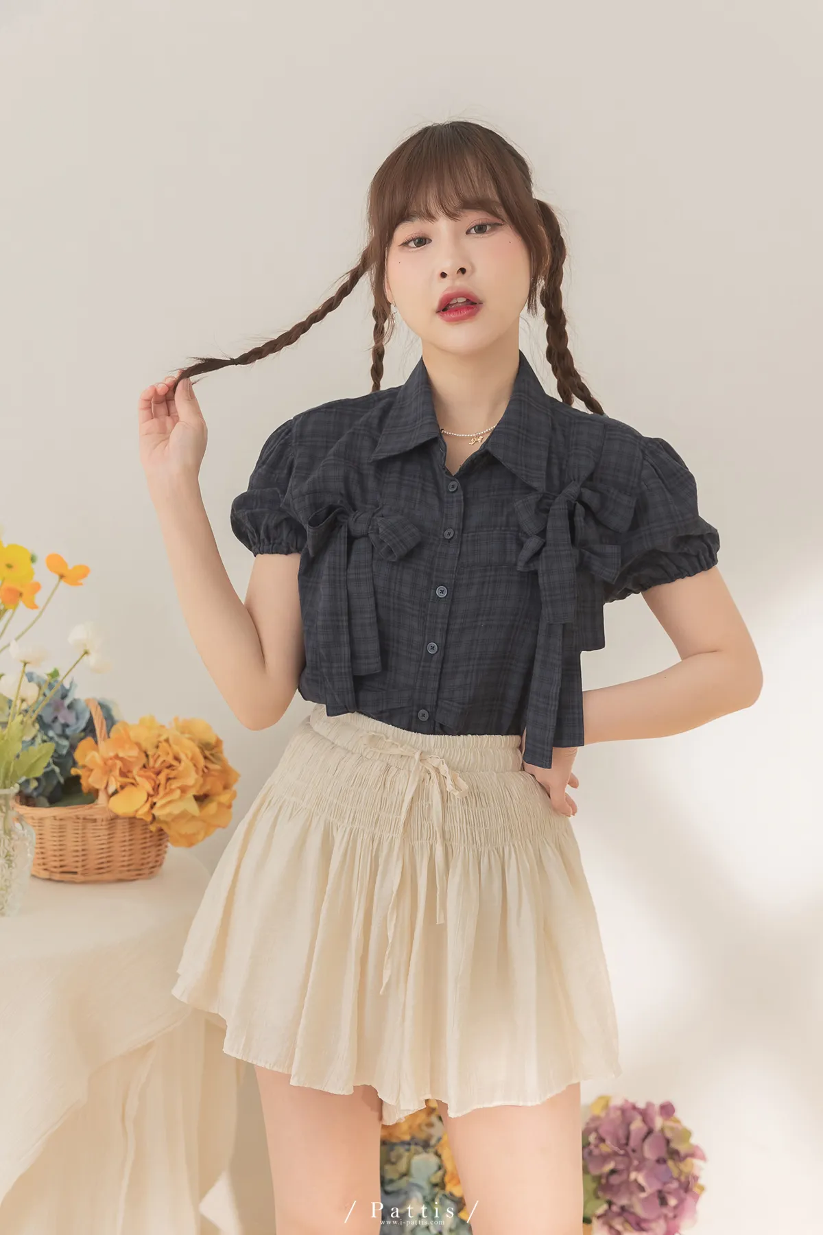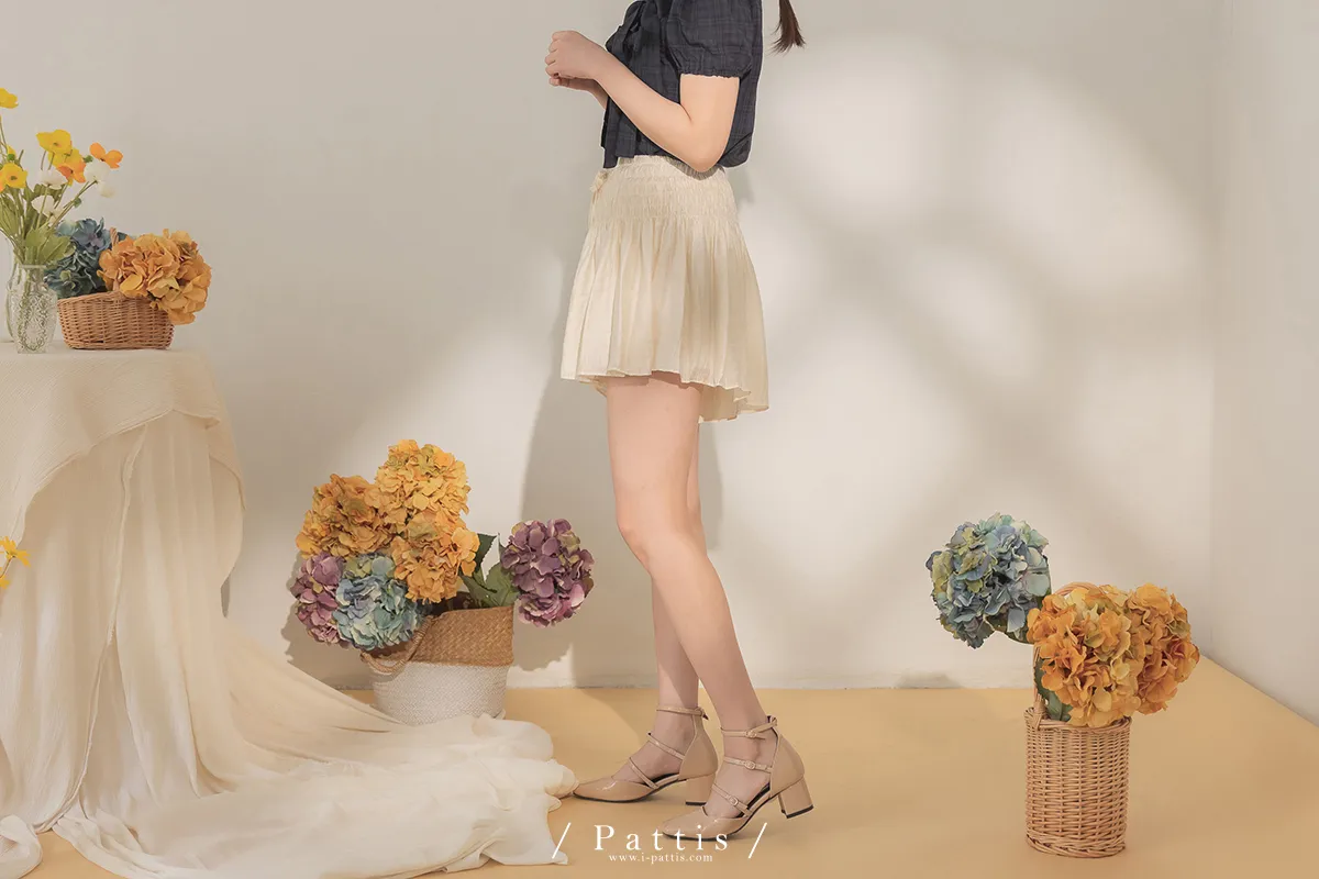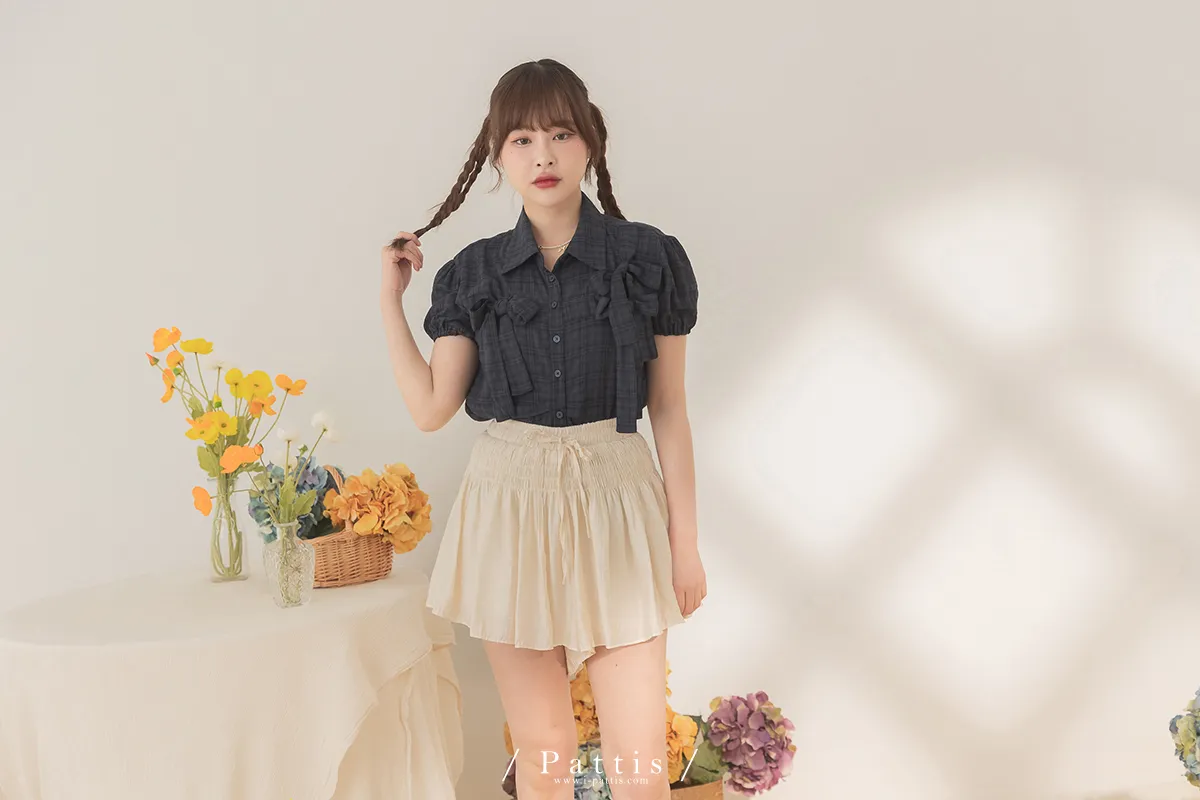 喬治亞的小鄰居 | 皺褶綁帶寬口短褲裙(米杏)