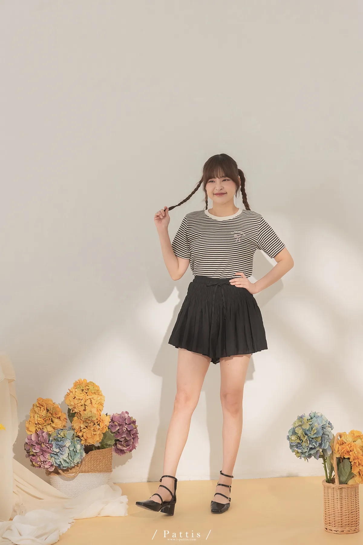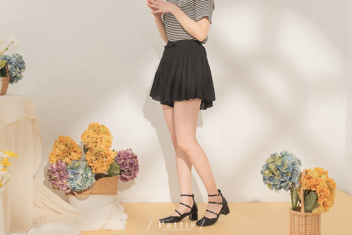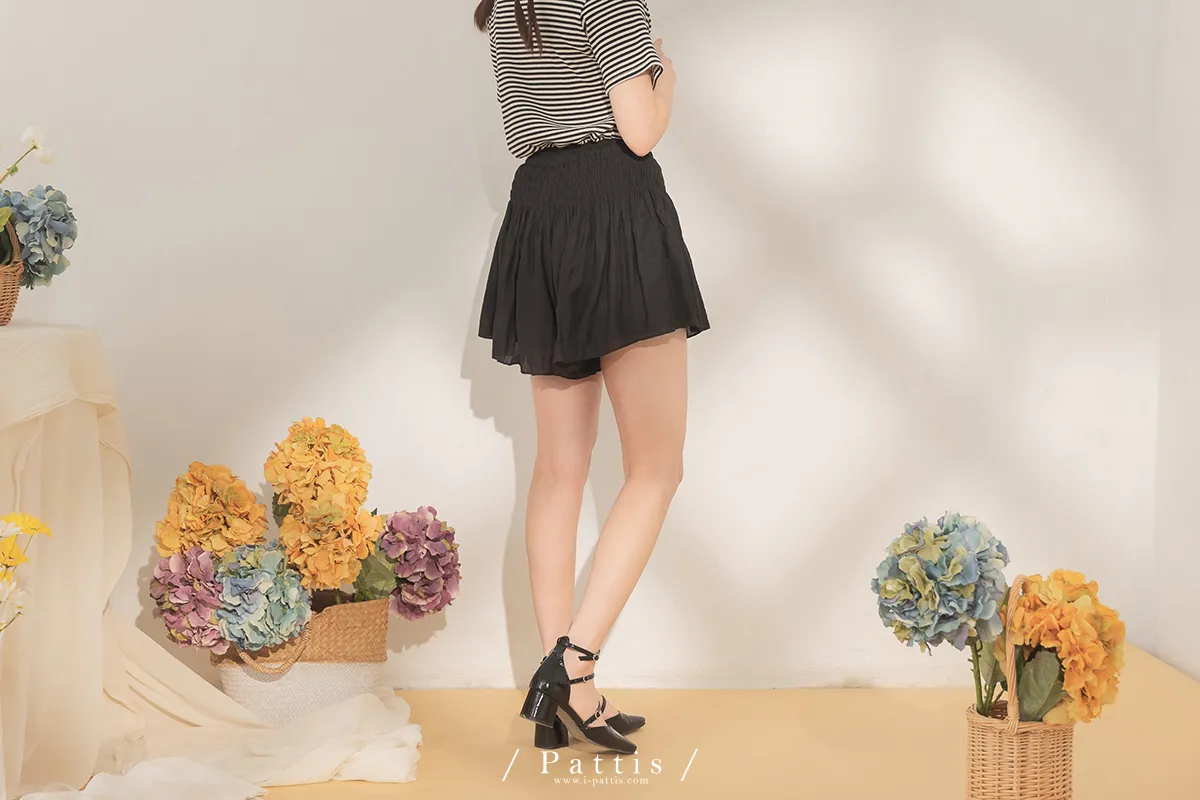 喬治亞的小鄰居 | 皺褶綁帶寬口短褲裙(黑)