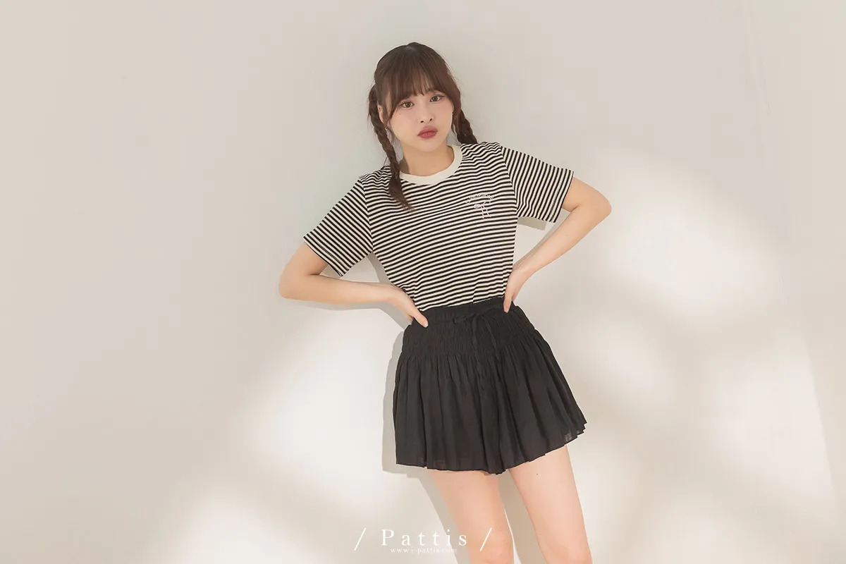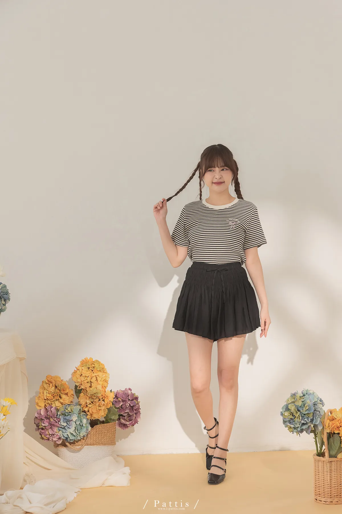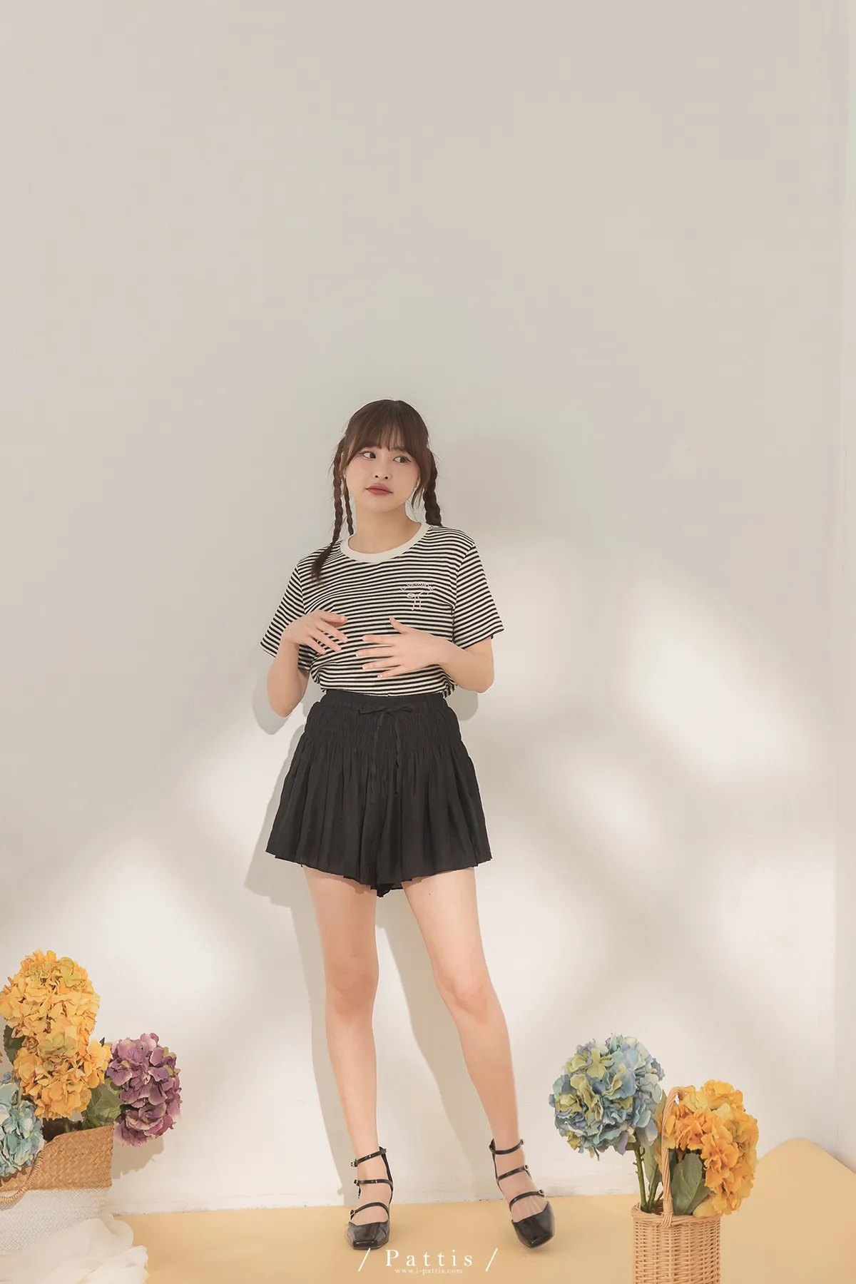 喬治亞的小鄰居 | 皺褶綁帶寬口短褲裙(黑)