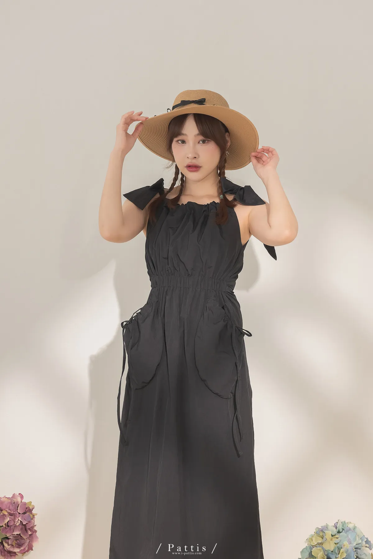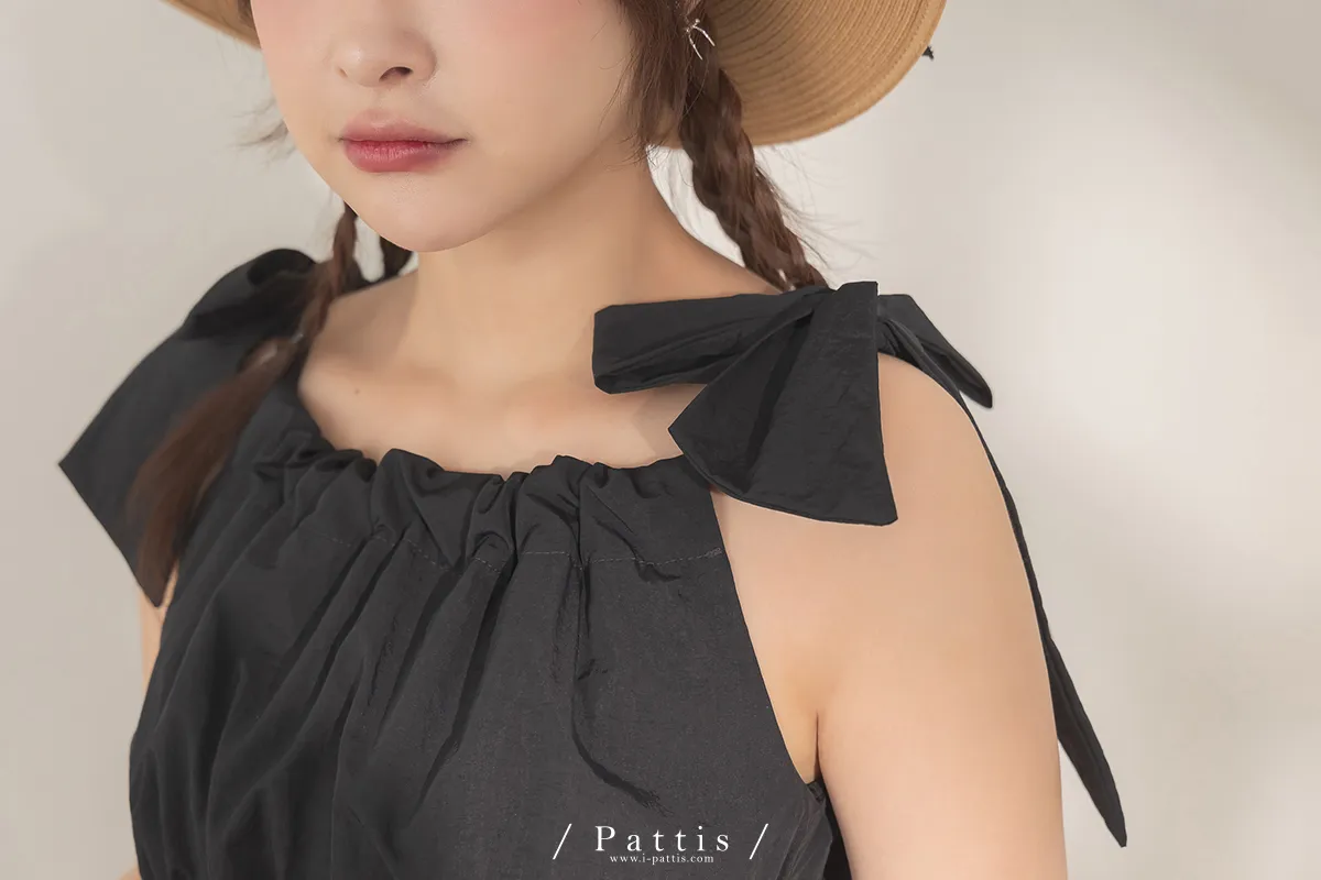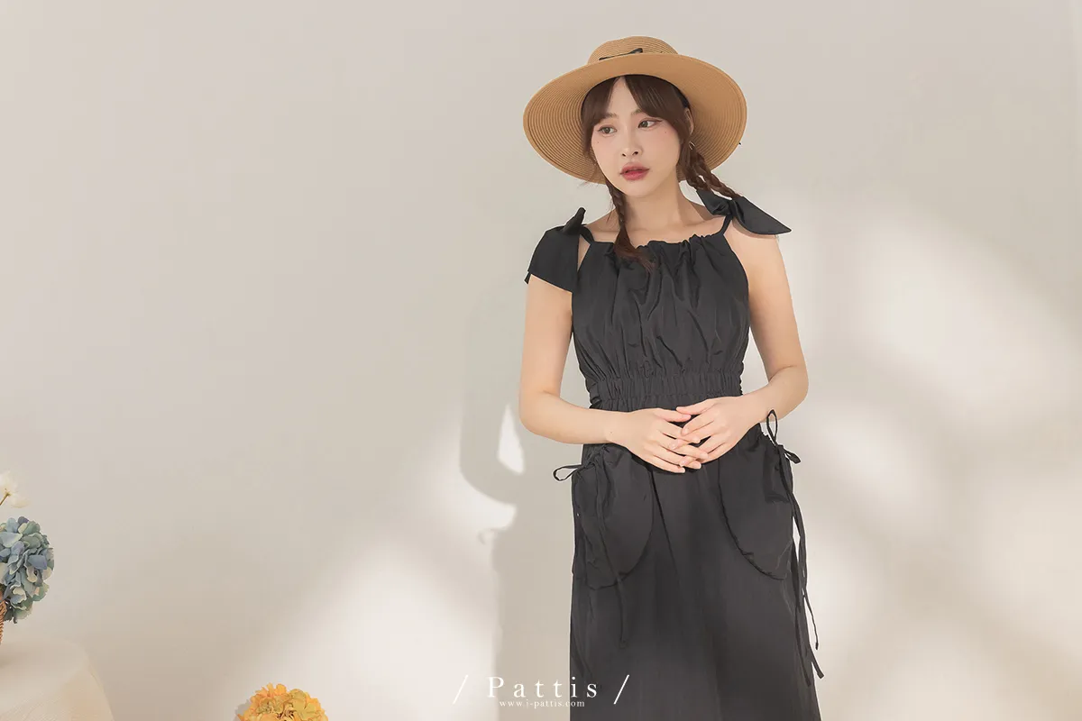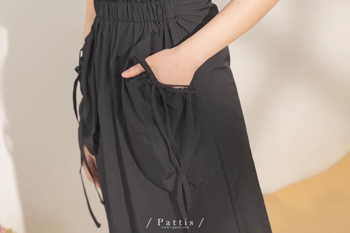 隱藏禮物 | 雙綁帶抽繩大口袋洋裝(黑)