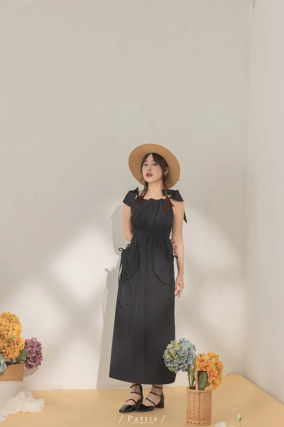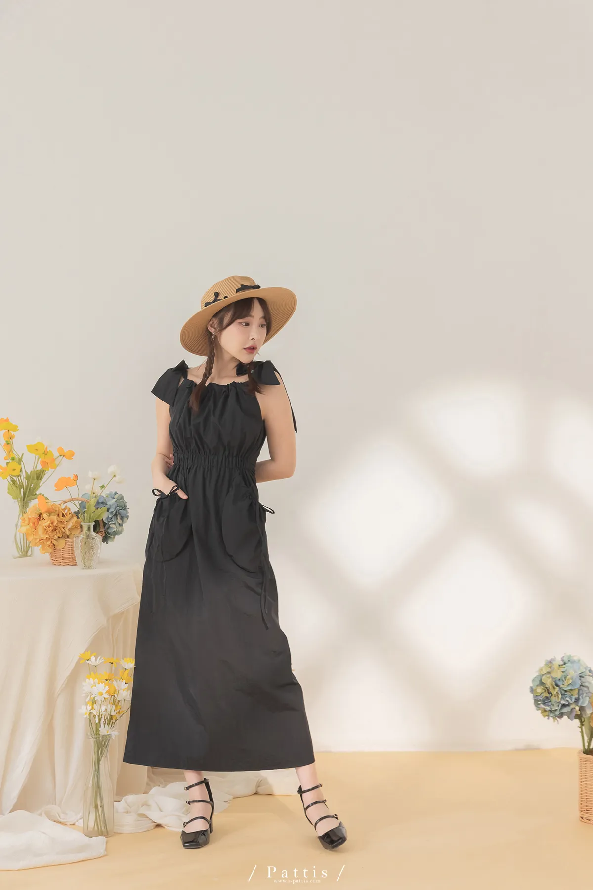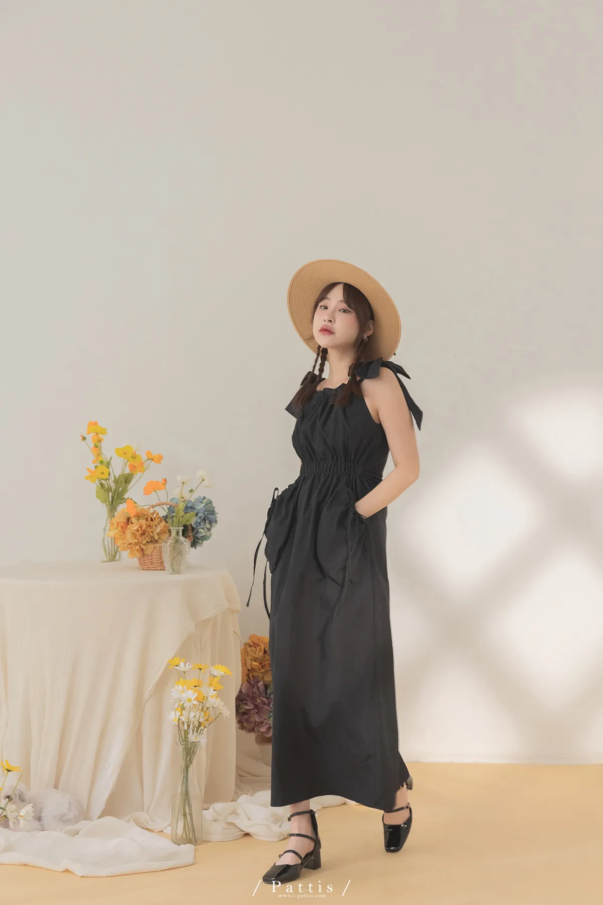 隱藏禮物 | 雙綁帶抽繩大口袋洋裝(黑)