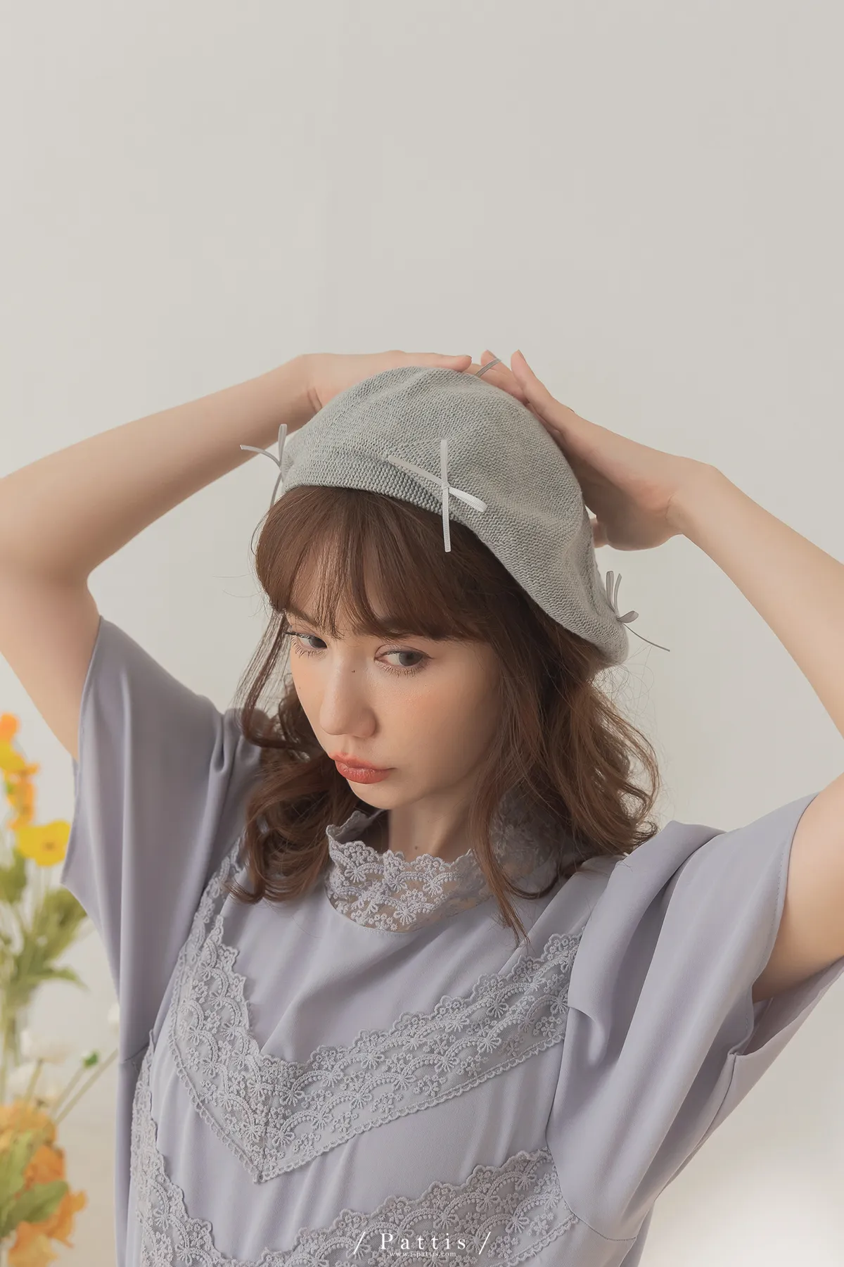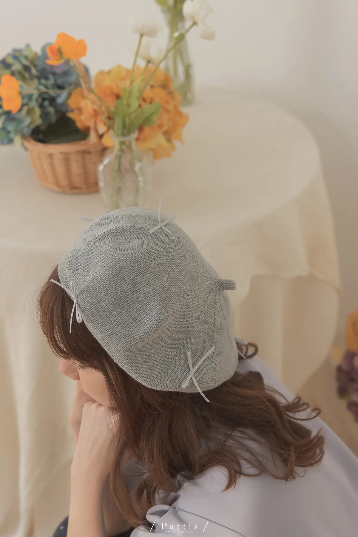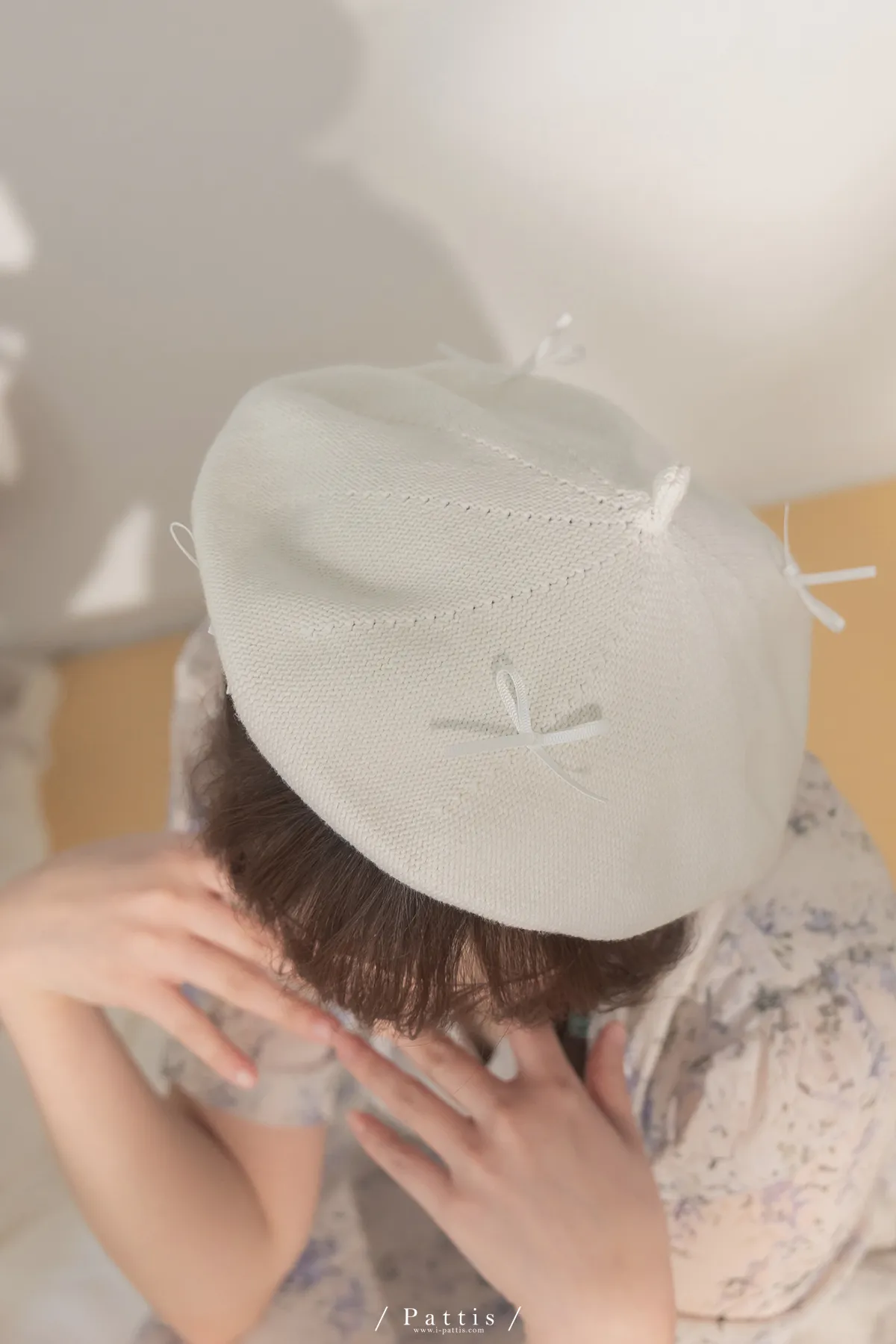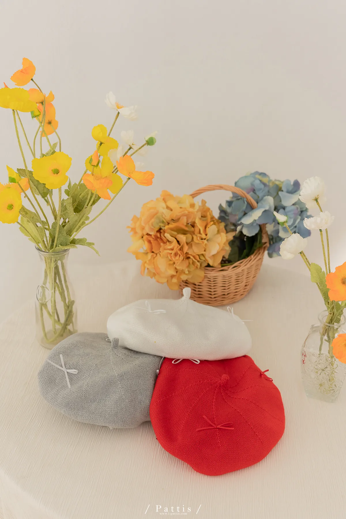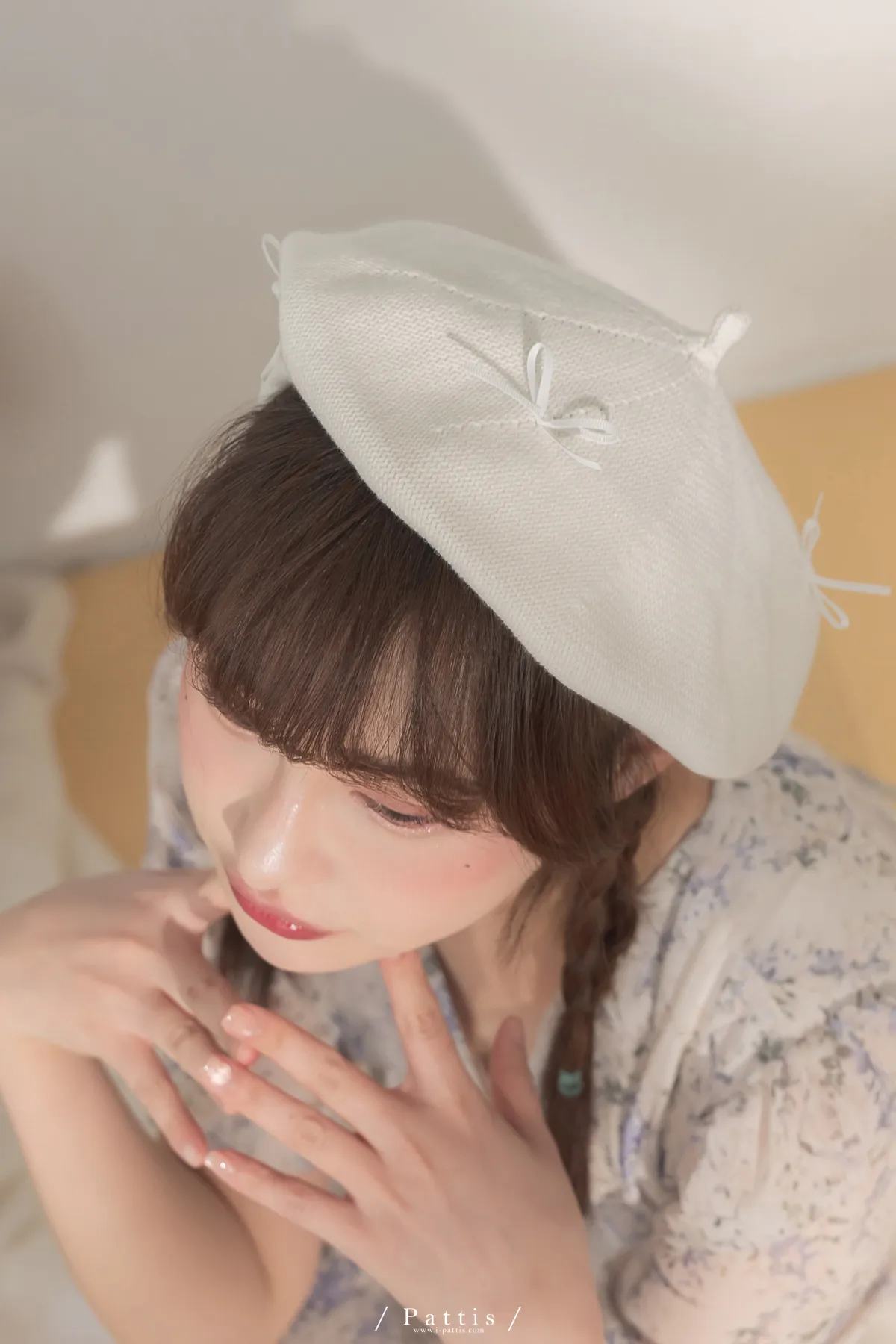 綴小蝴蝶結縷空編織貝蕾帽(白/灰/紅)