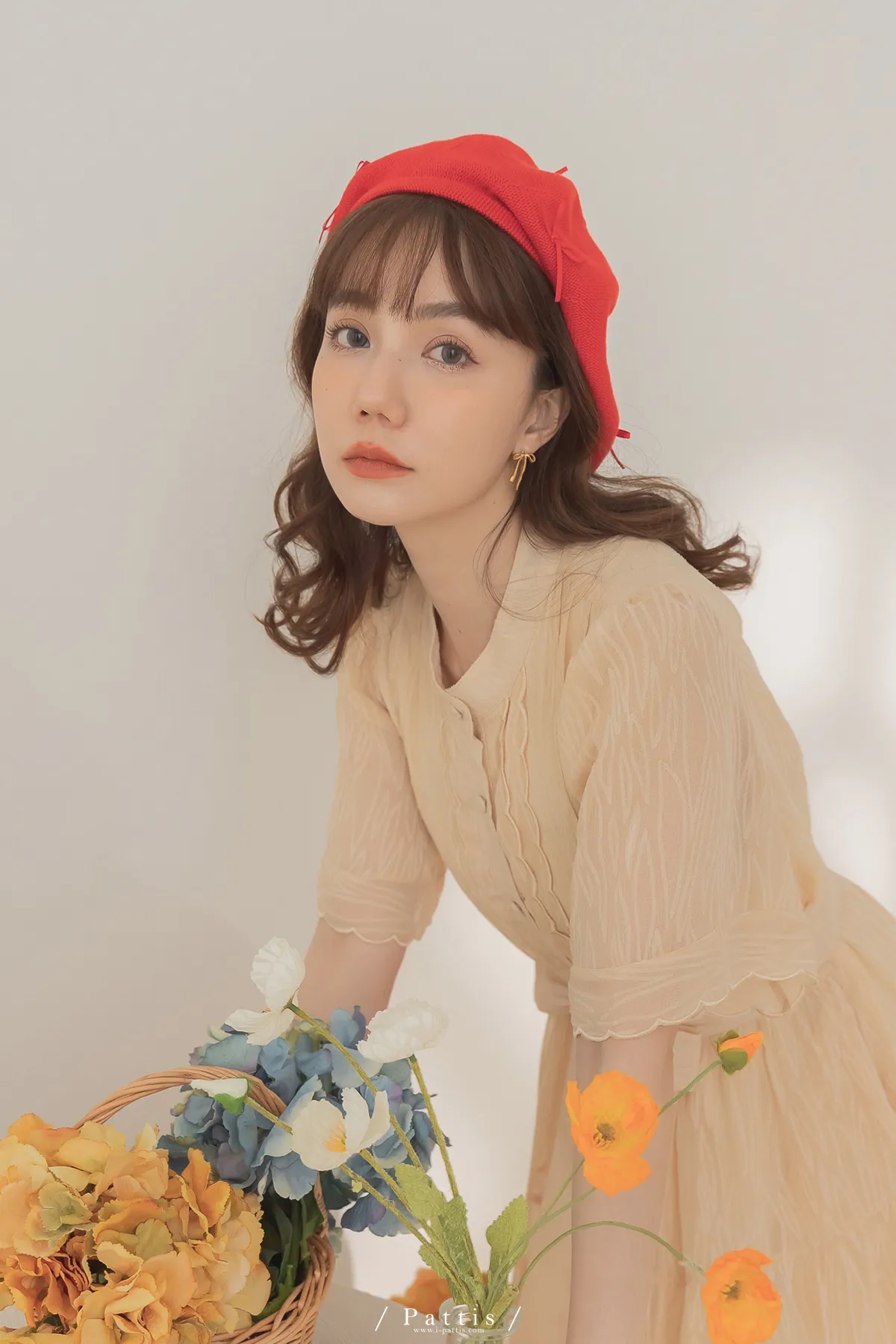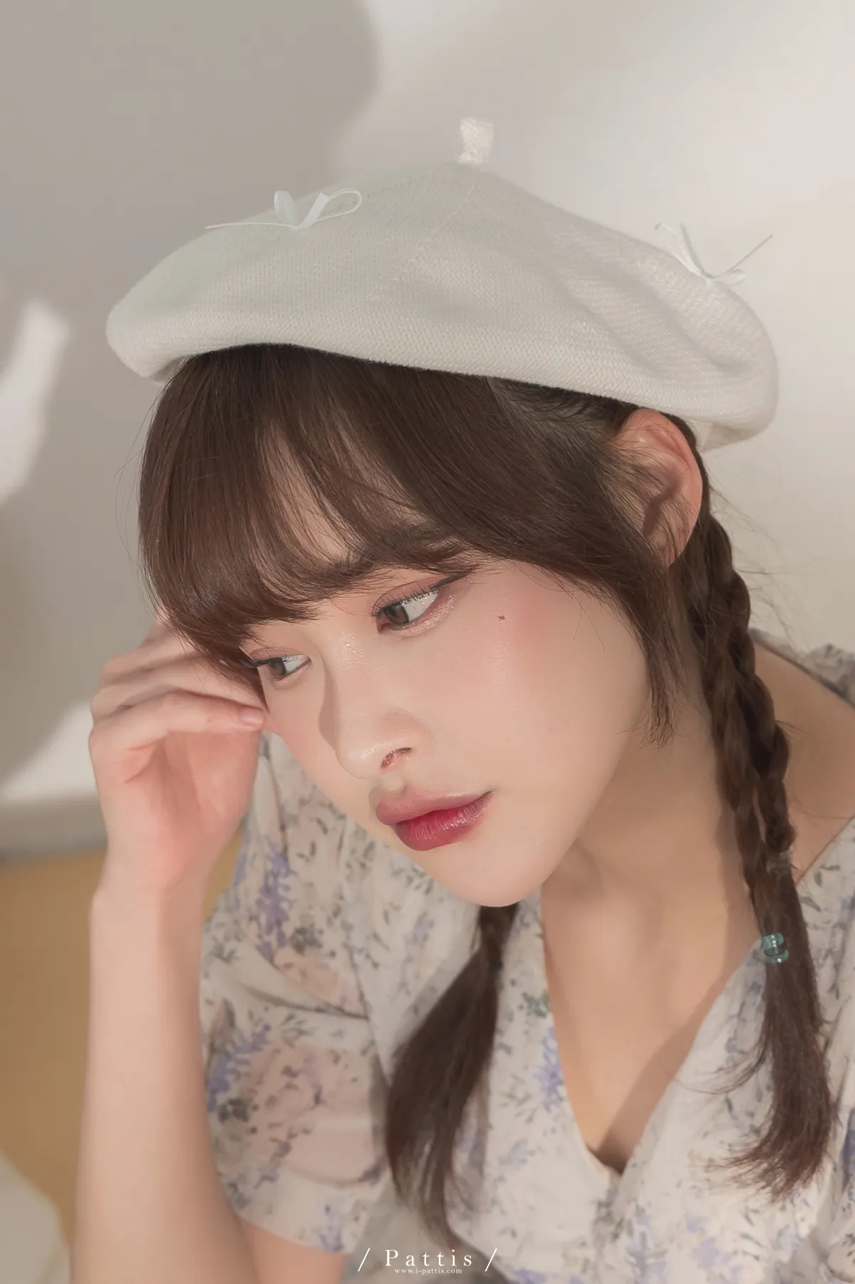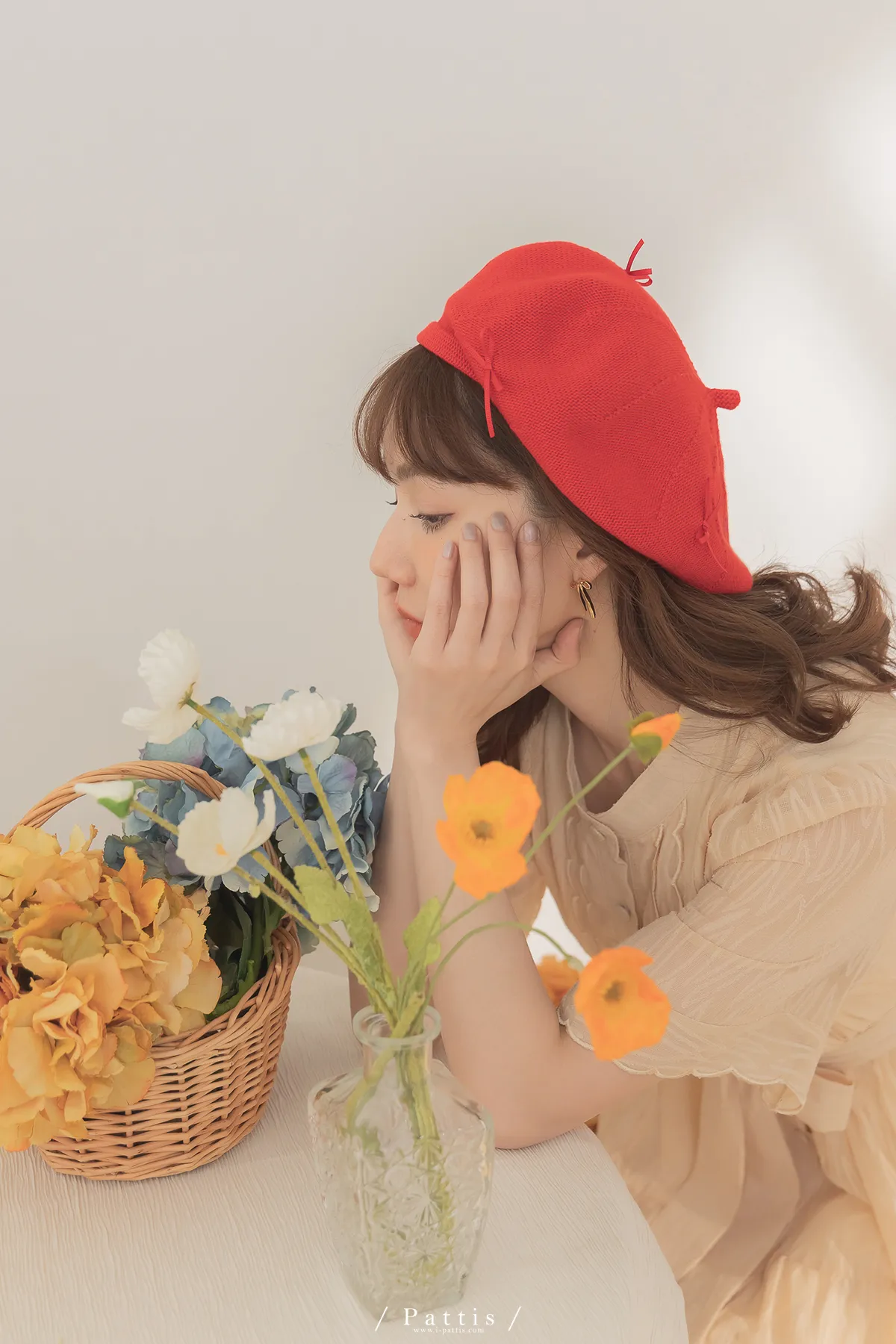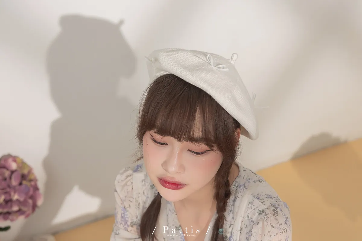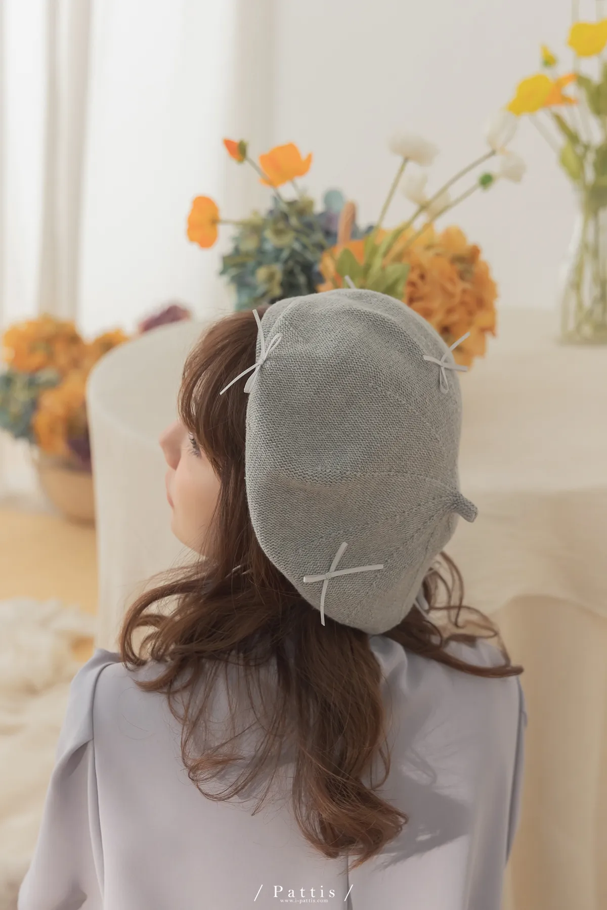 綴小蝴蝶結縷空編織貝蕾帽(白/灰/紅)
