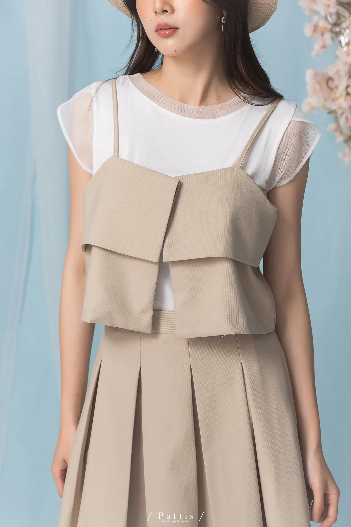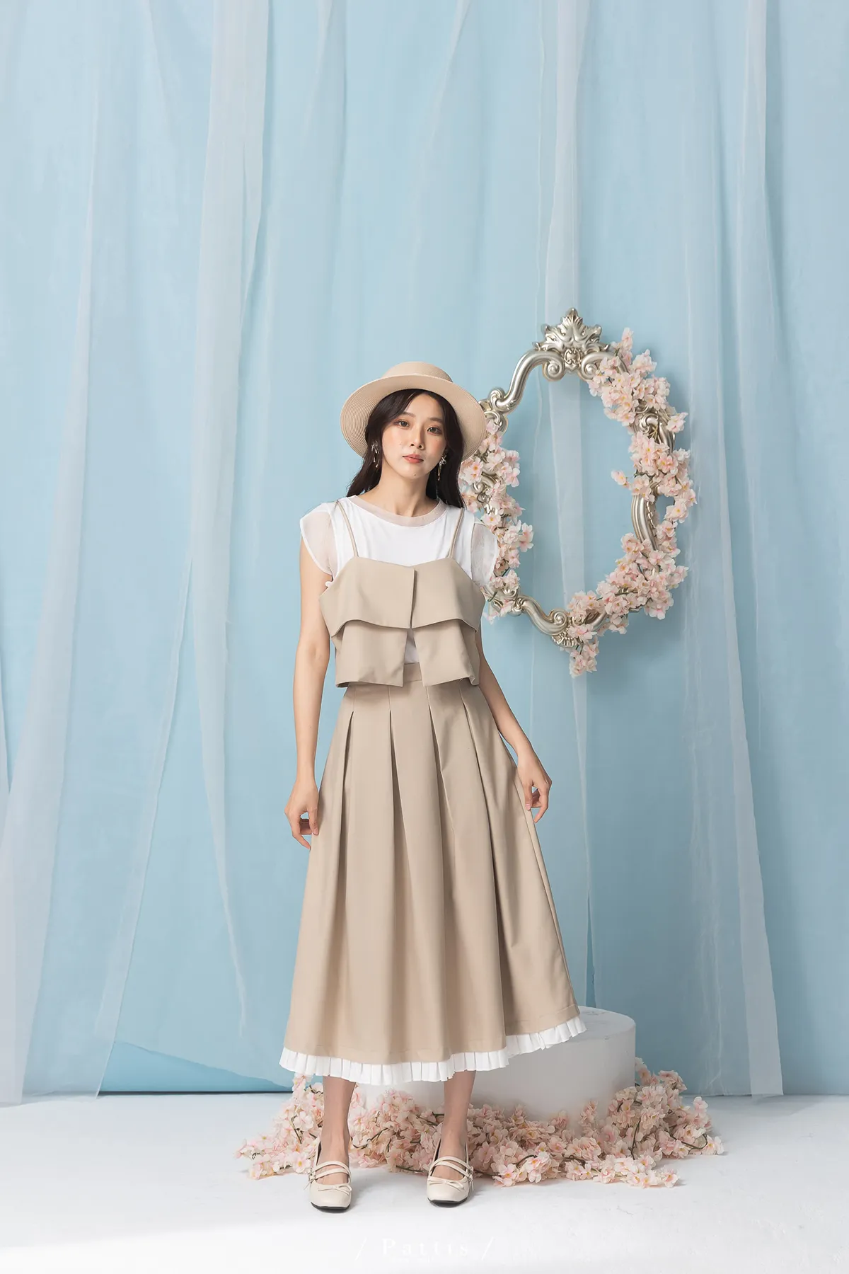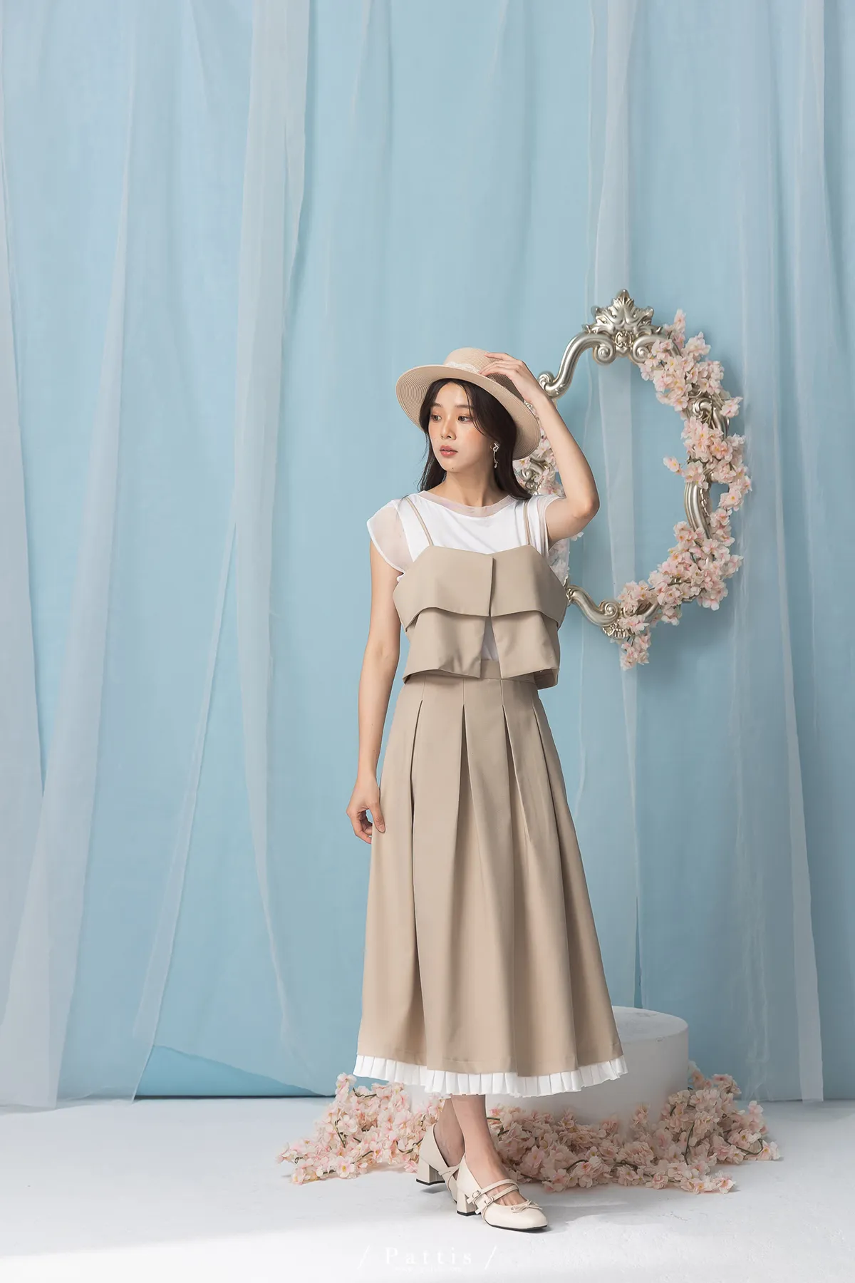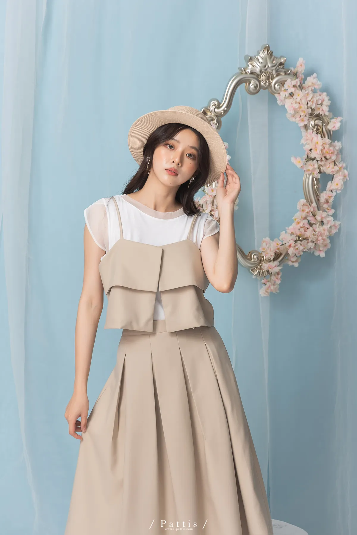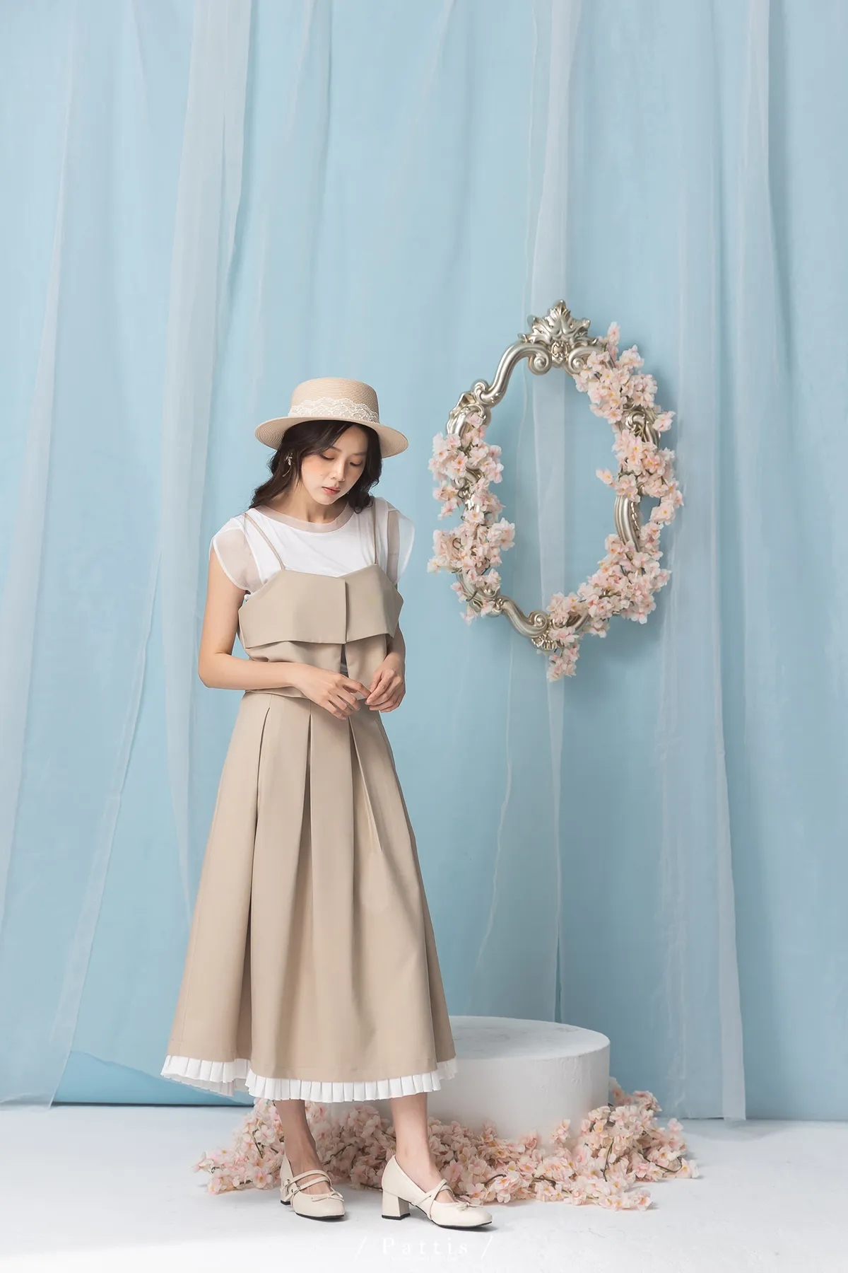 (現貨-背心) 低糖的慶祝蛋糕 | (可分售)翻領短版吊帶背心+百褶長裙set組(米杏)