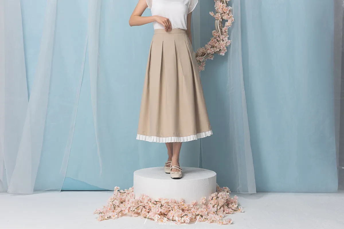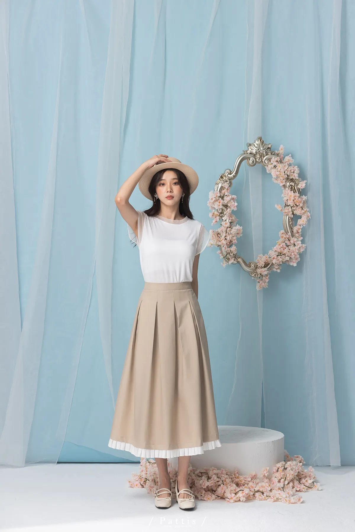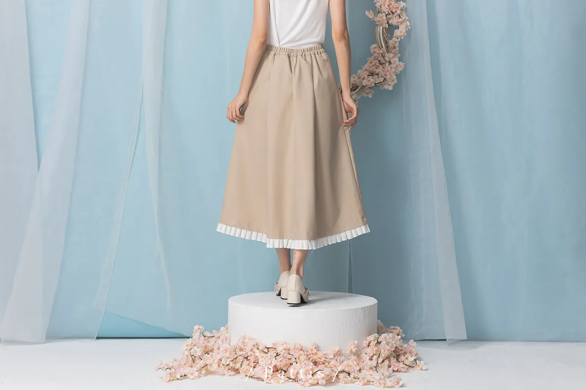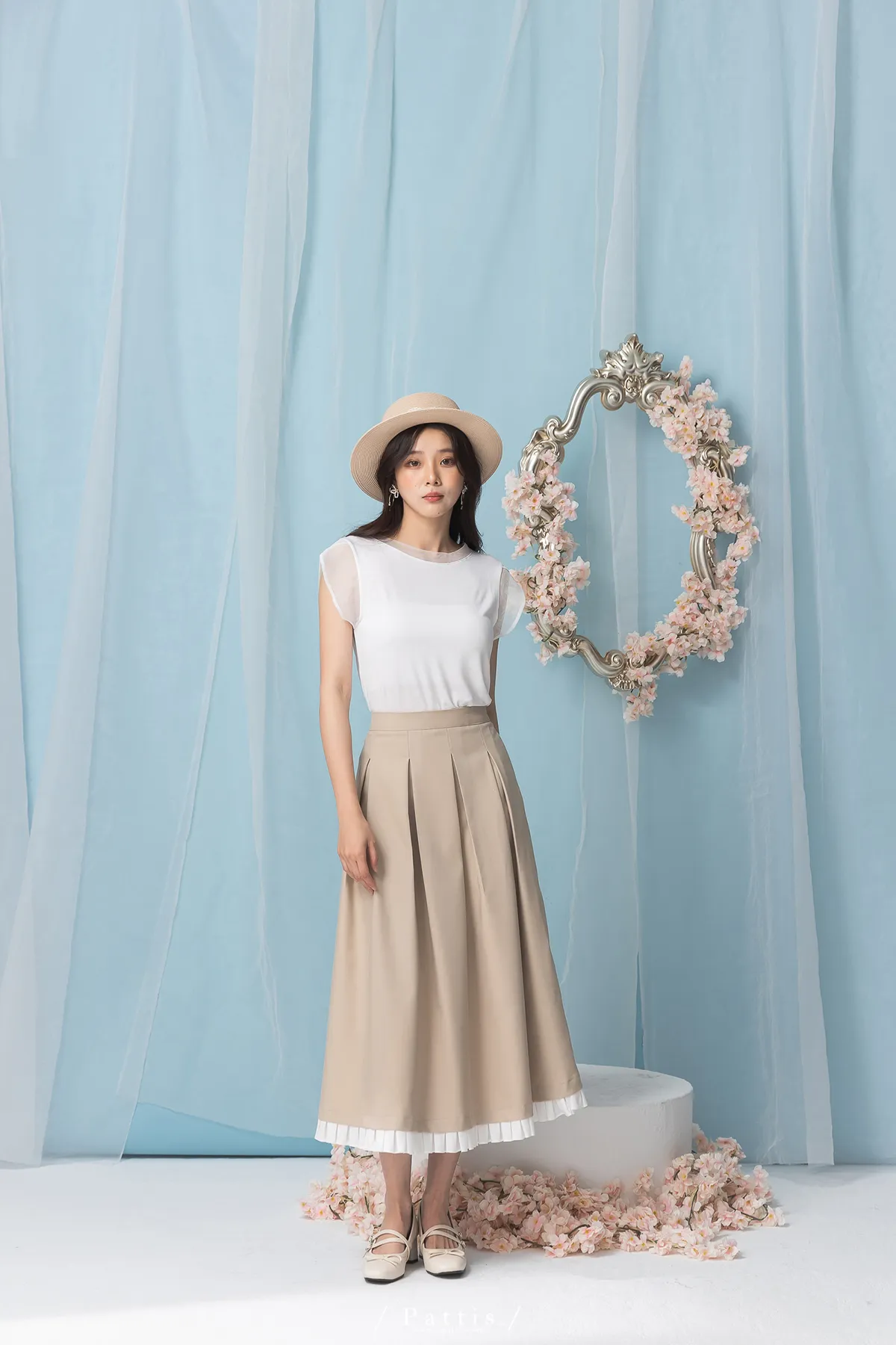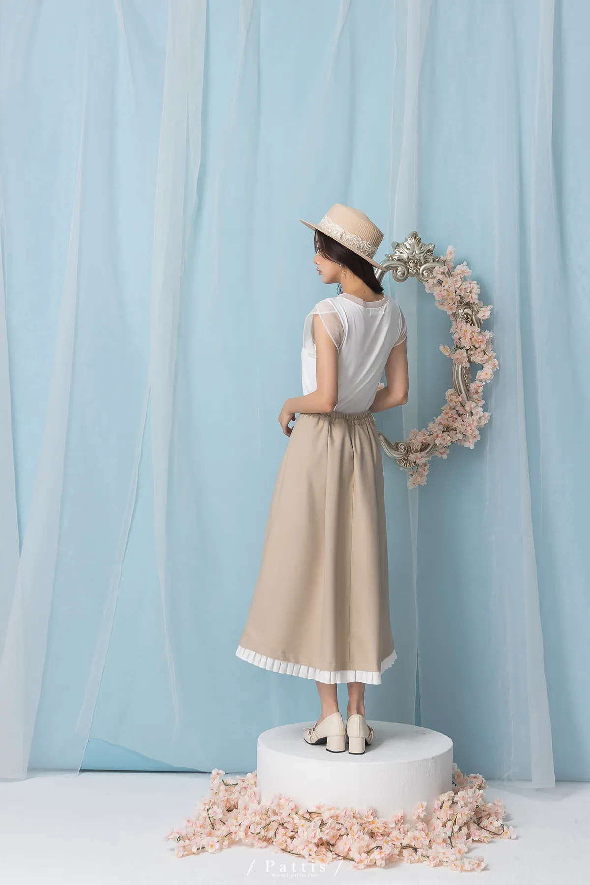 (現貨-背心) 低糖的慶祝蛋糕 | (可分售)翻領短版吊帶背心+百褶長裙set組(米杏)