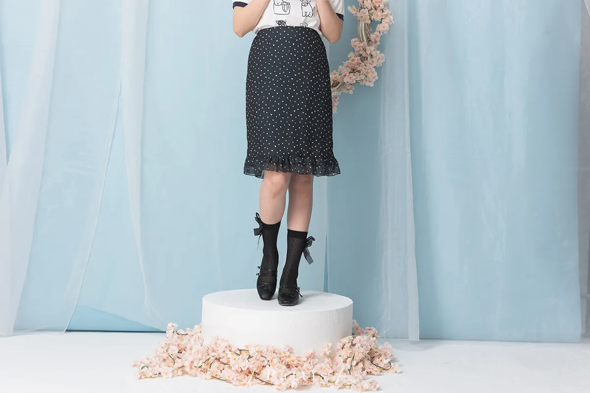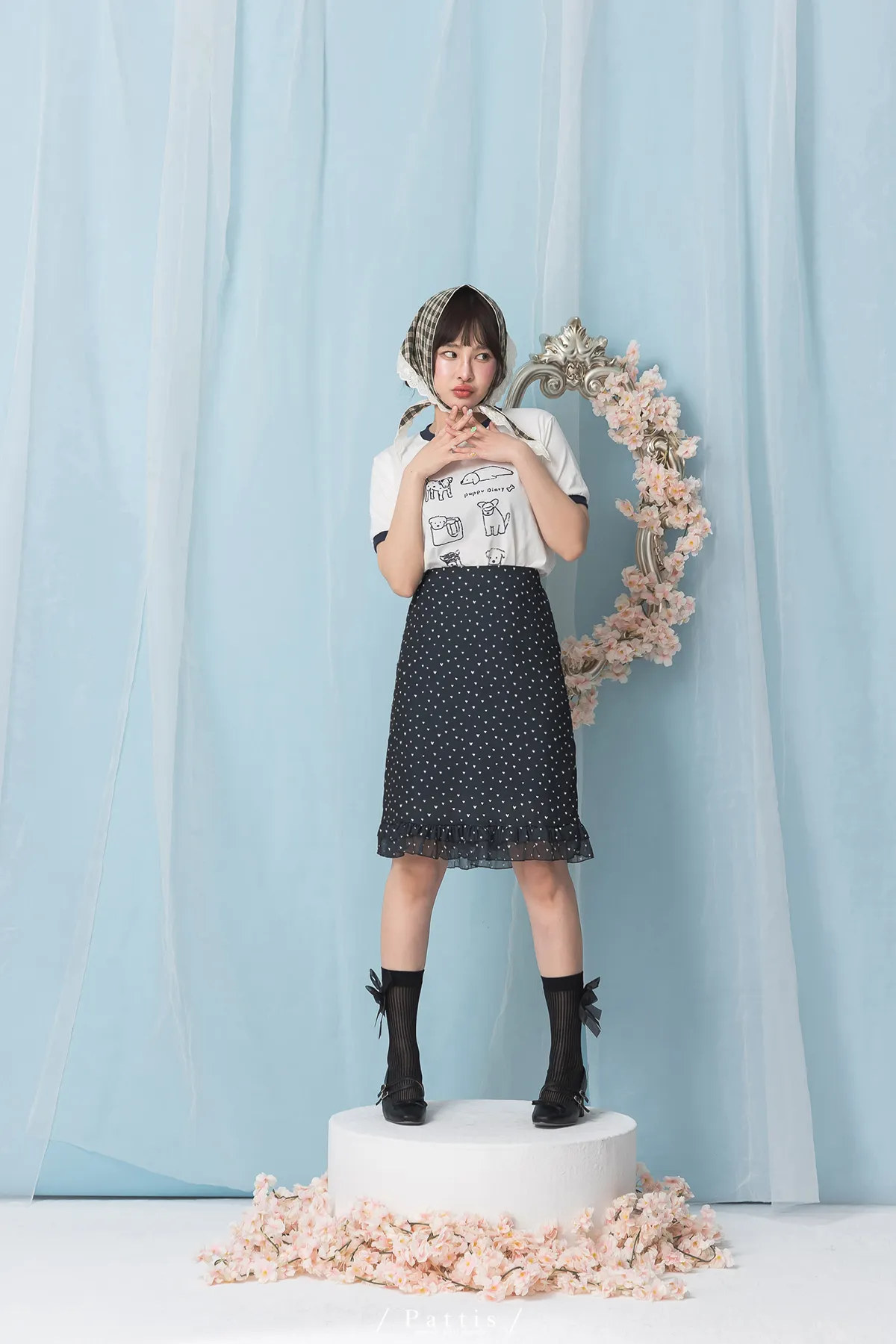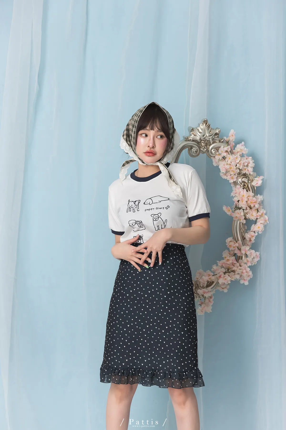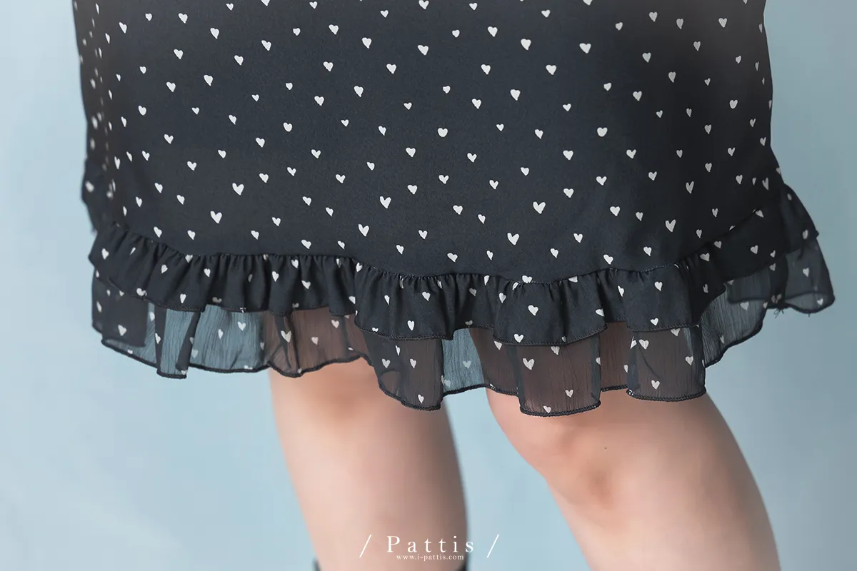 (現貨) 喜歡的多次方證據 | 小愛心印花拼接荷葉A字裙(灰黑)