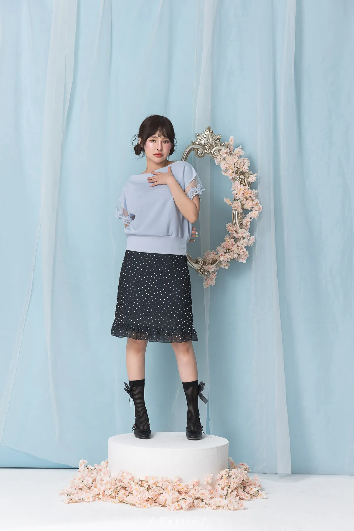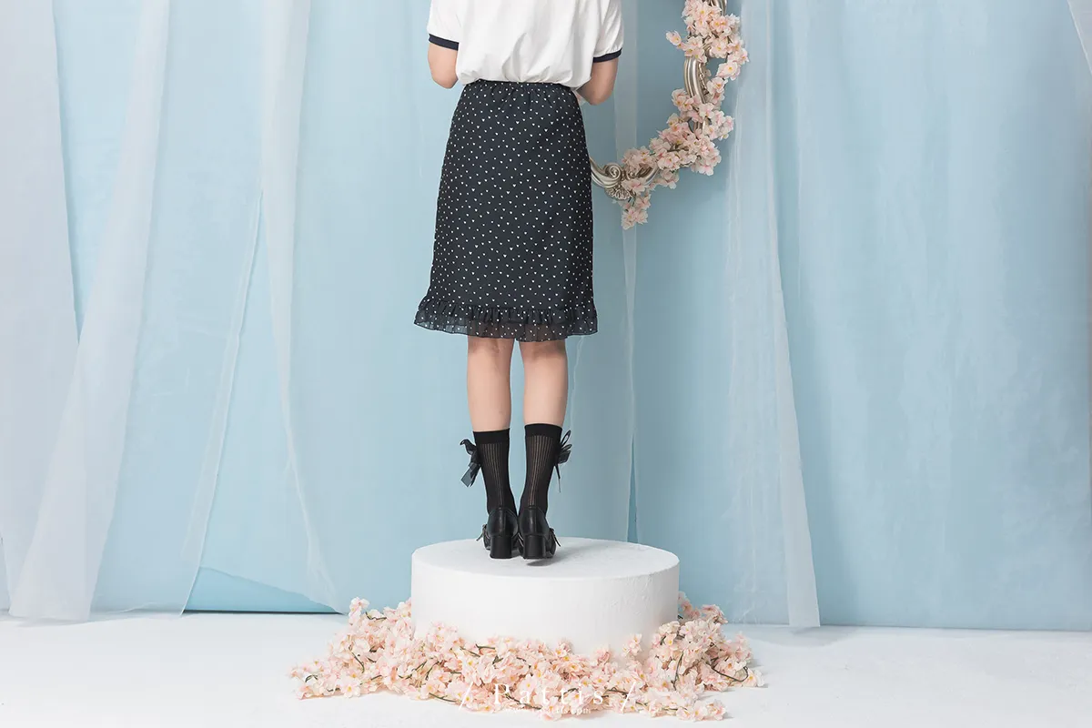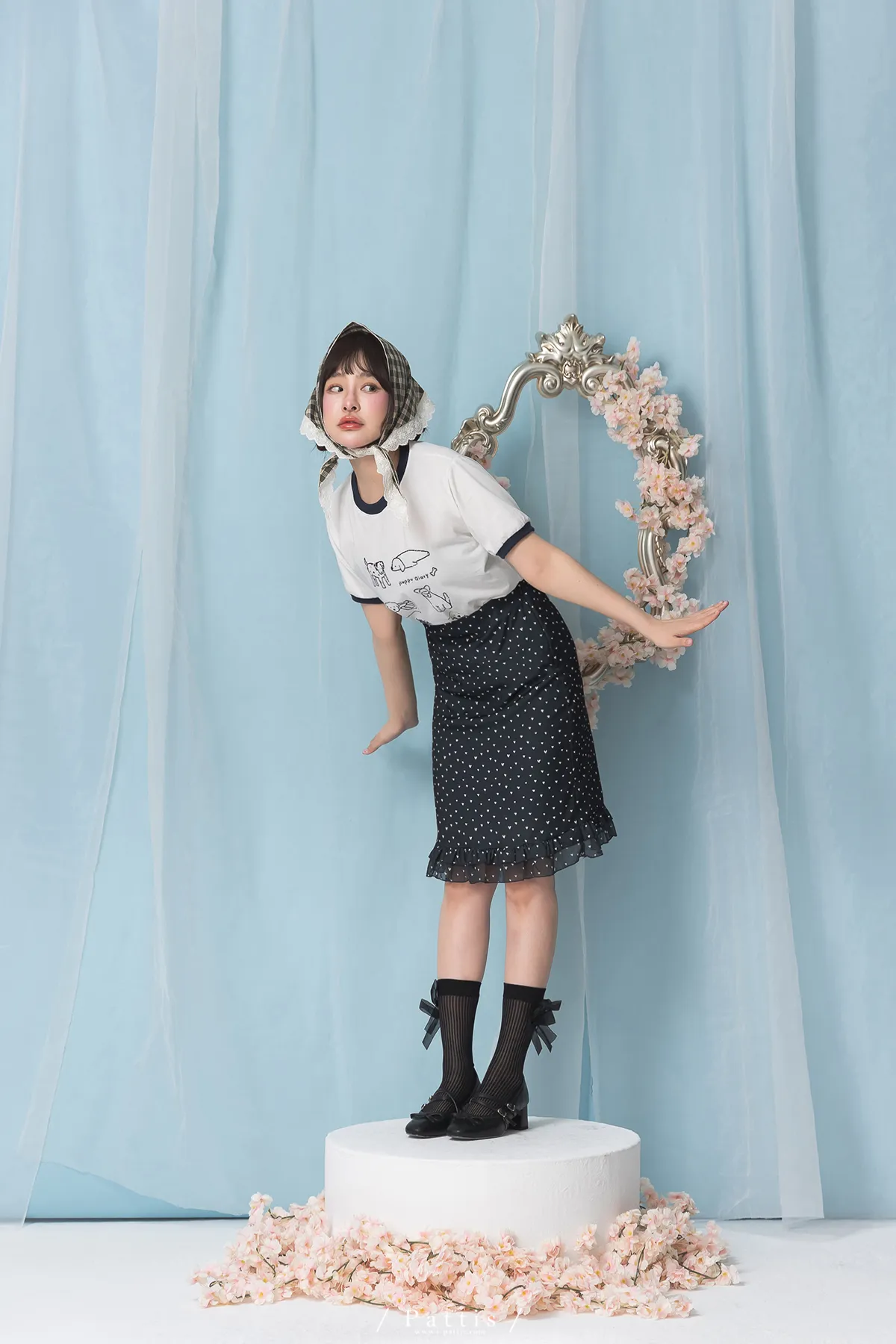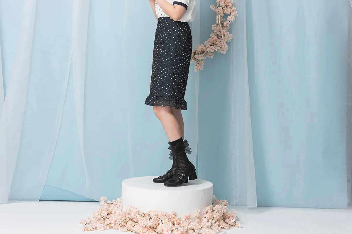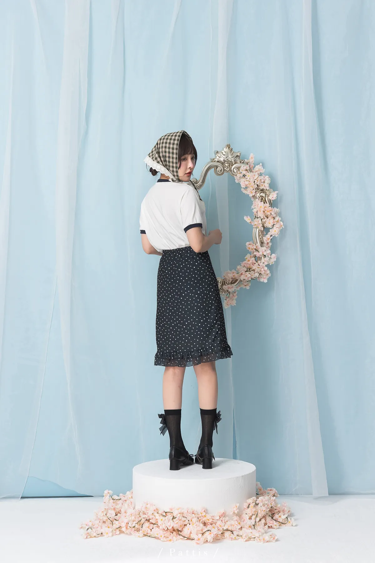 (現貨) 喜歡的多次方證據 | 小愛心印花拼接荷葉A字裙(灰黑)