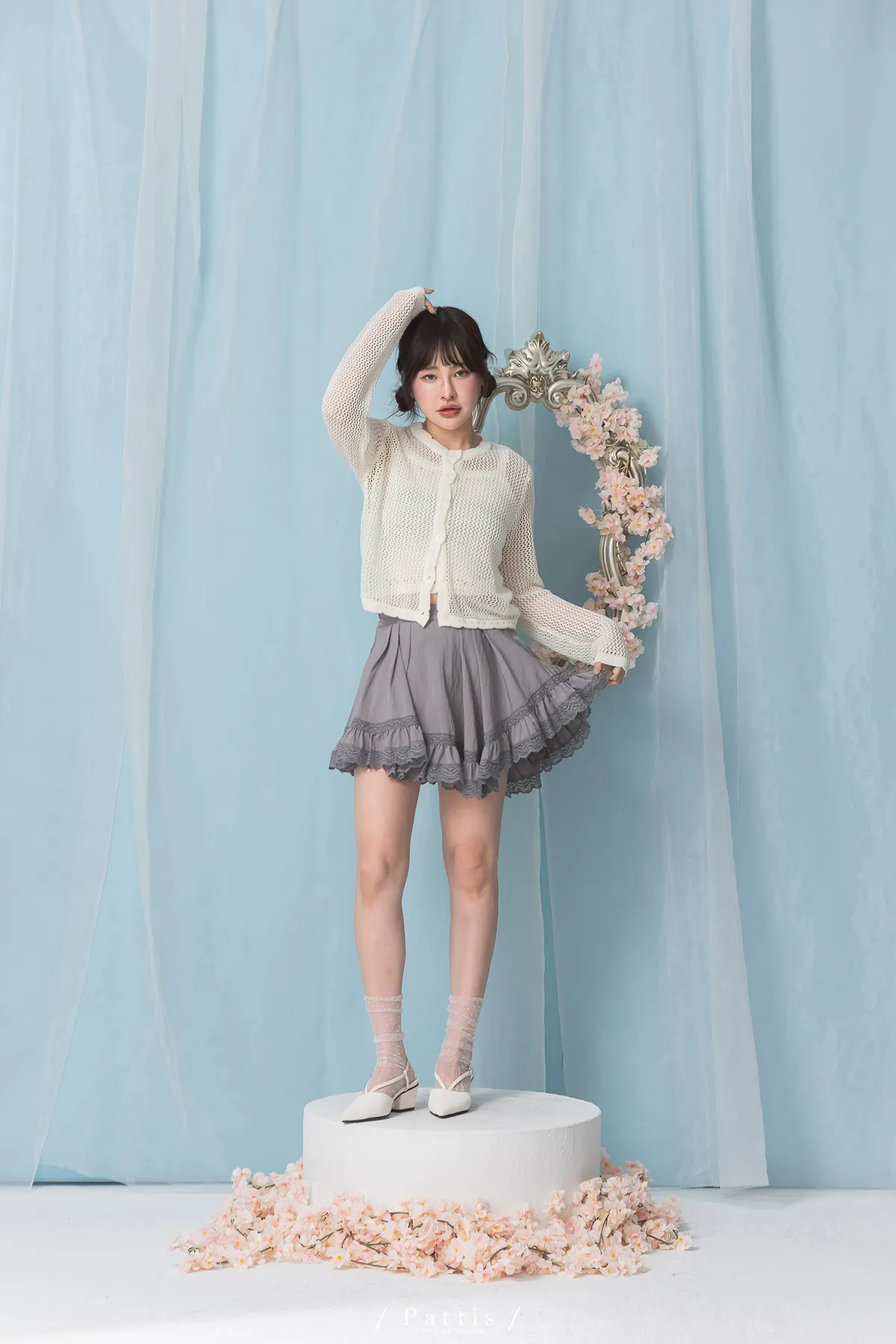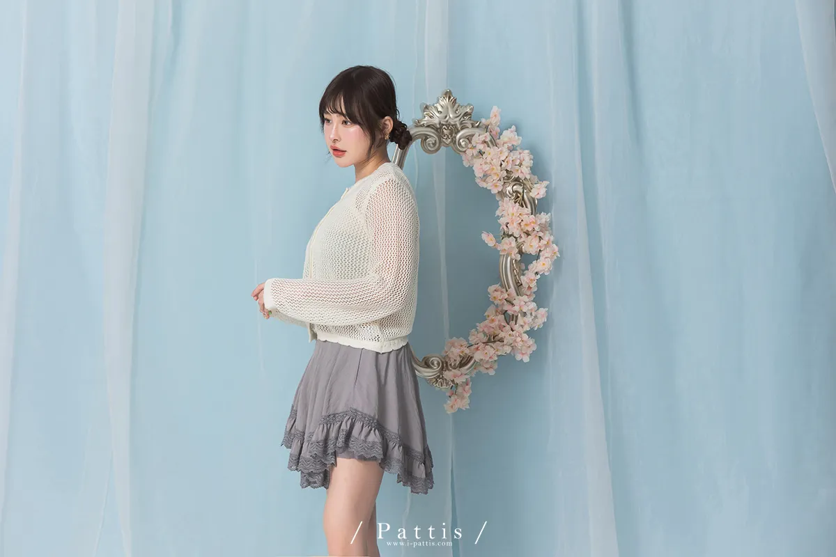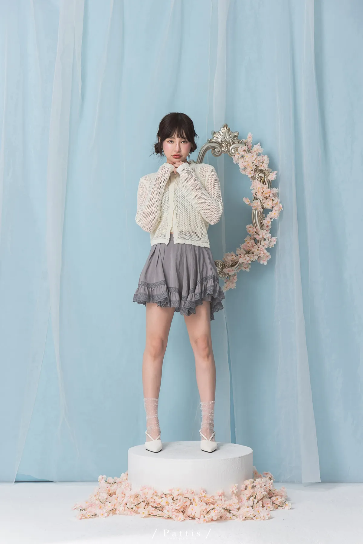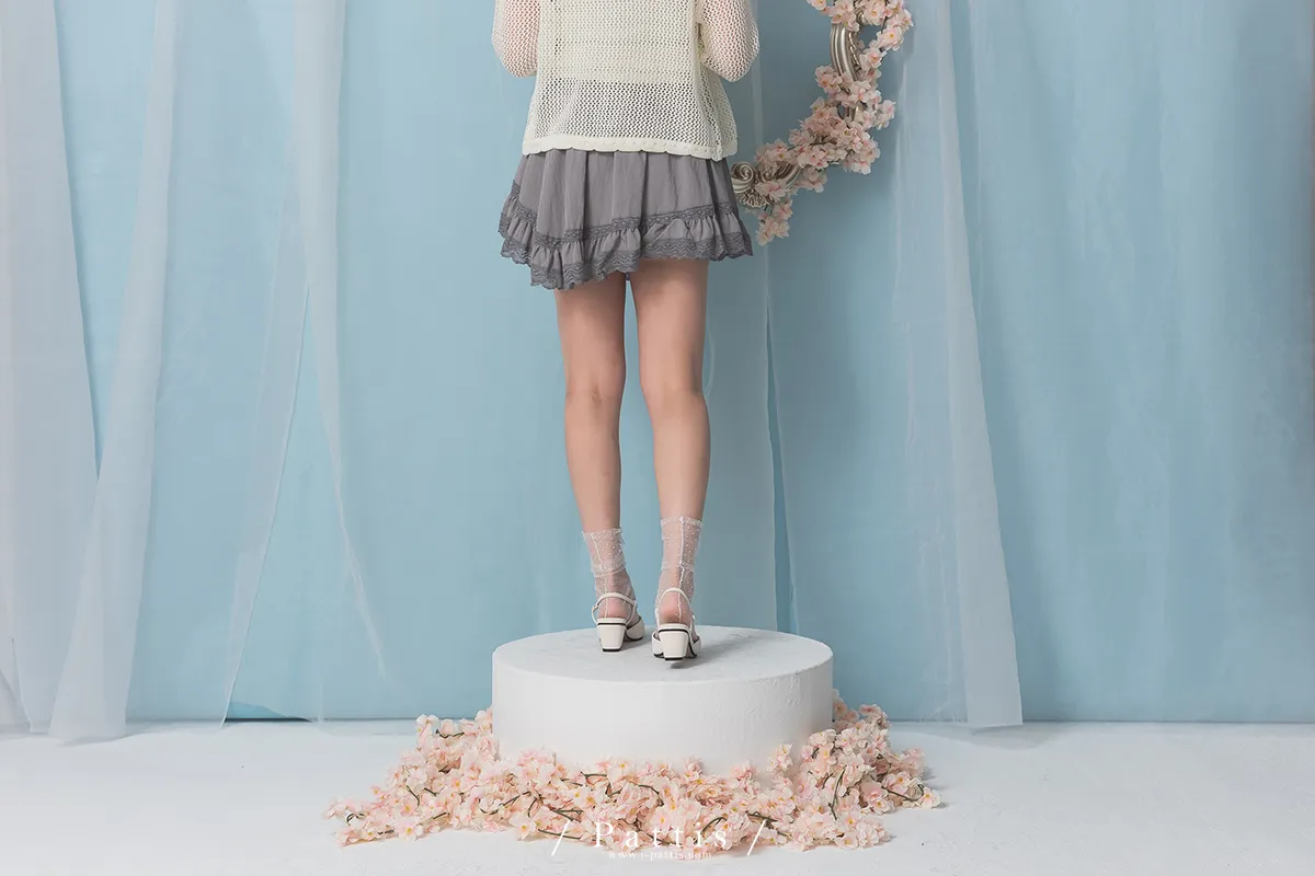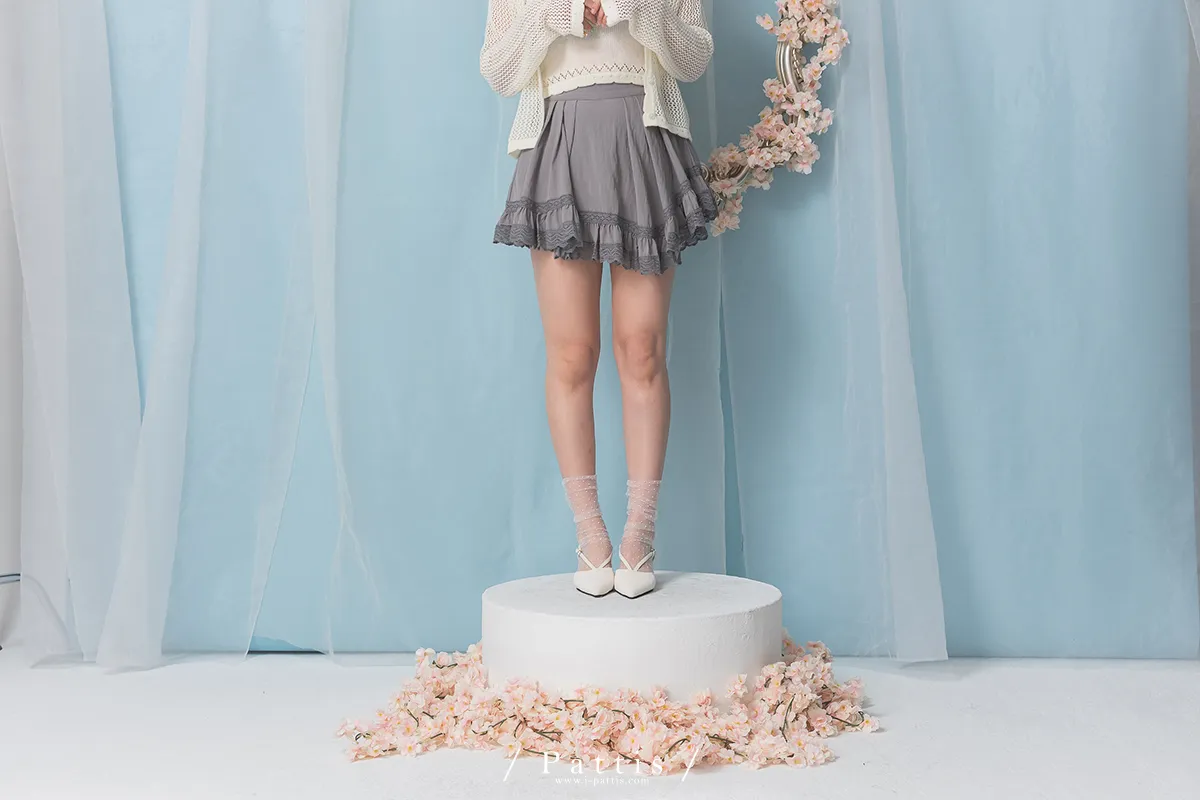 (現貨) 輕舞會 | 綴蕾絲布不對稱褲裙(灰藍)