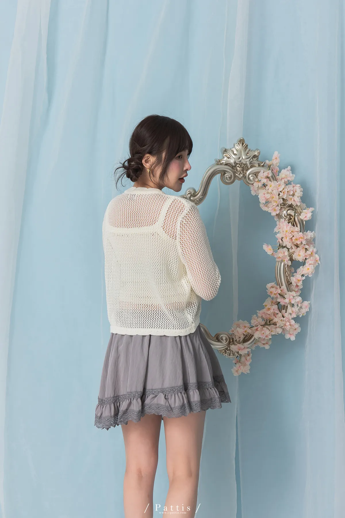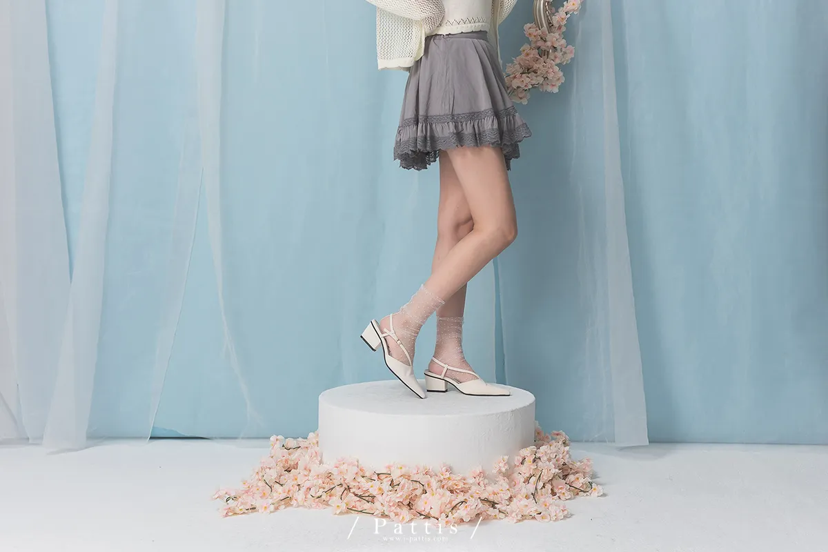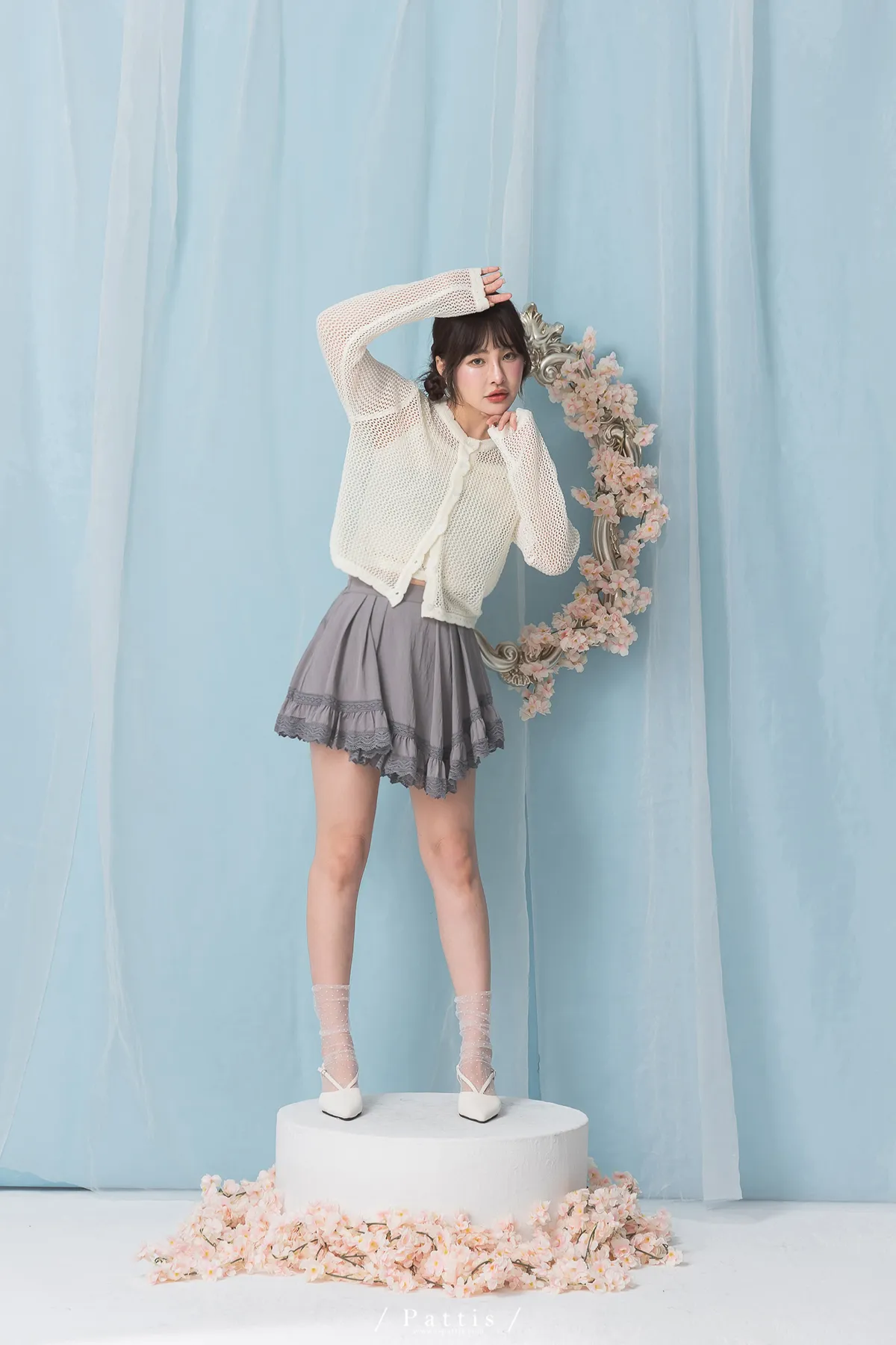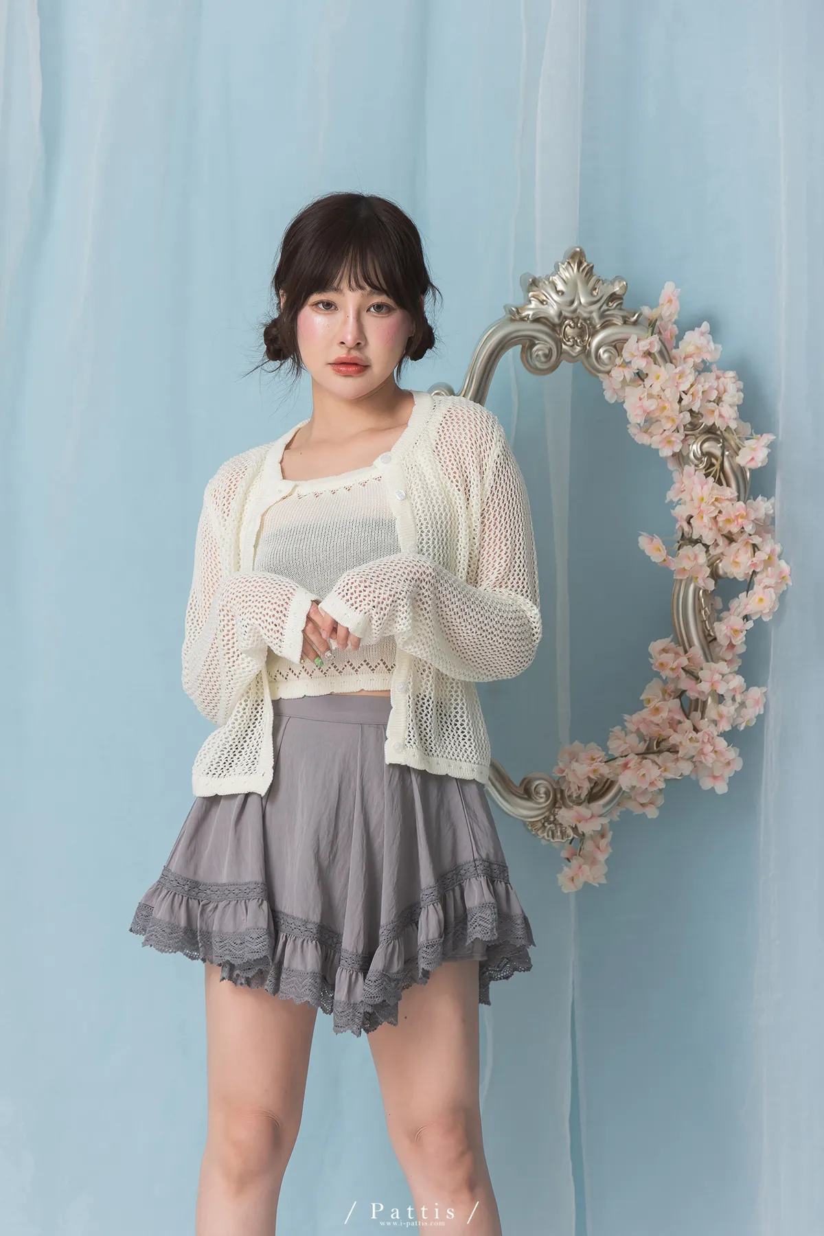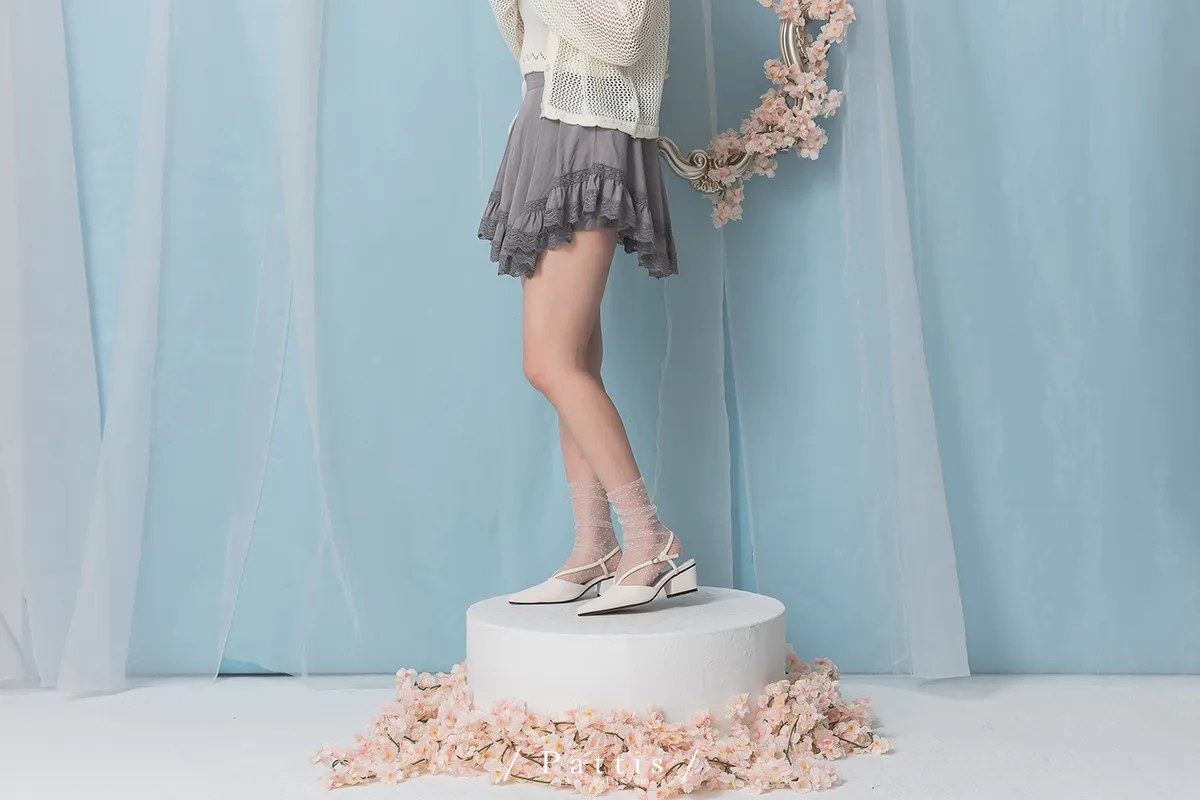 (現貨) 輕舞會 | 綴蕾絲布不對稱褲裙(灰藍)