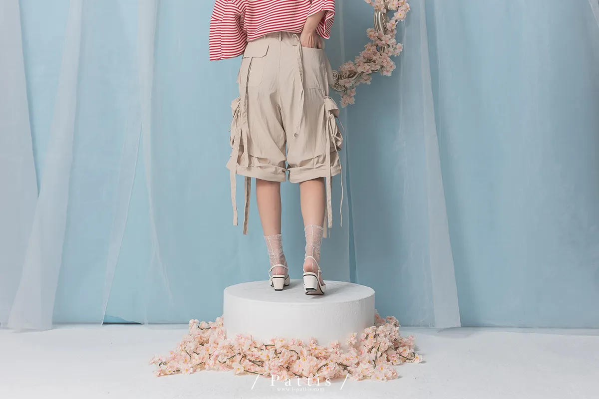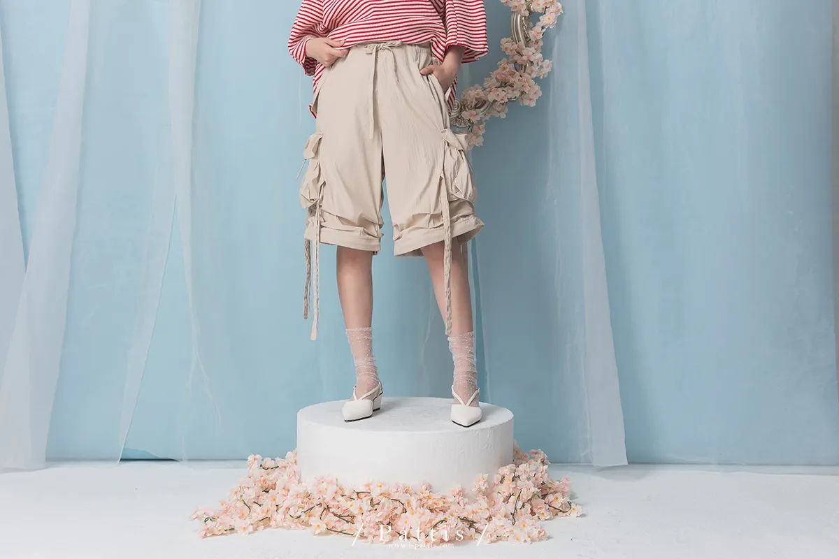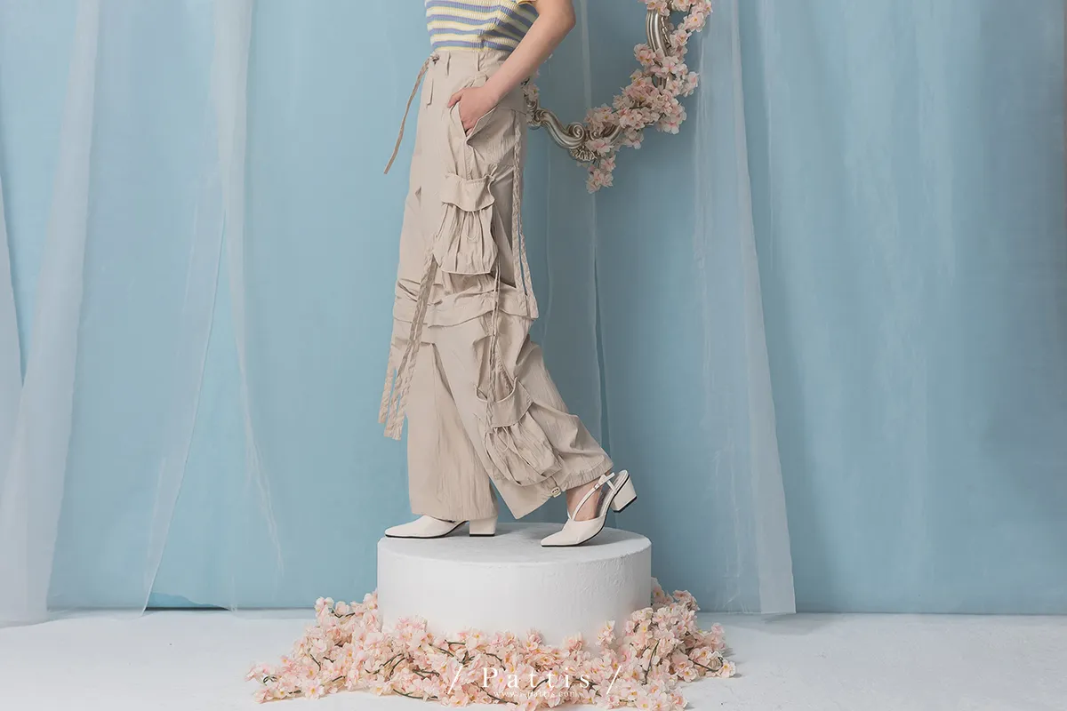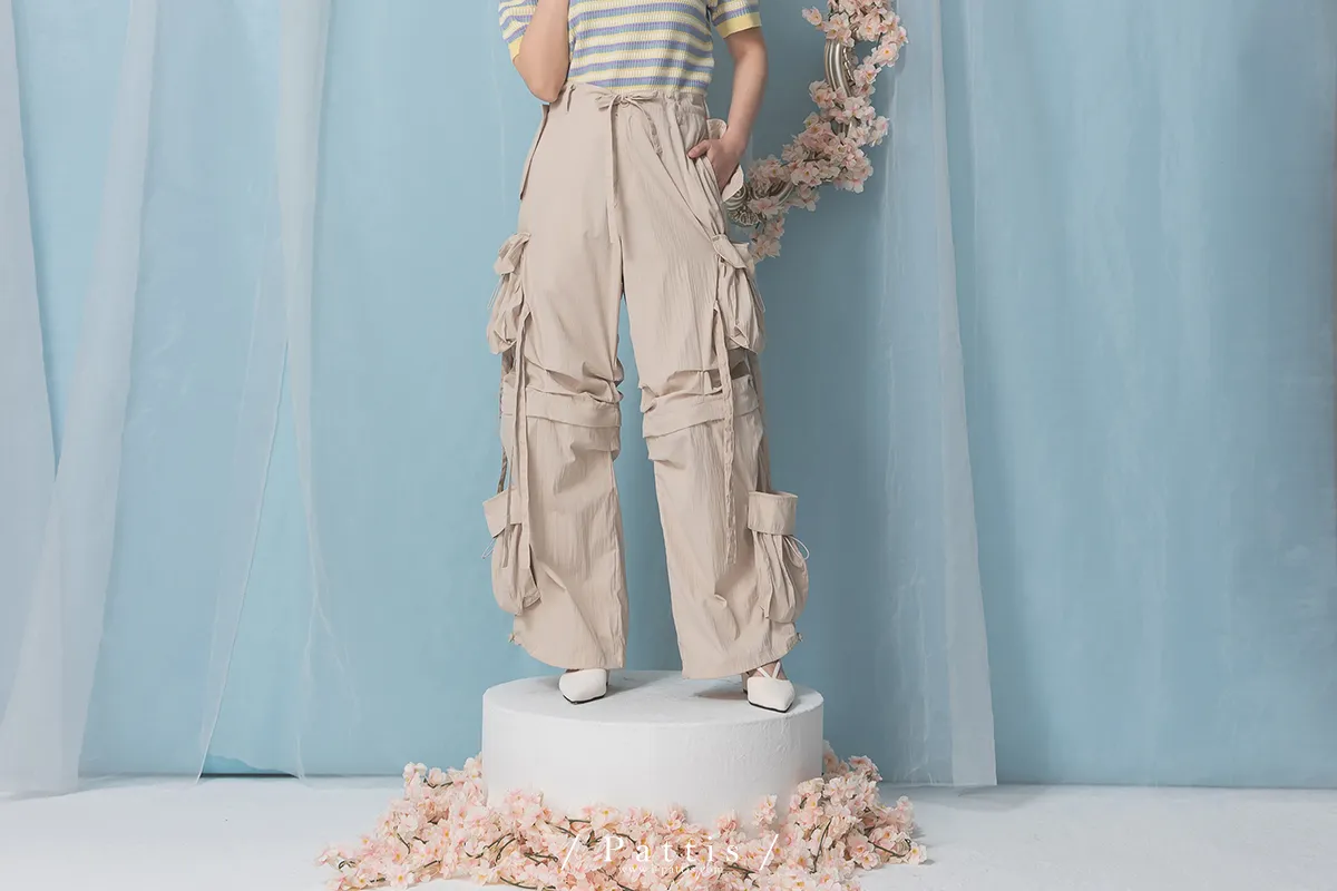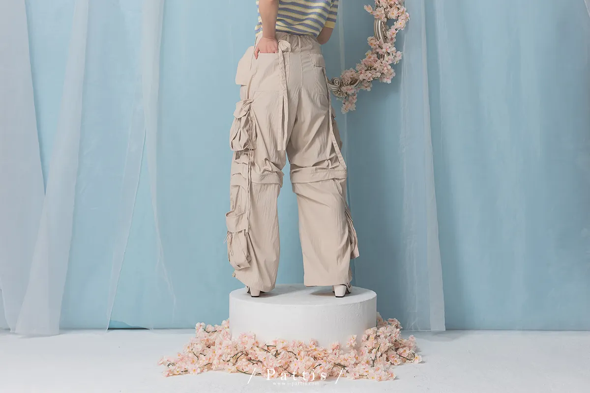 (現貨) 街頭即興曲 | 可拆式多綁帶寬褲(粉杏)