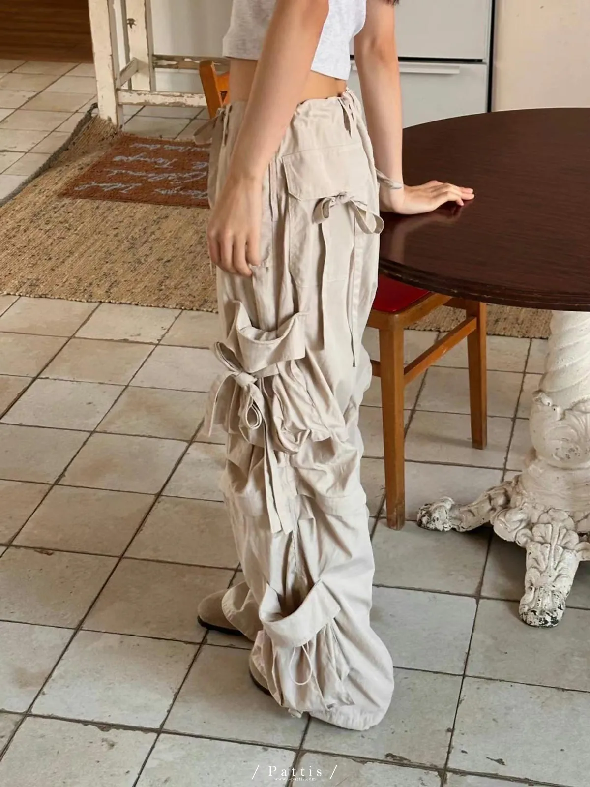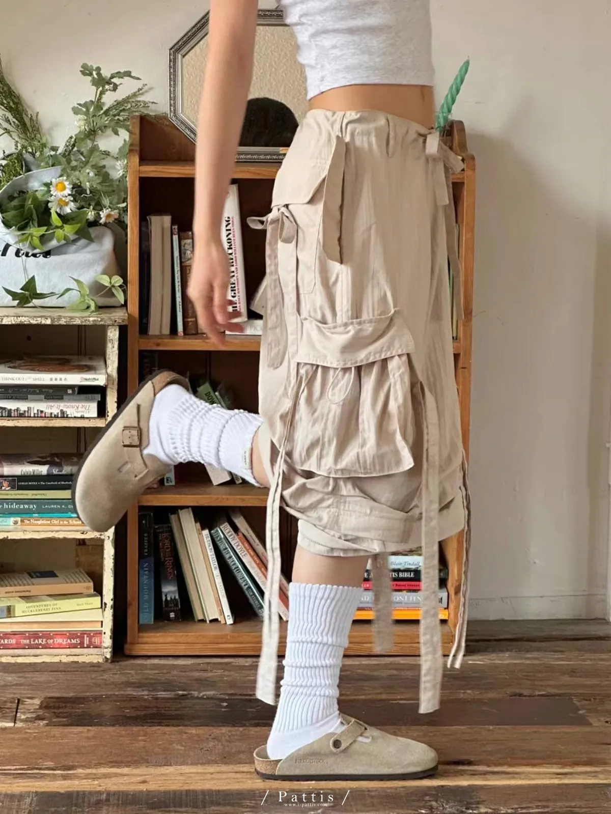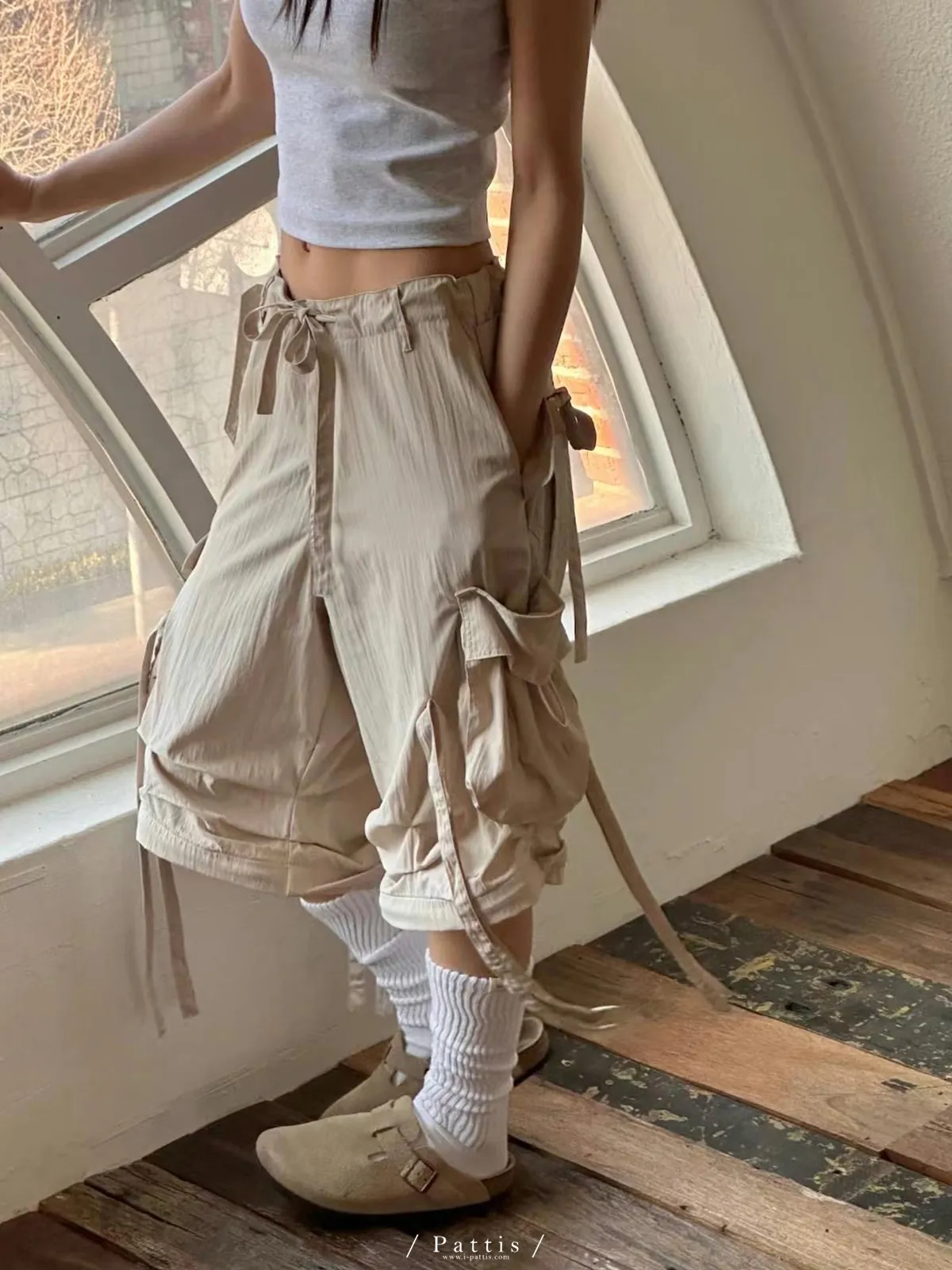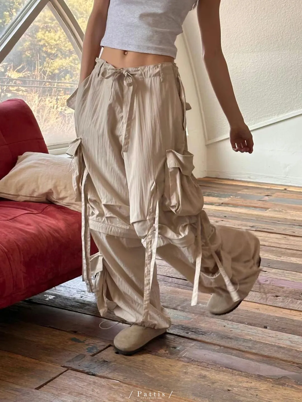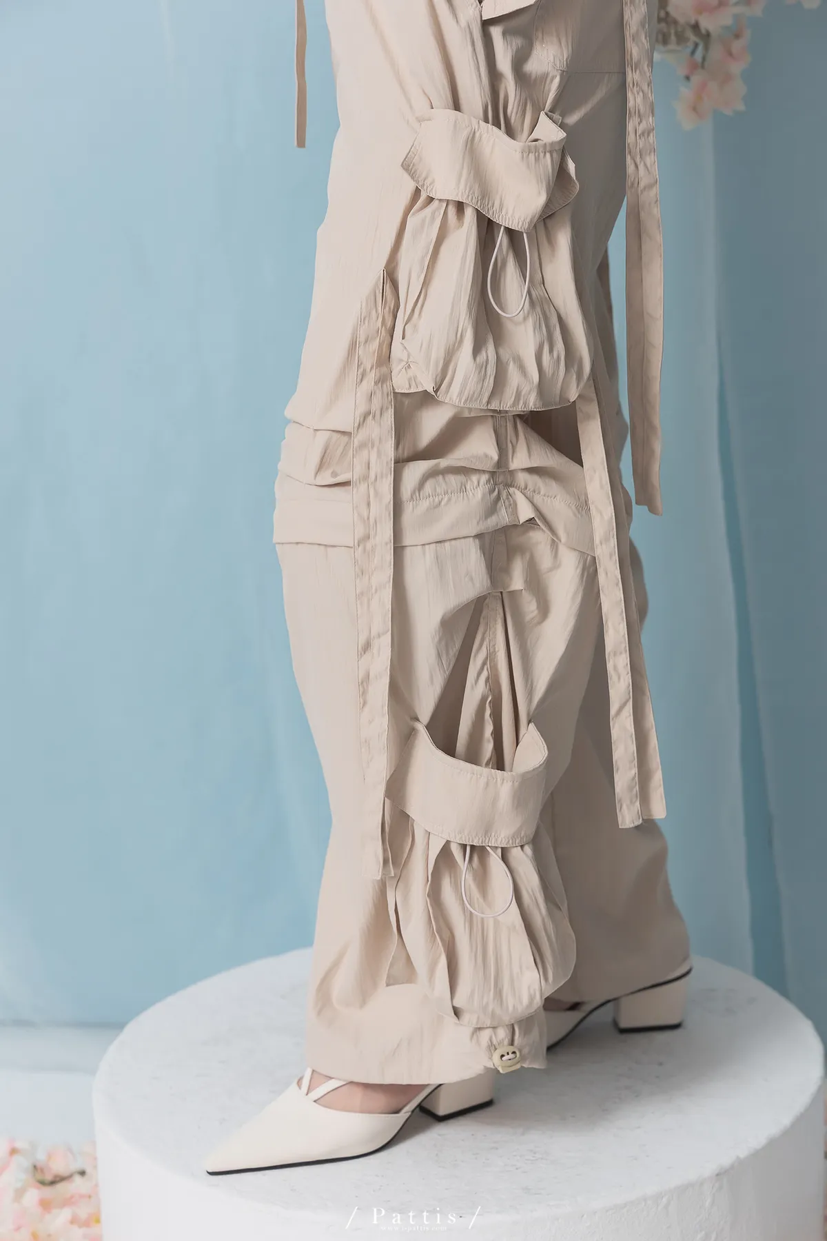 (現貨) 街頭即興曲 | 可拆式多綁帶寬褲(粉杏)