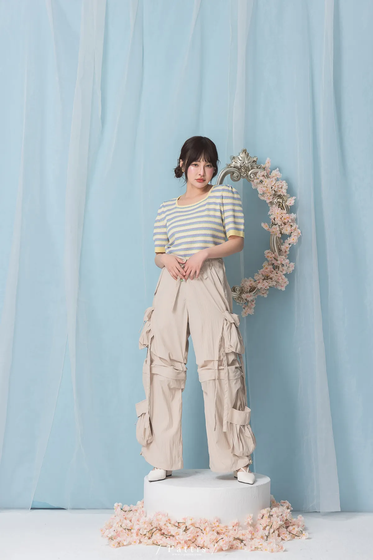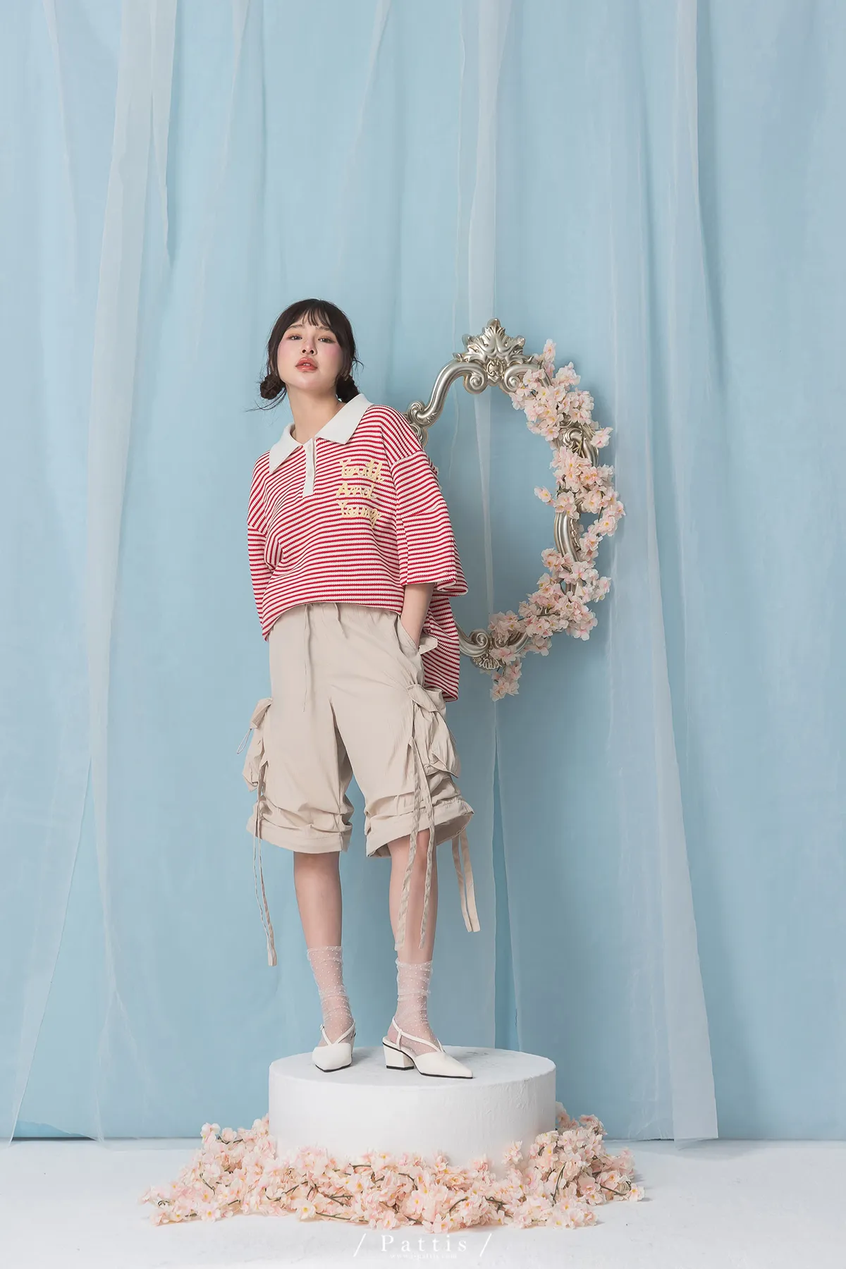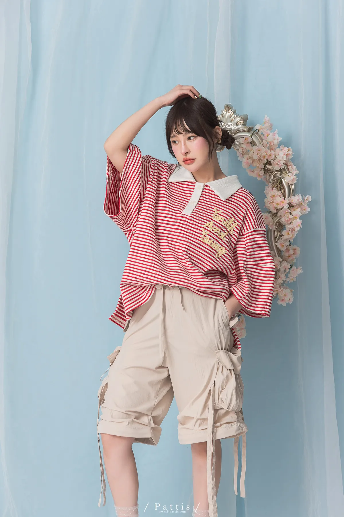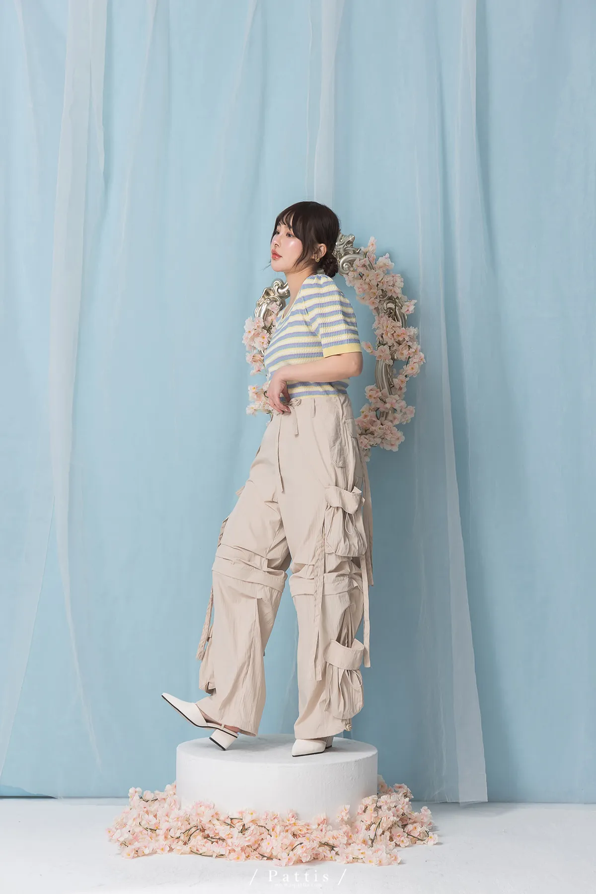 (現貨) 街頭即興曲 | 可拆式多綁帶寬褲(粉杏)