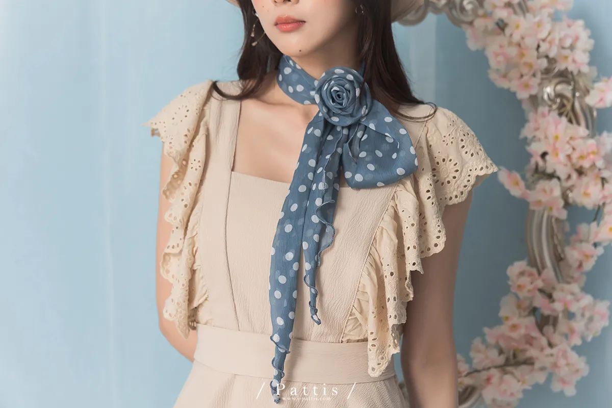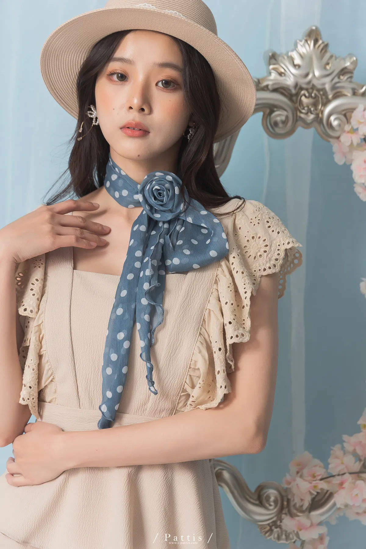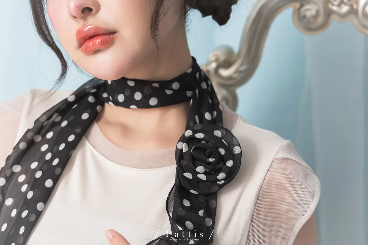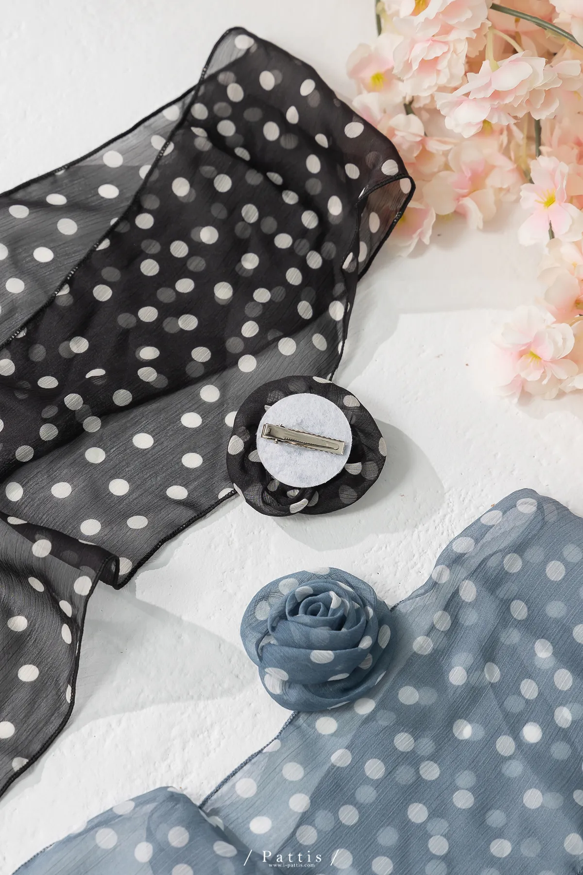 (現貨) 玫瑰花別針+點點絲巾(藍/黑)