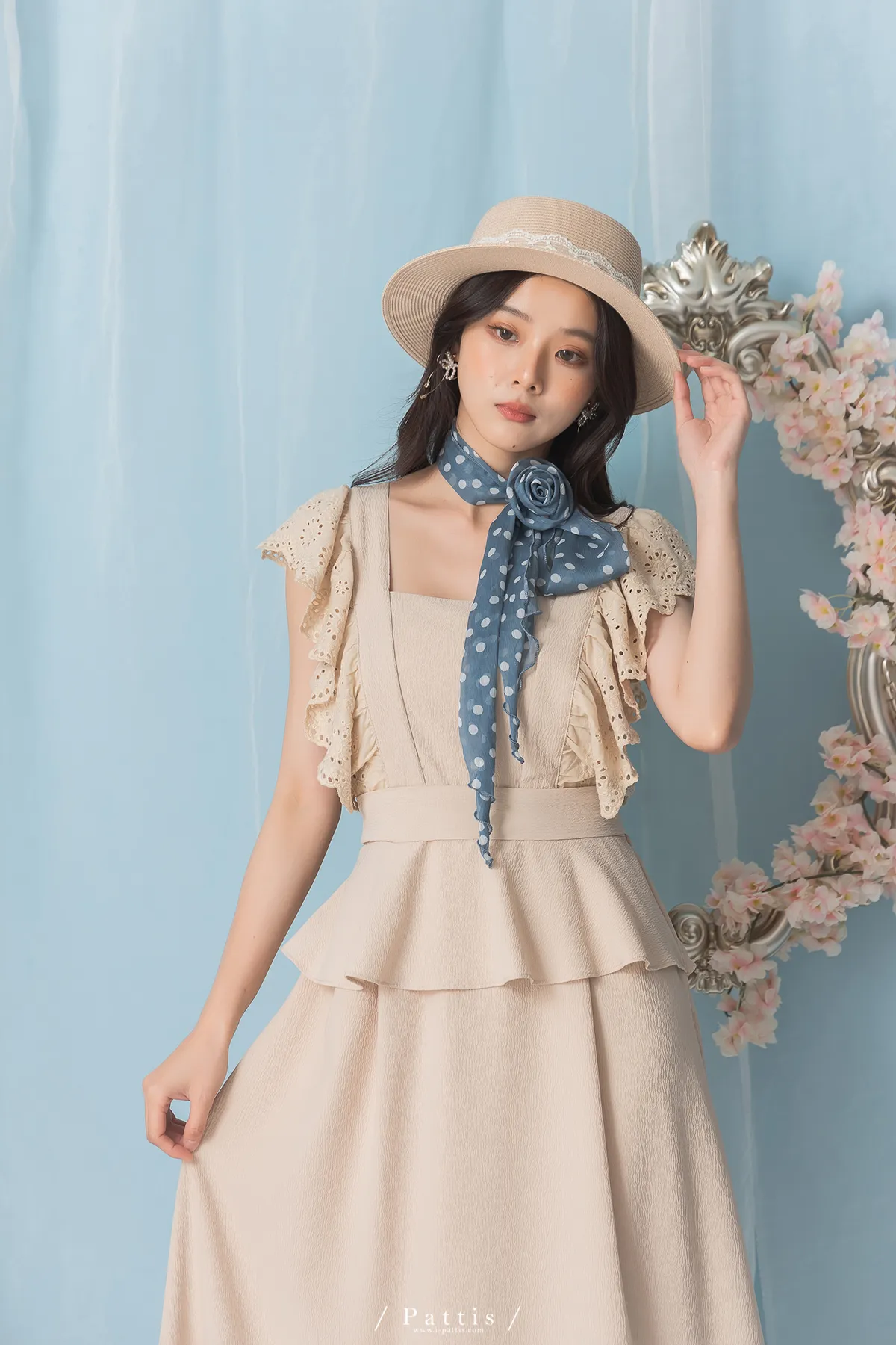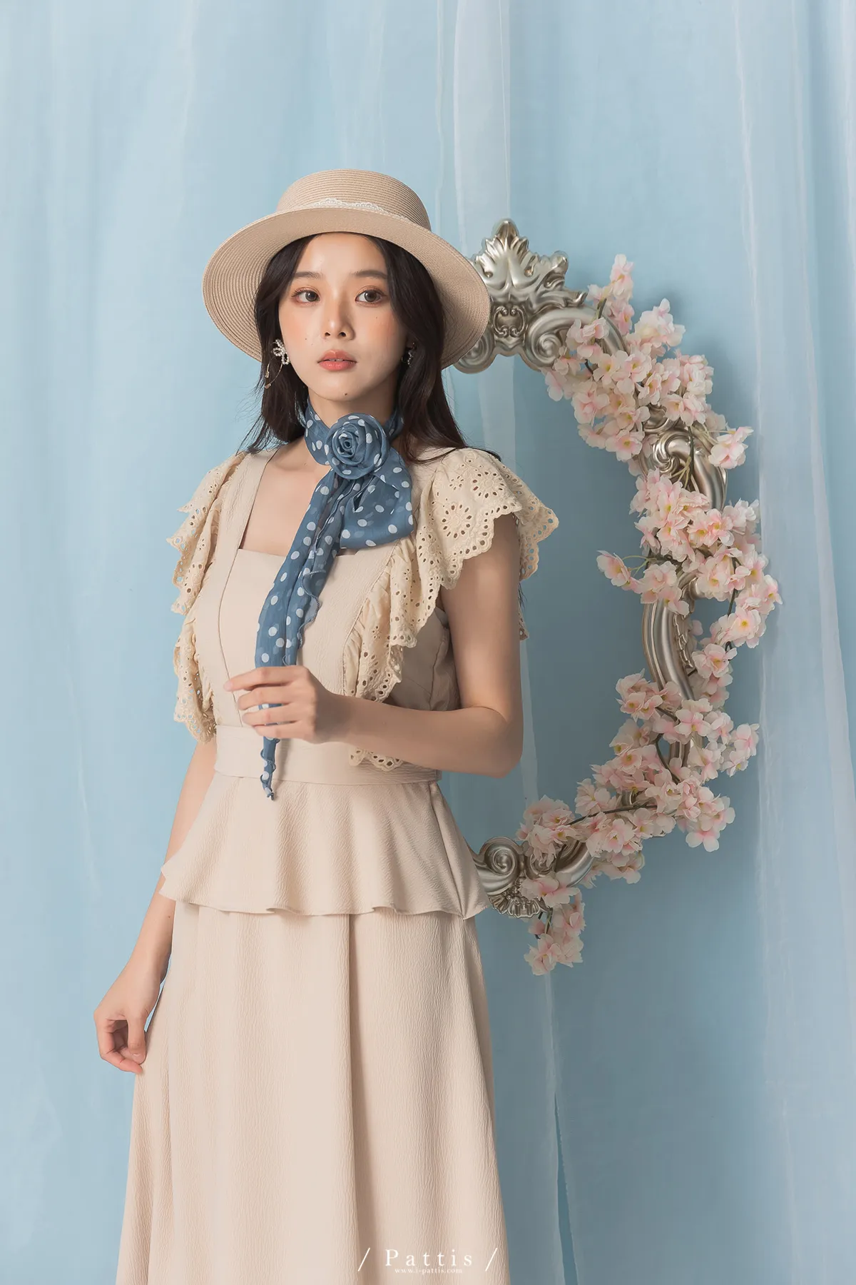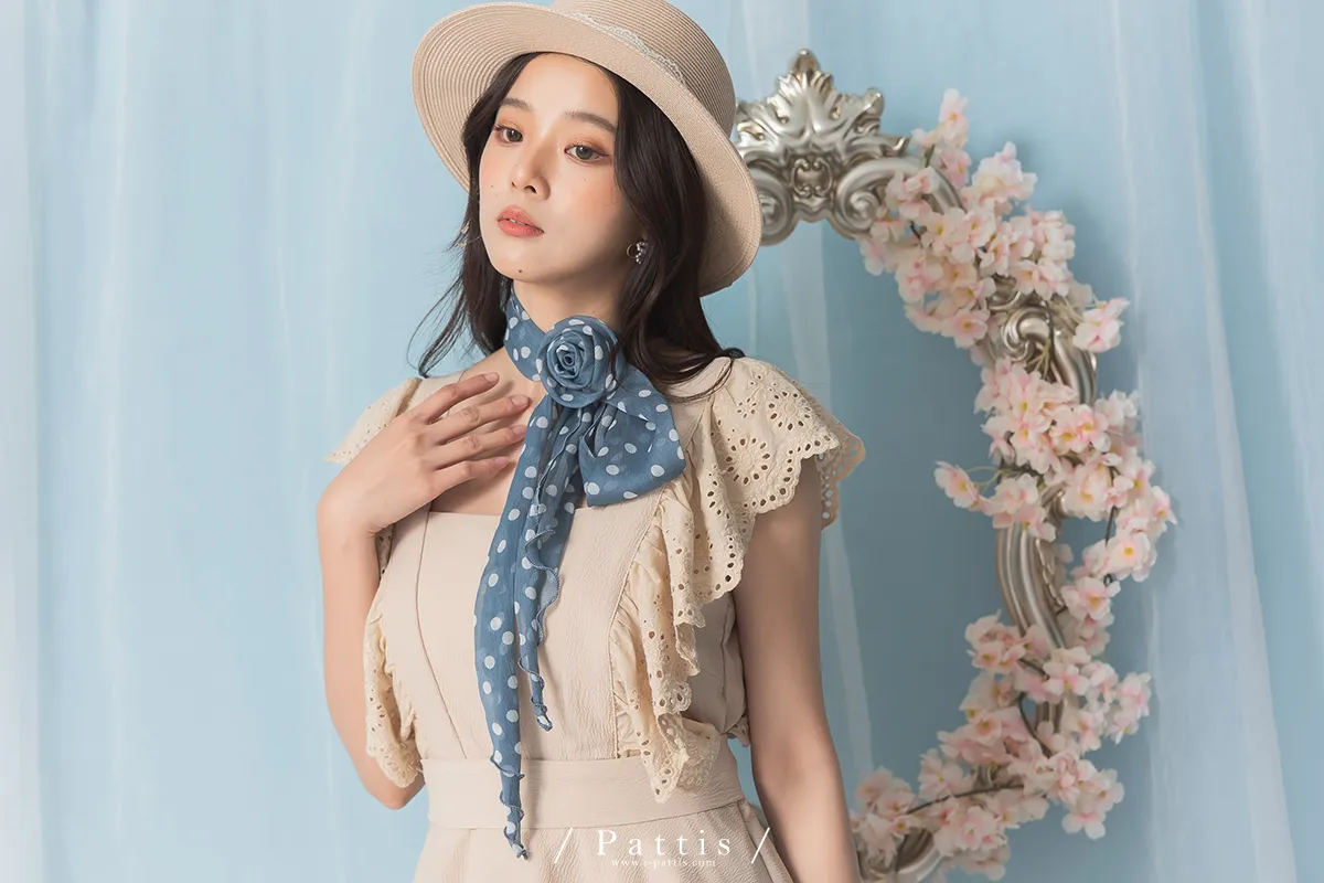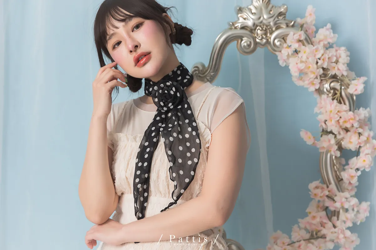 (現貨) 玫瑰花別針+點點絲巾(藍/黑)