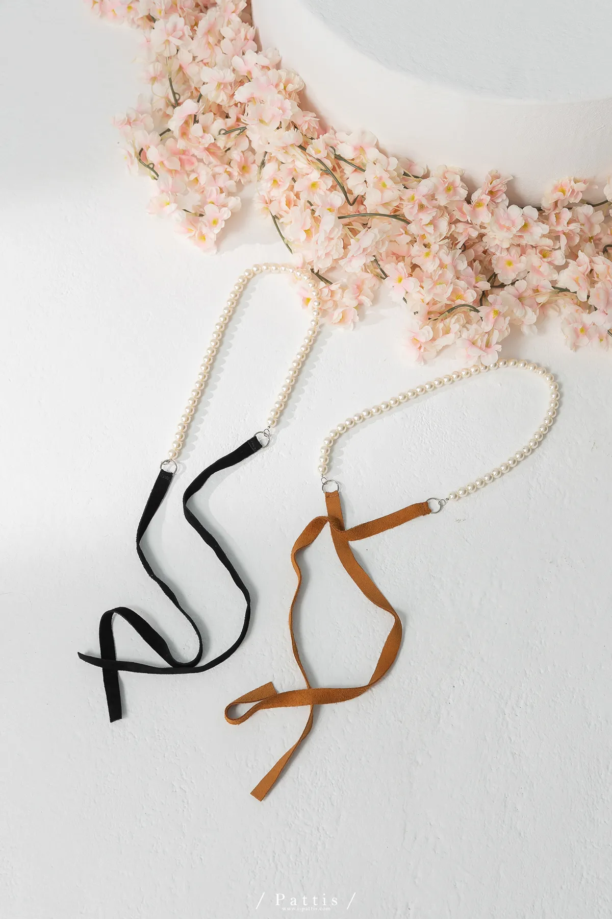 (開放追加)牛皮麂皮珍珠繩(咖/黑)