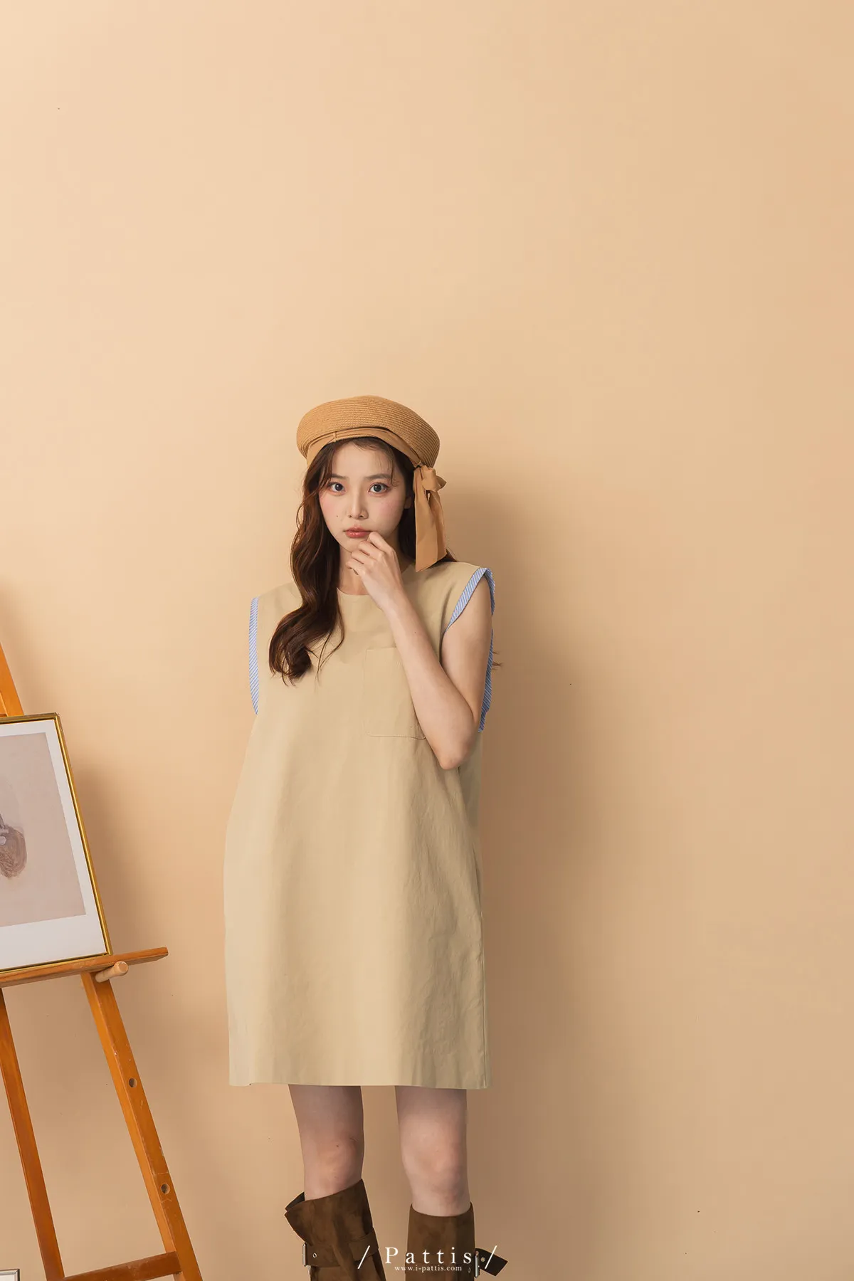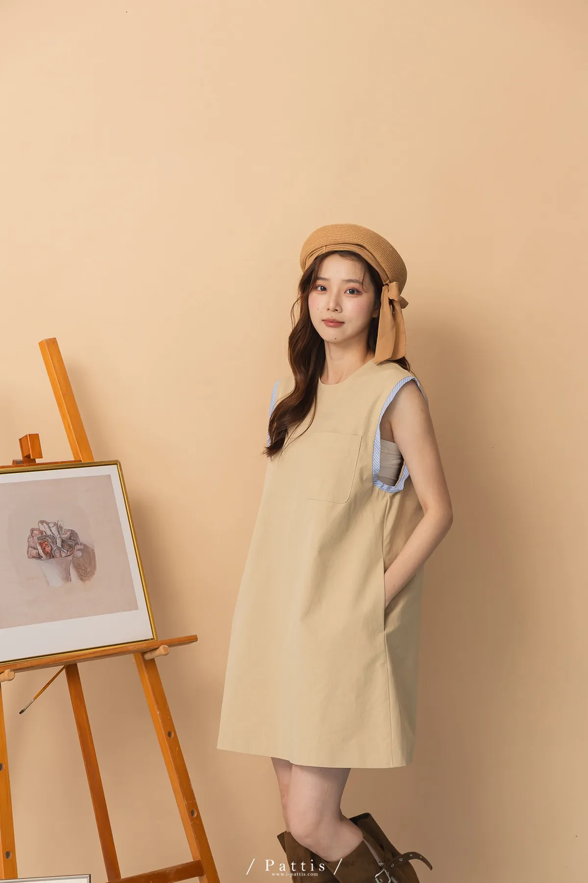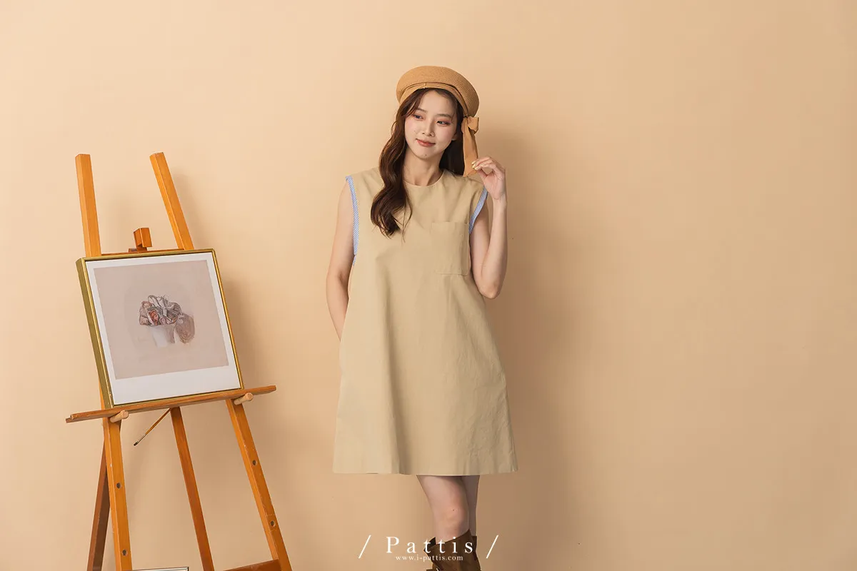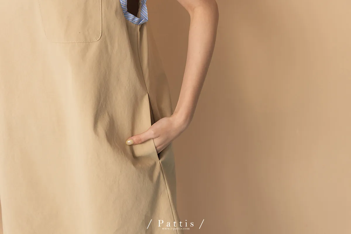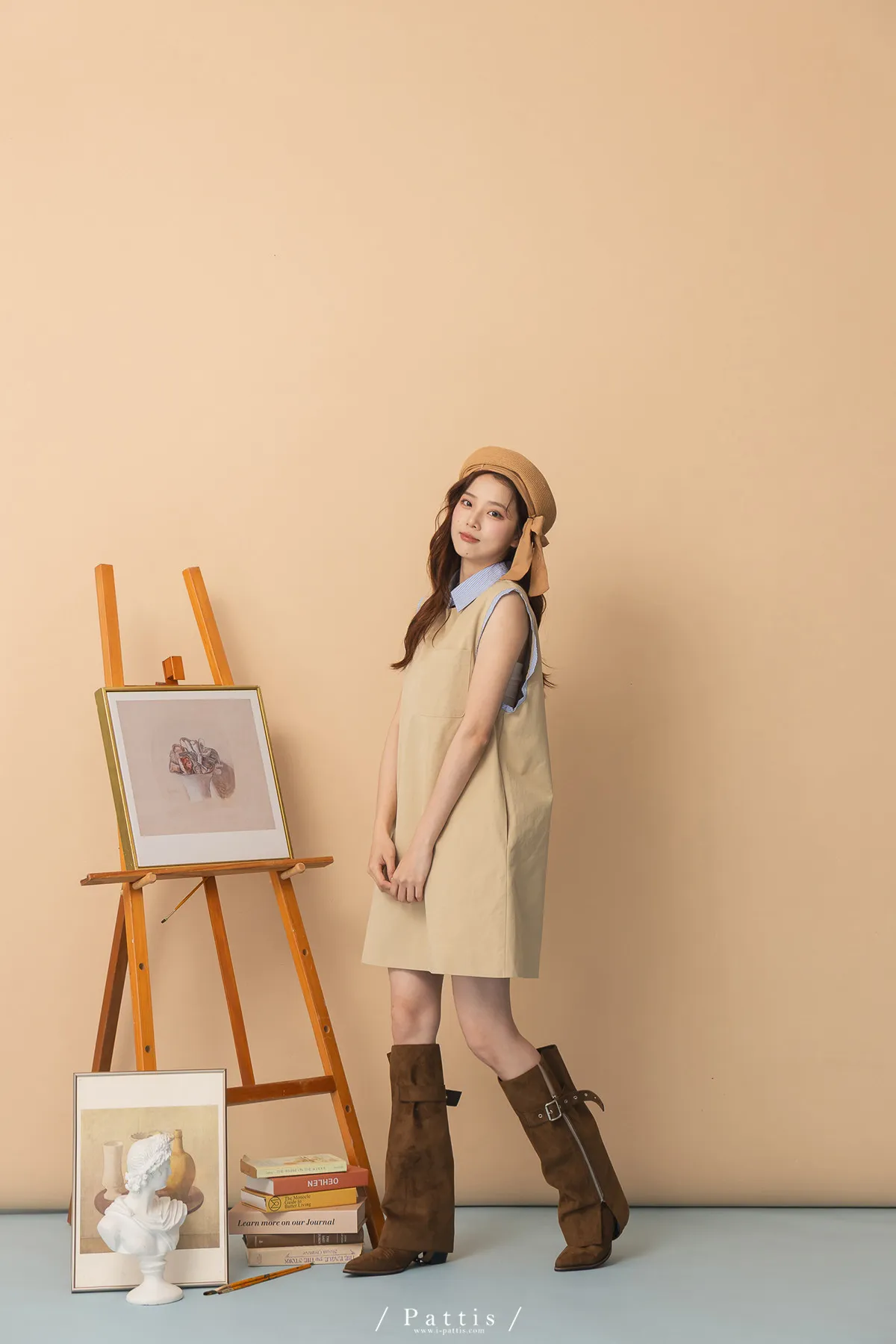 世故少女的邏輯病 | Miu感襯衫領拼接雙色短洋裝(卡其杏)