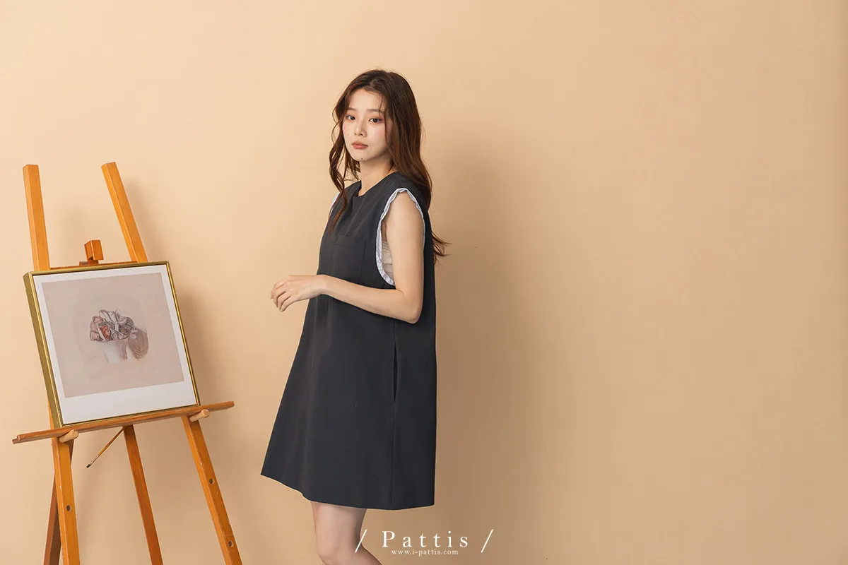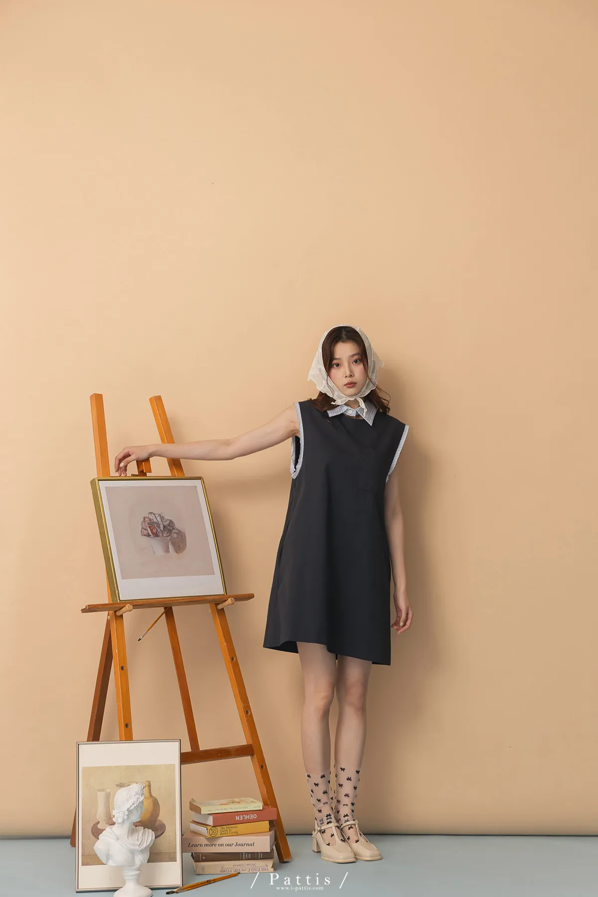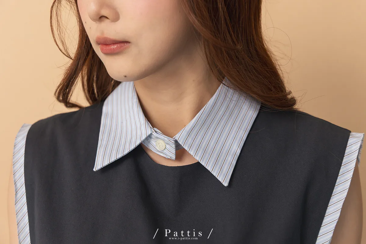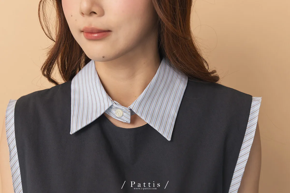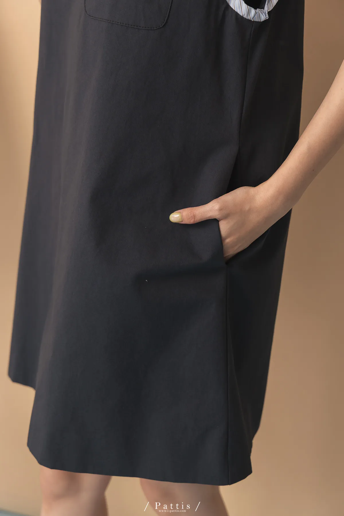 世故少女的邏輯病 | Miu感襯衫領拼接雙色短洋裝(深藍黑)